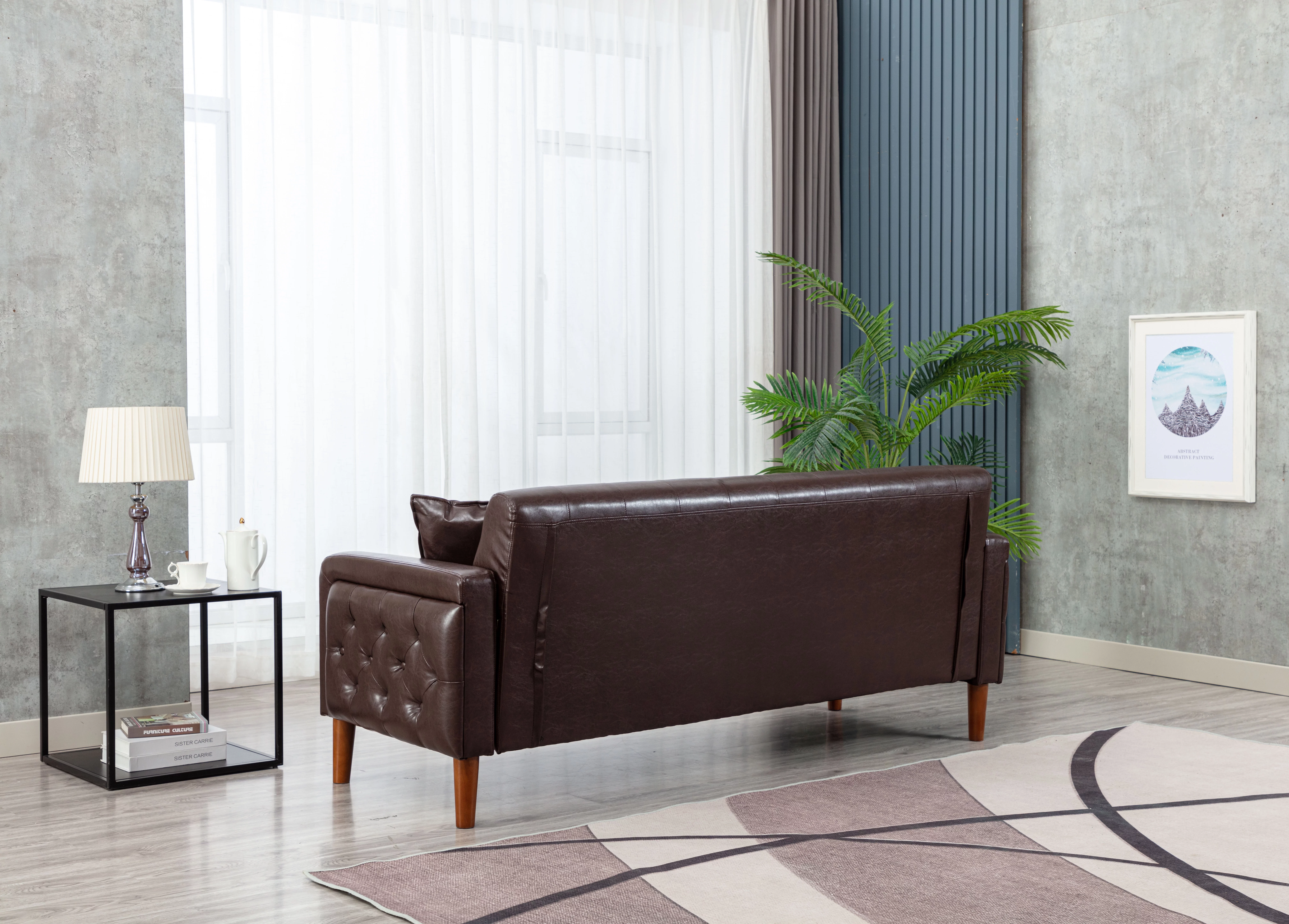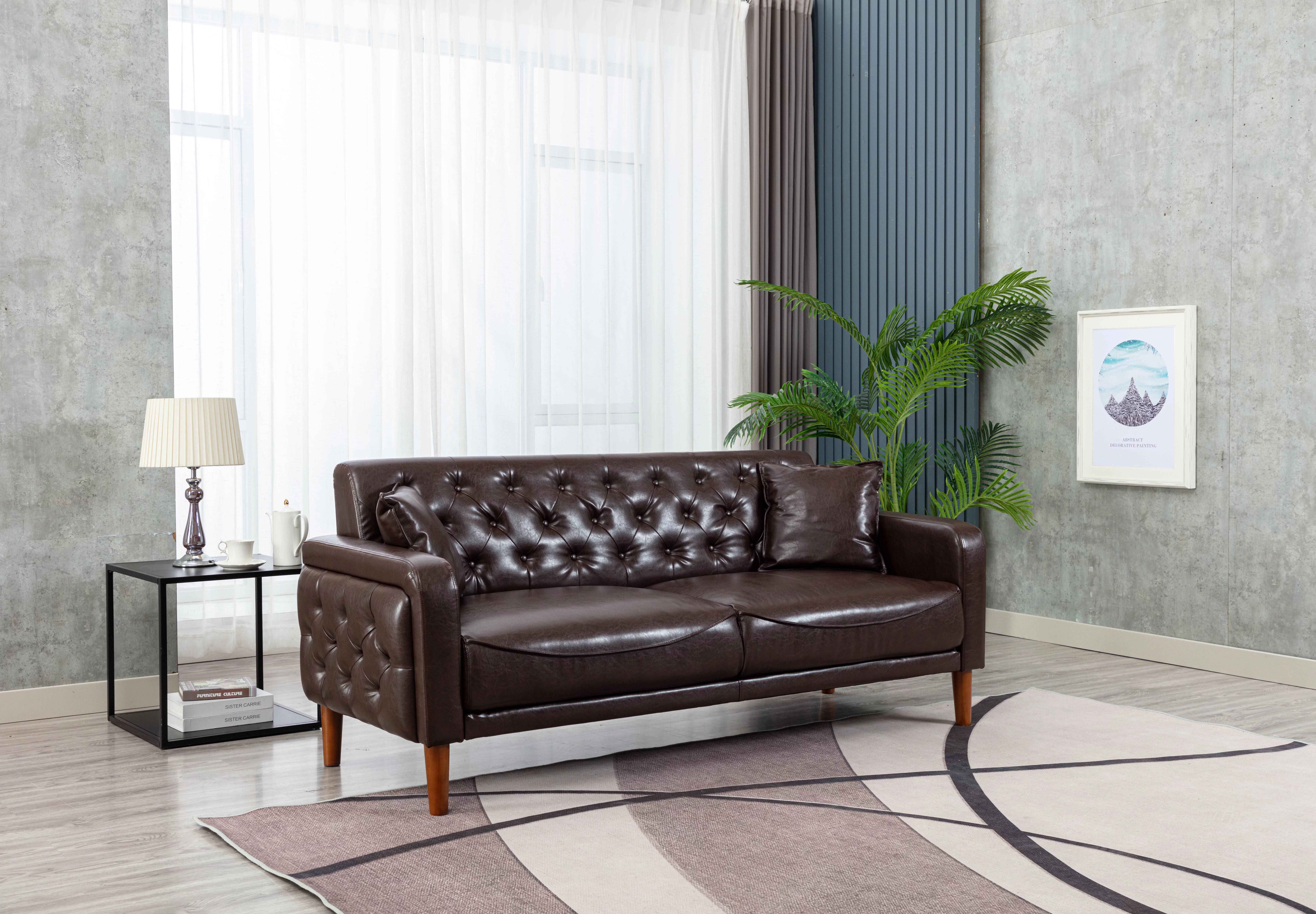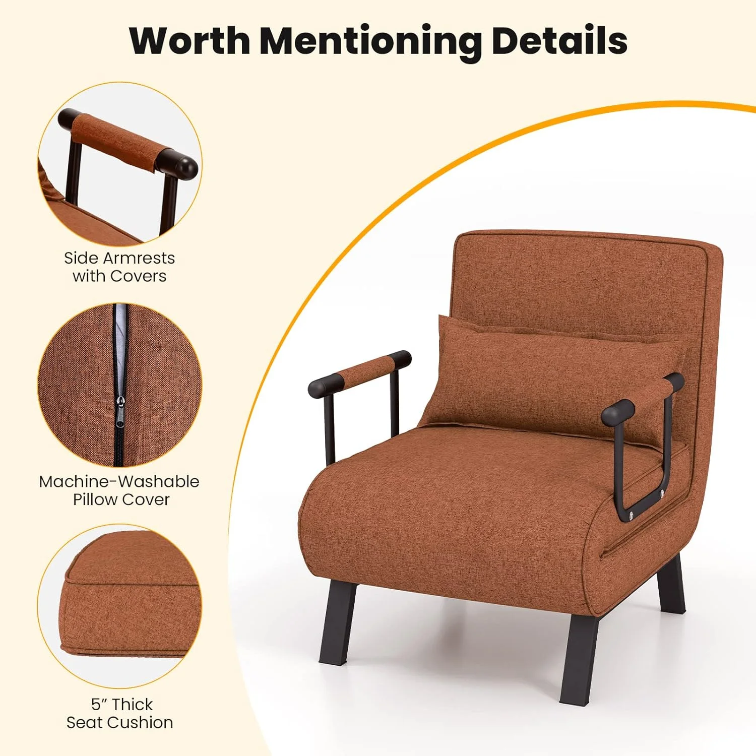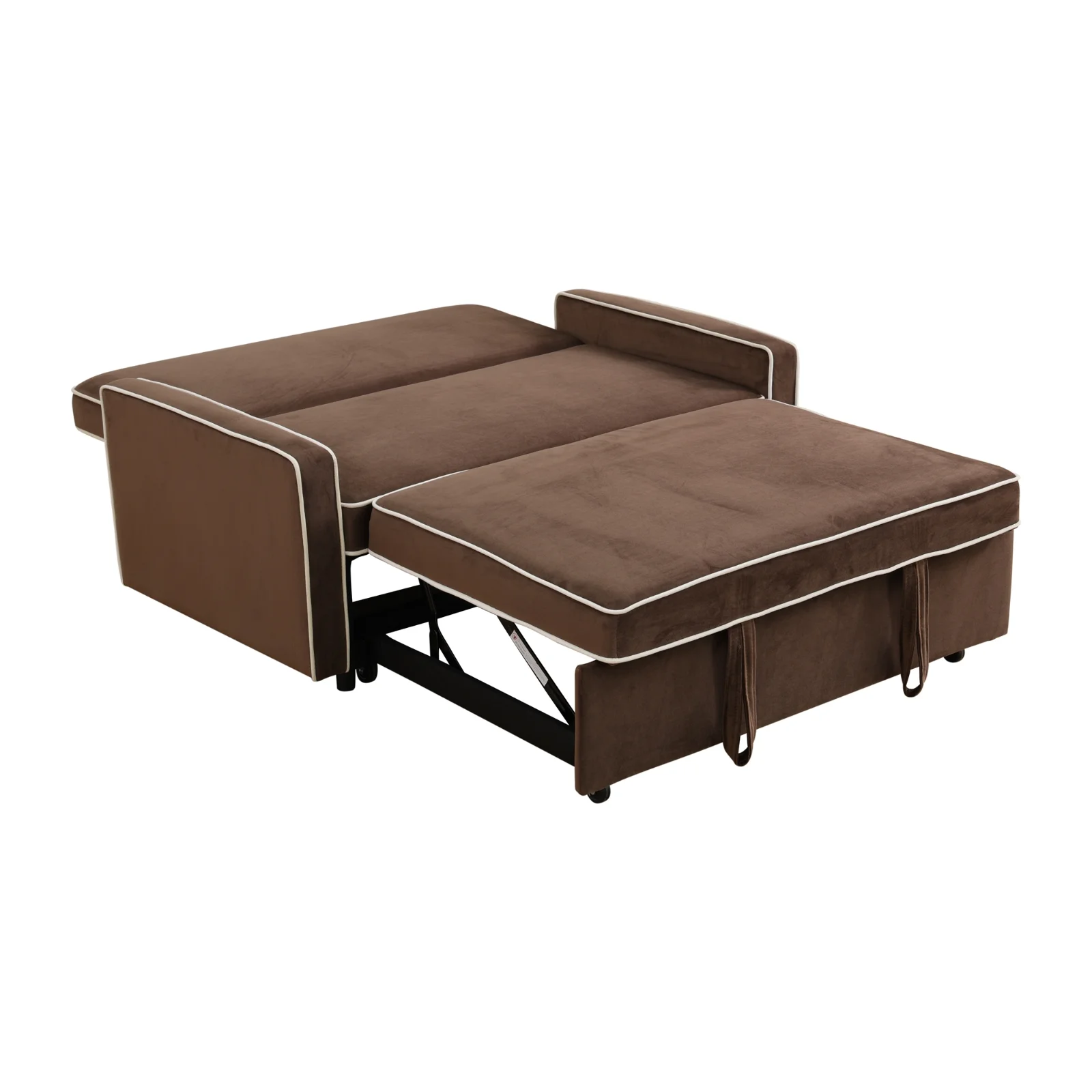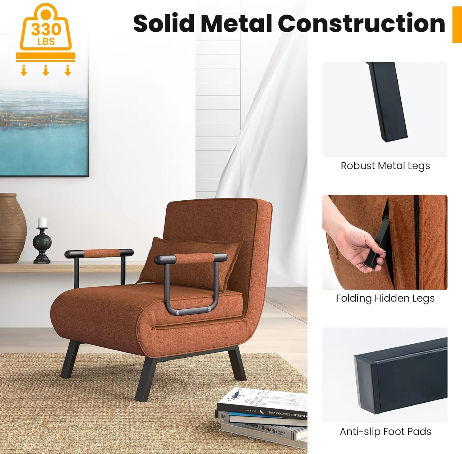 Convertible Bed 4 in 1 Solid Wood Twin/Full Size Bed, Chaise Lounge, Bench in Cherry Brown with Mattress