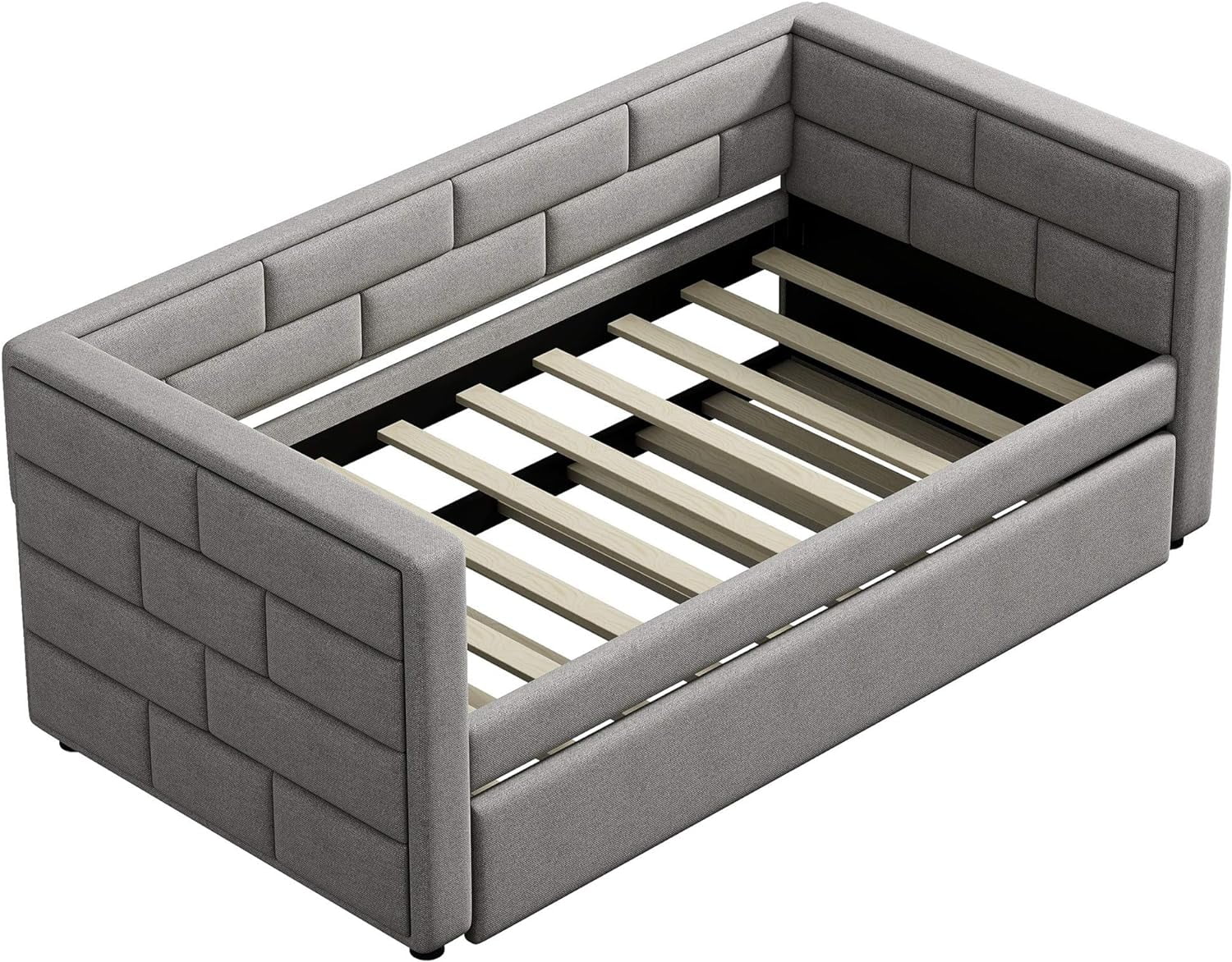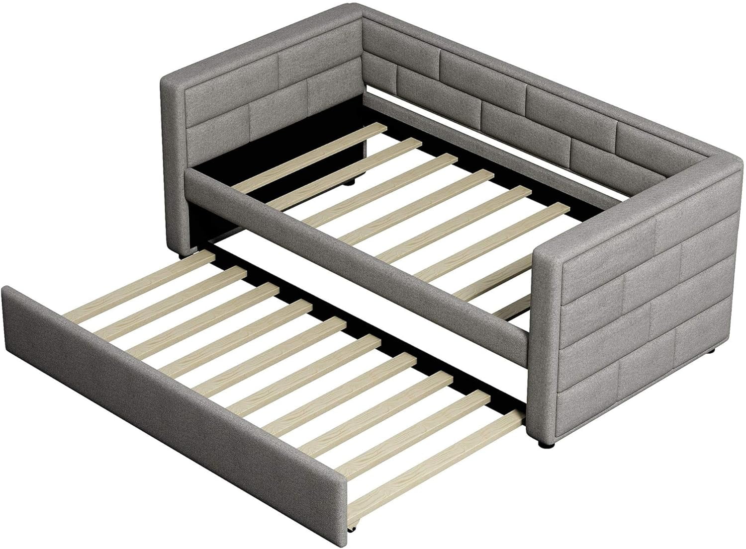 Size Upholstered Daybed With Size Trundle, Upholstered Daybed With Padded Back, Gray
