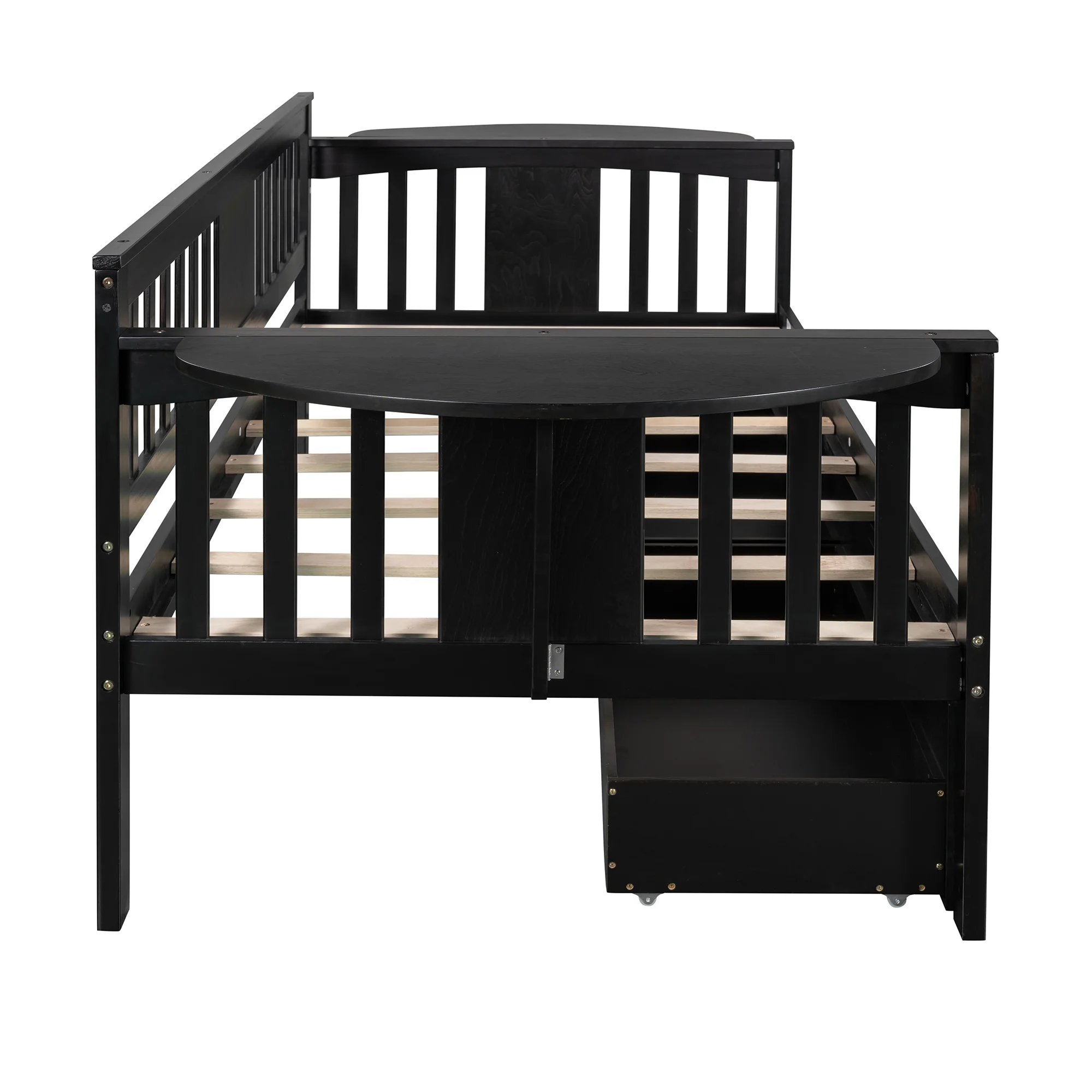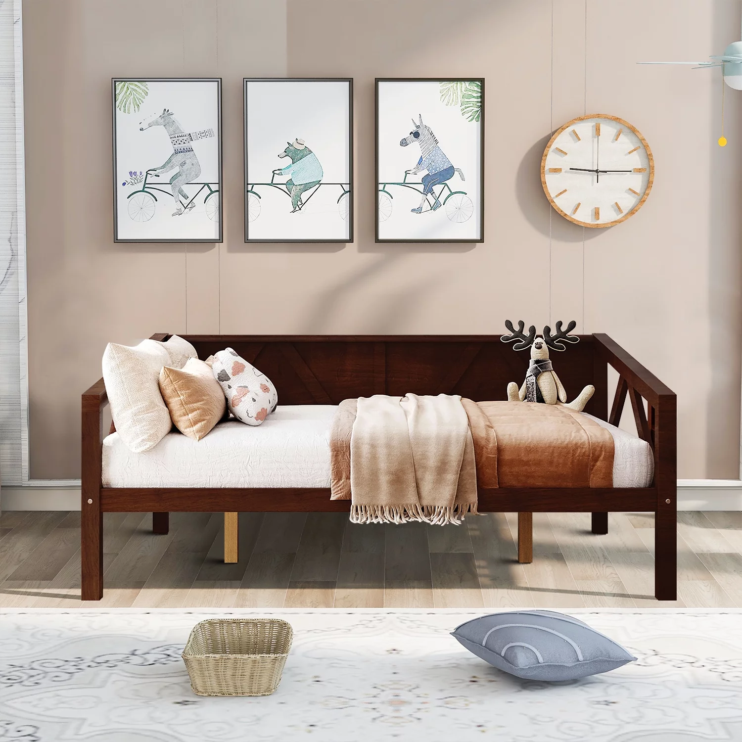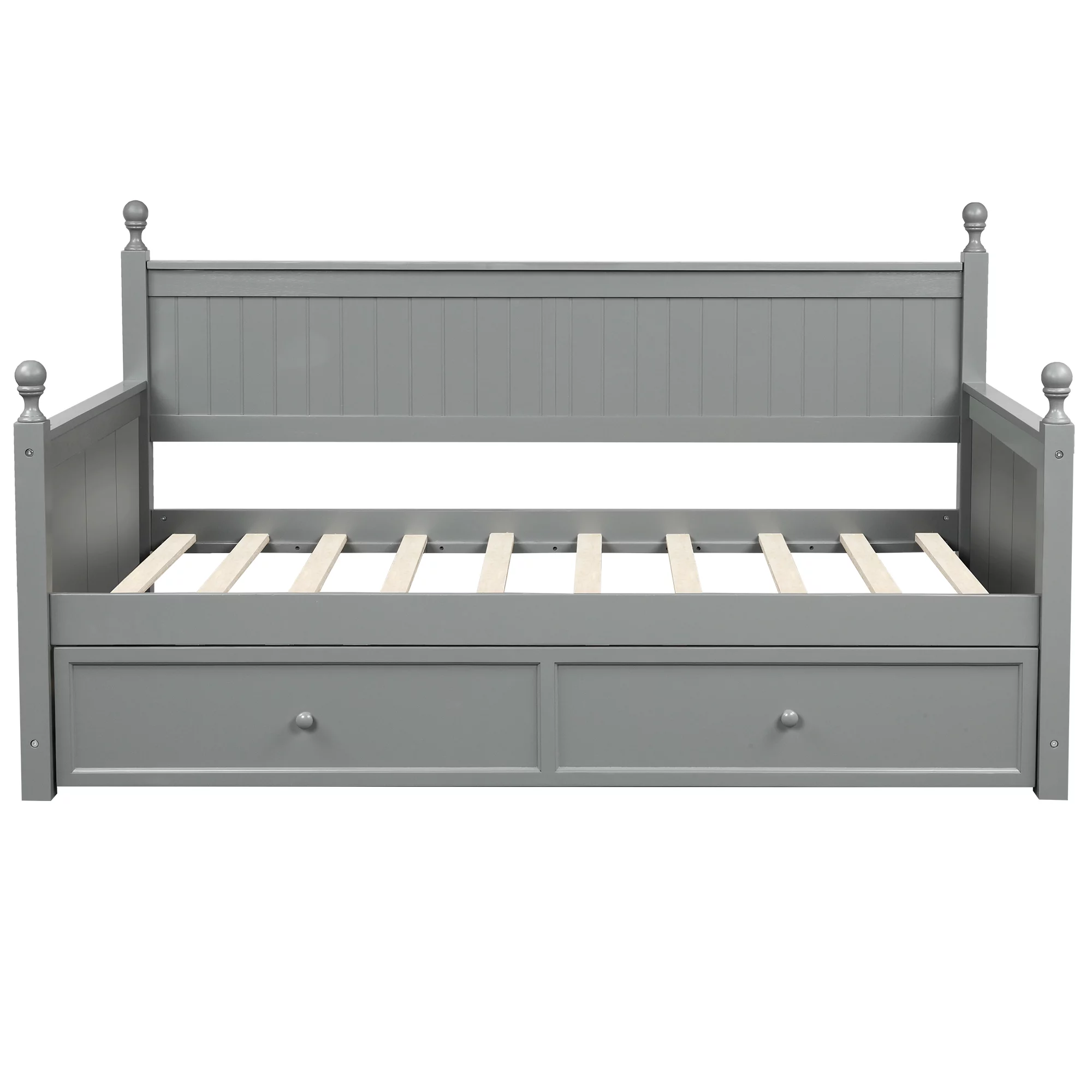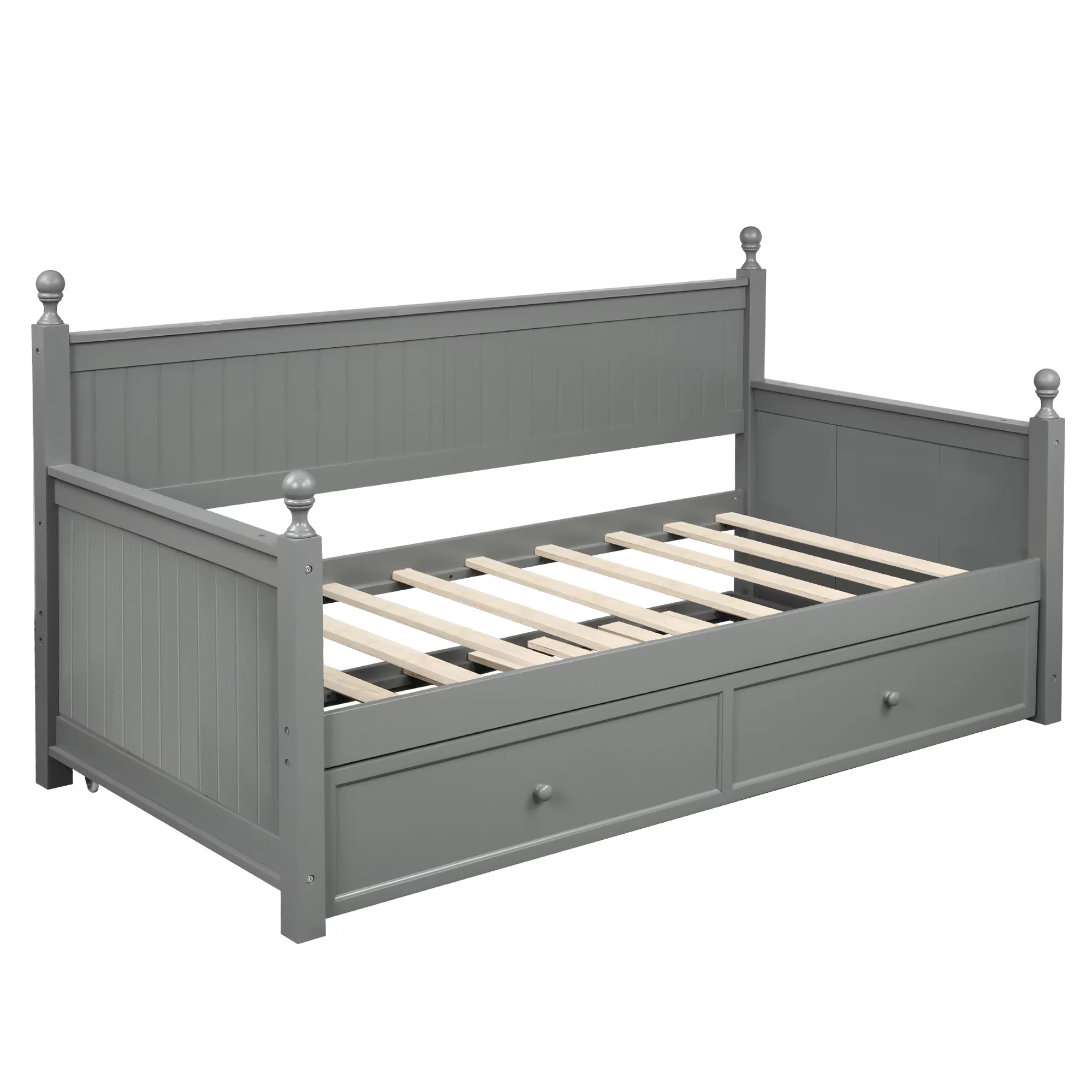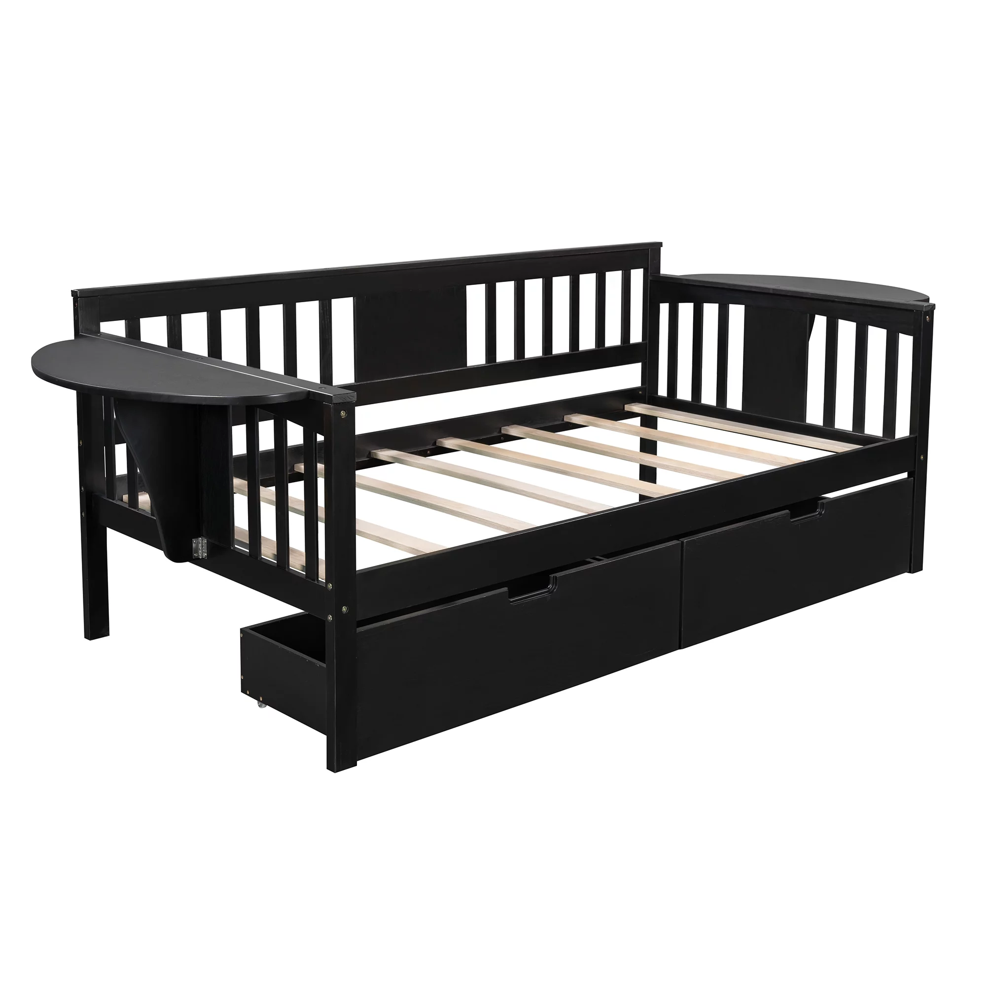 Espresso Twin Wooden Daybed with 2 drawers, Sofa Bed for Bedroom Living Room,No Box Spring Needed
