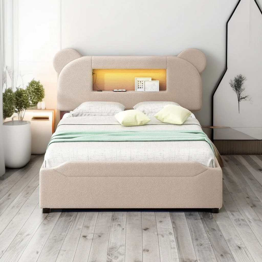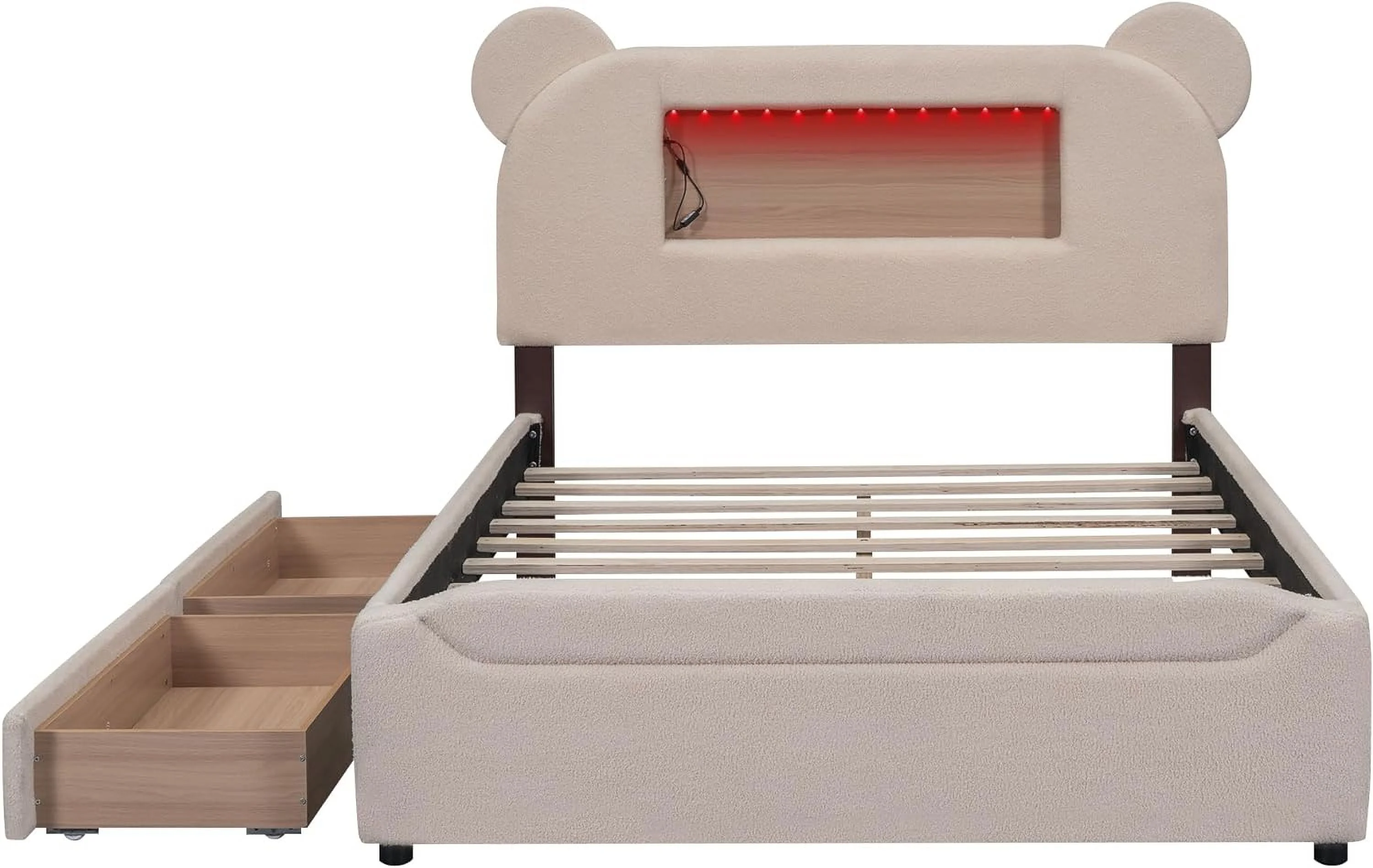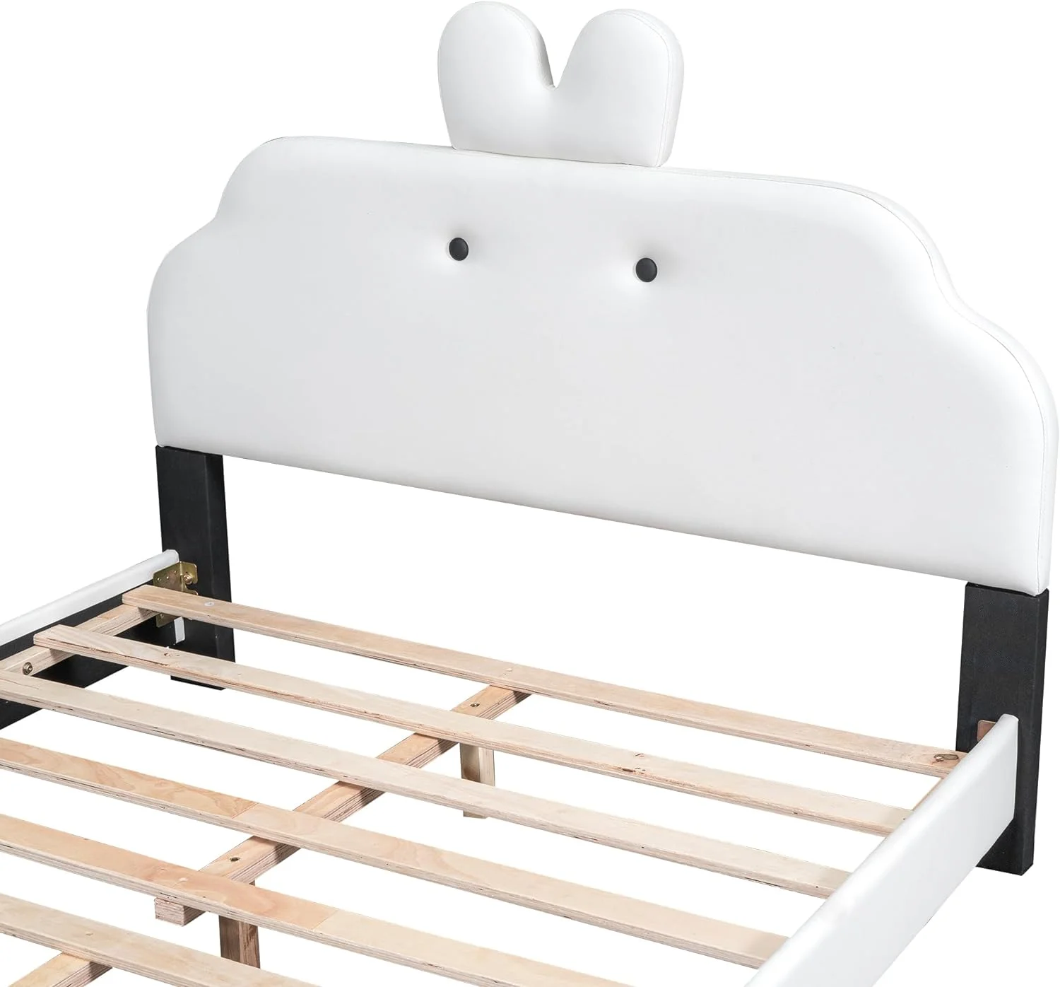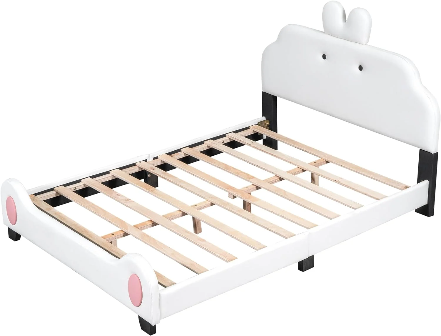 Twin size Upholstered Rabbit-Shape Princess Bed,Cosymart Twin Size Platform Bed with Headboard and Footboard, White+Pink