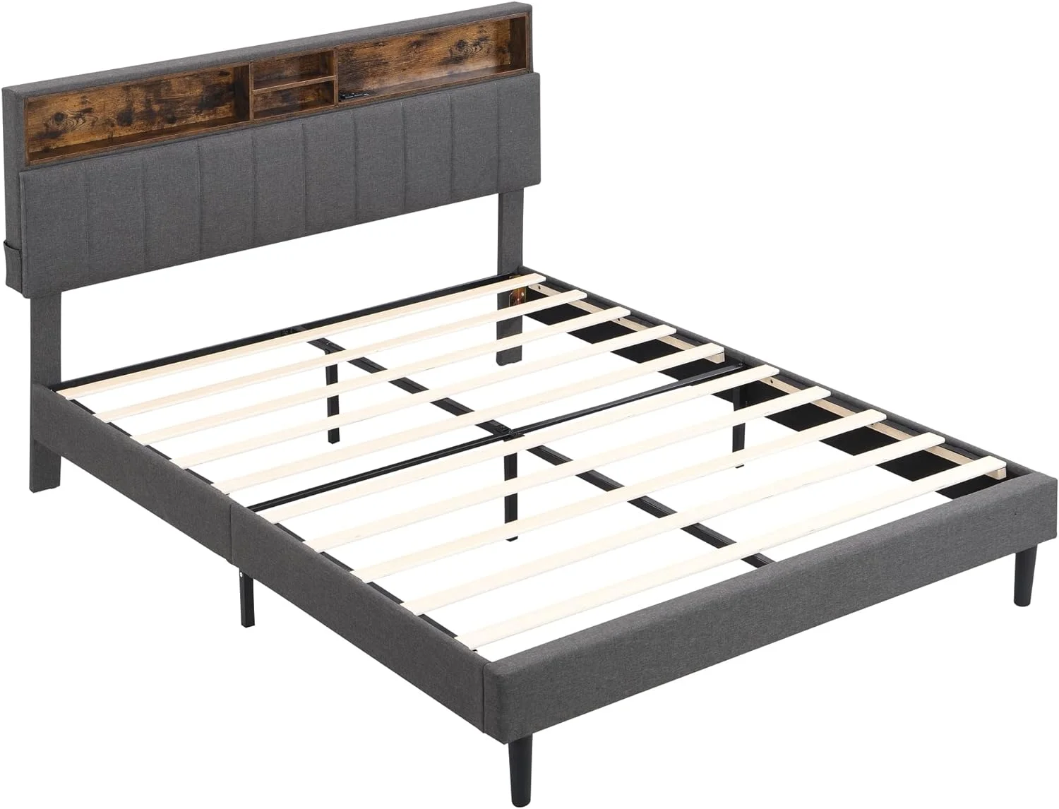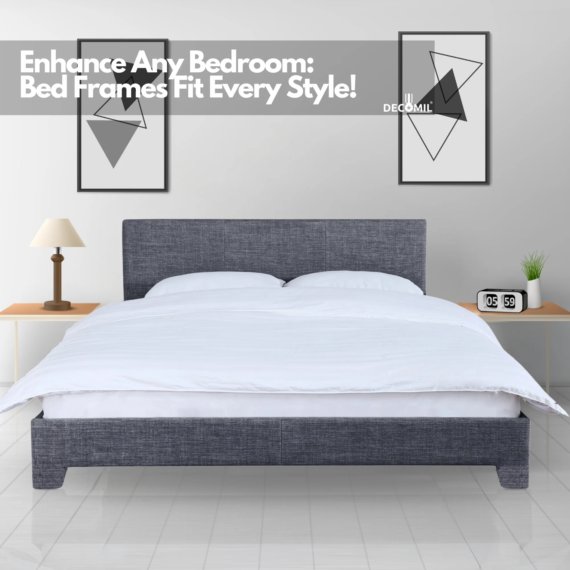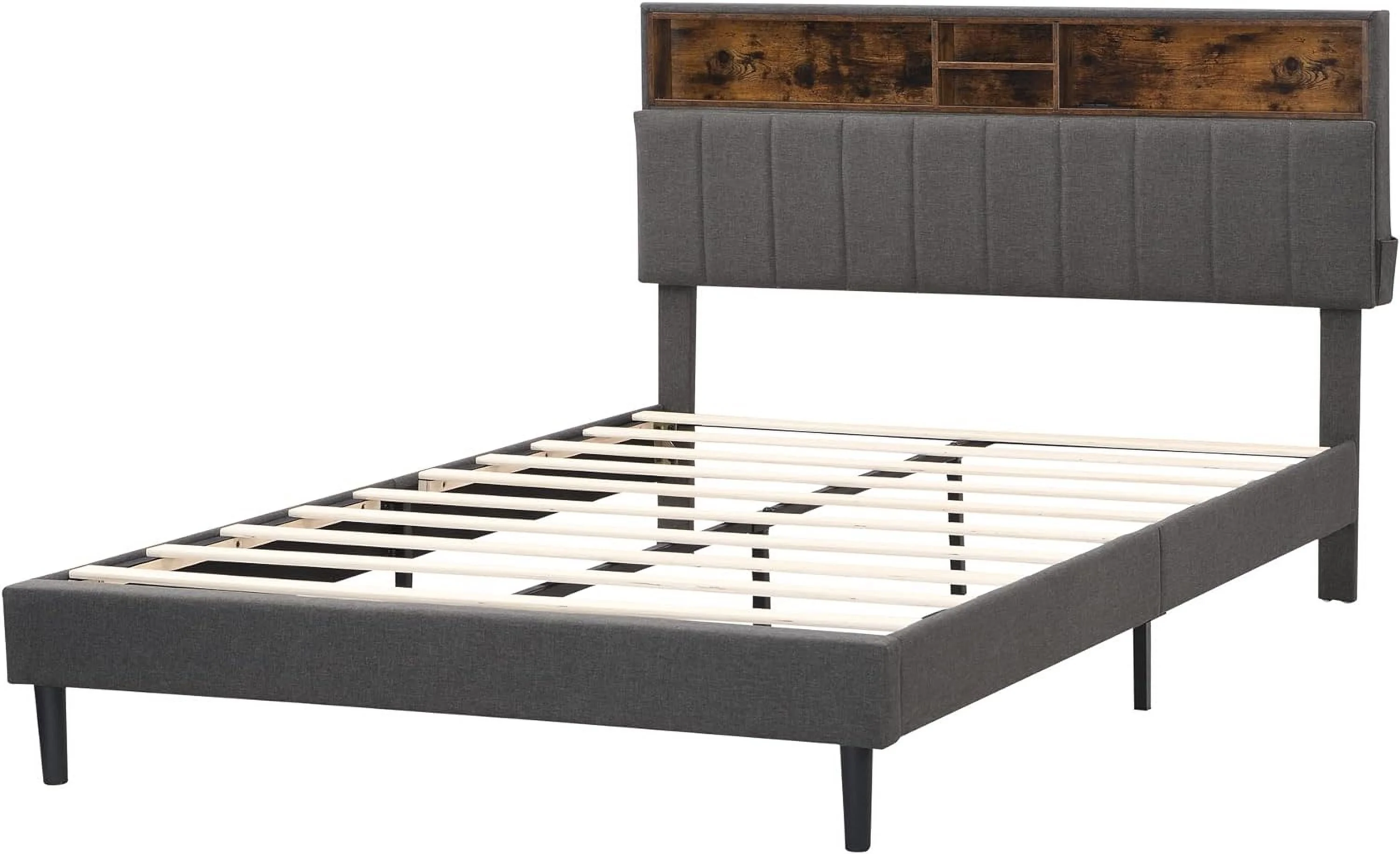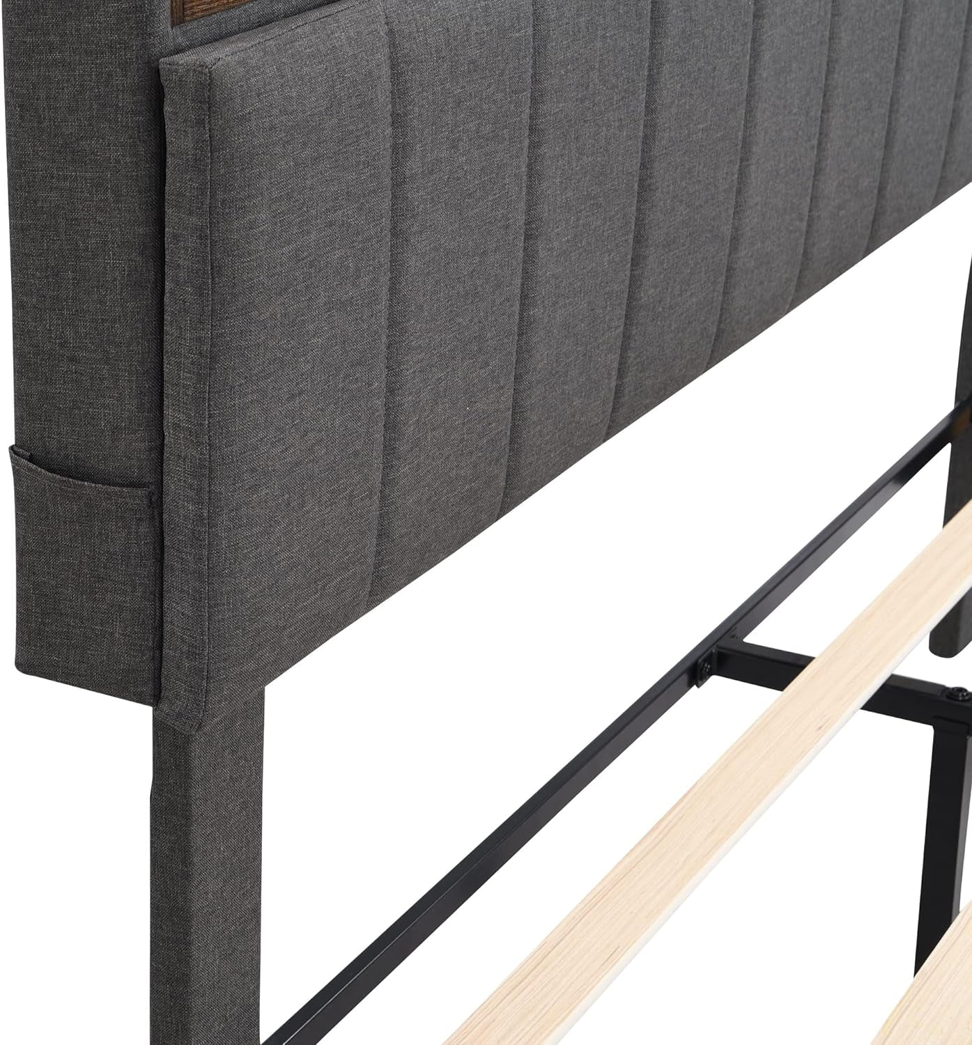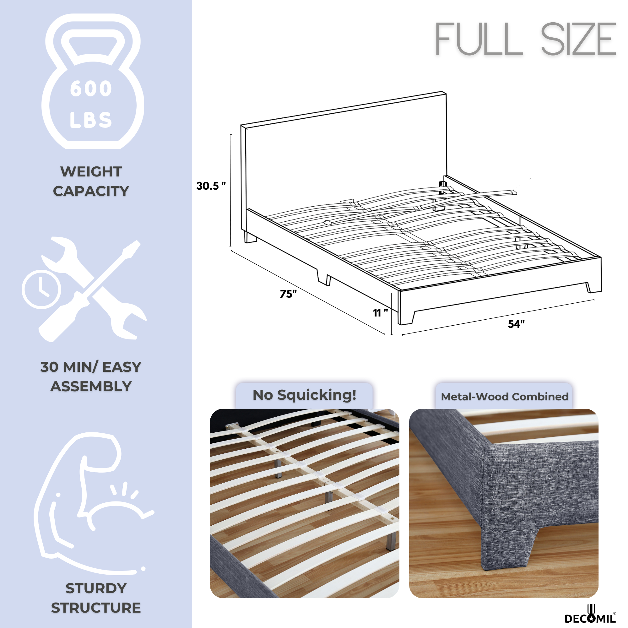Full Bed Frame with Headboard | Upholstered Platform Bed Frame , Sturdy Wooden Slats & Metal Frame