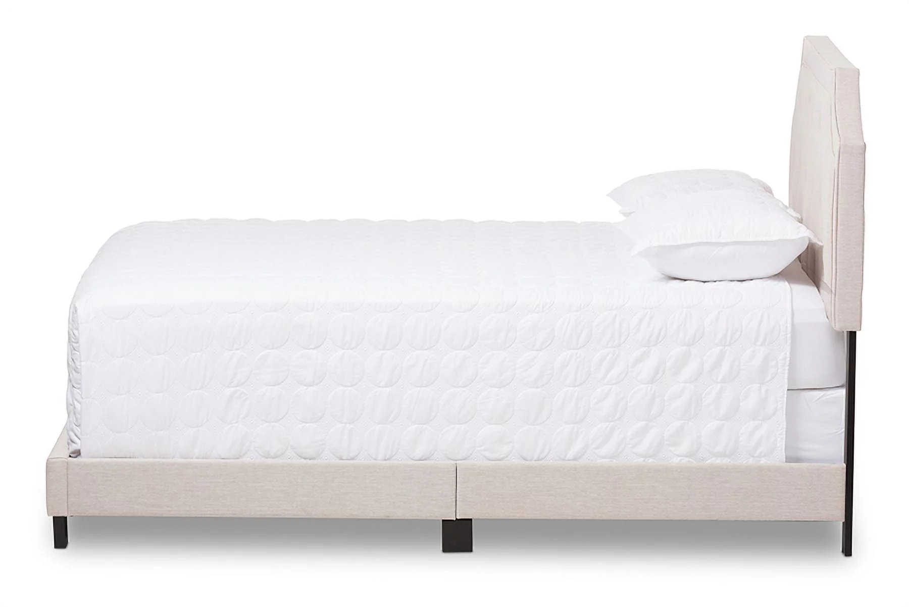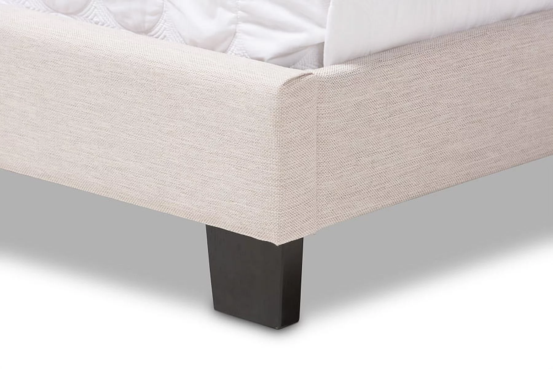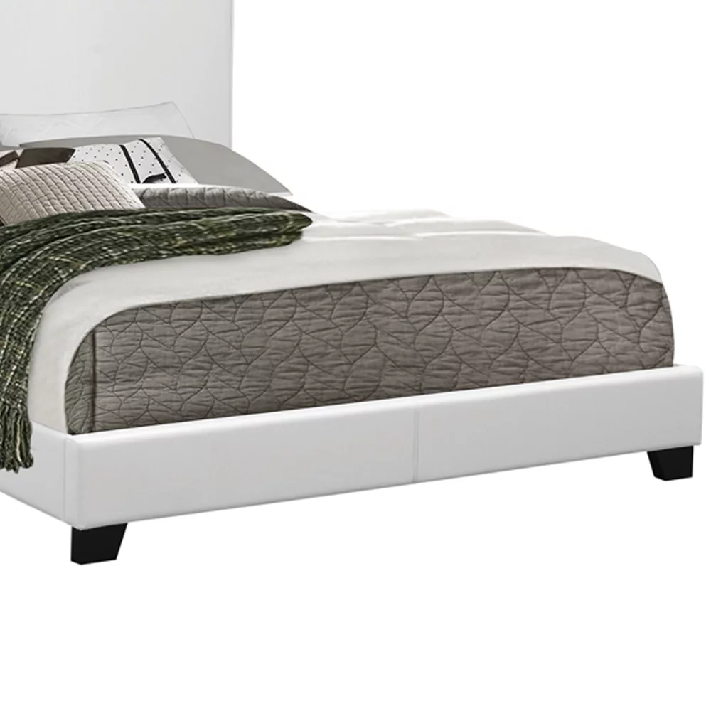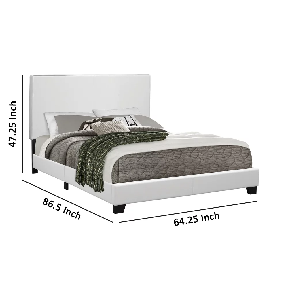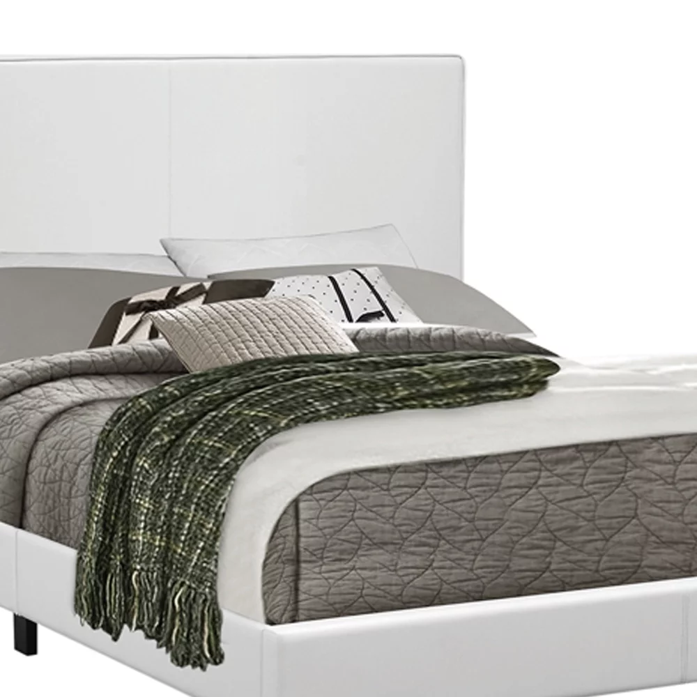 Leatherette Queen Size Wooden Bed with Low Profile Footboard White- Saltoro Sherpi