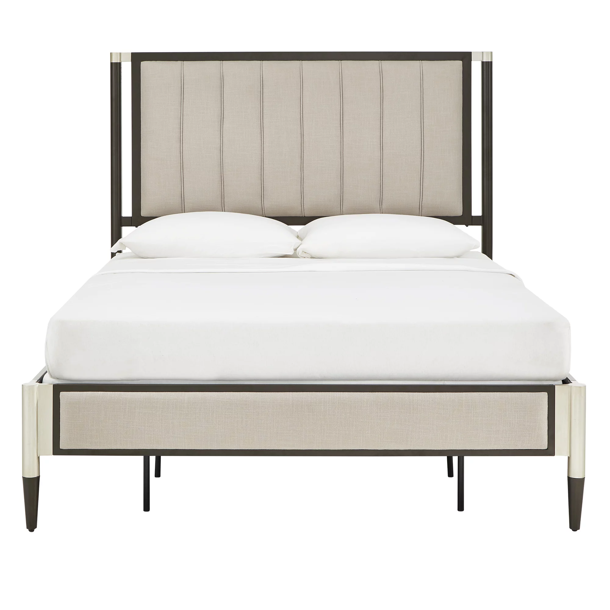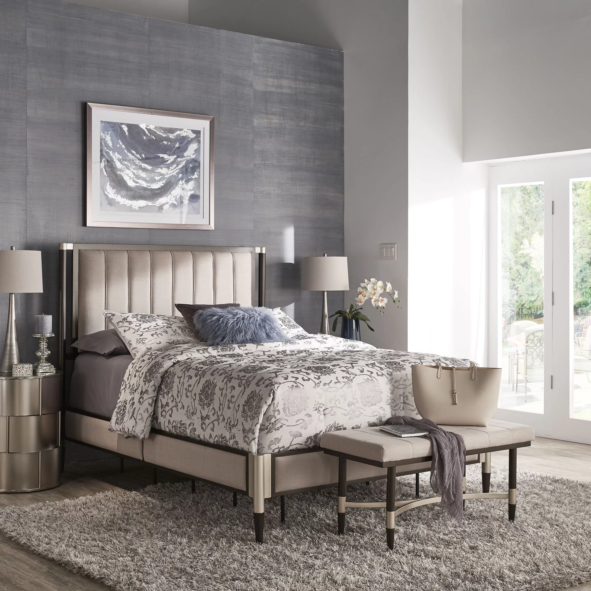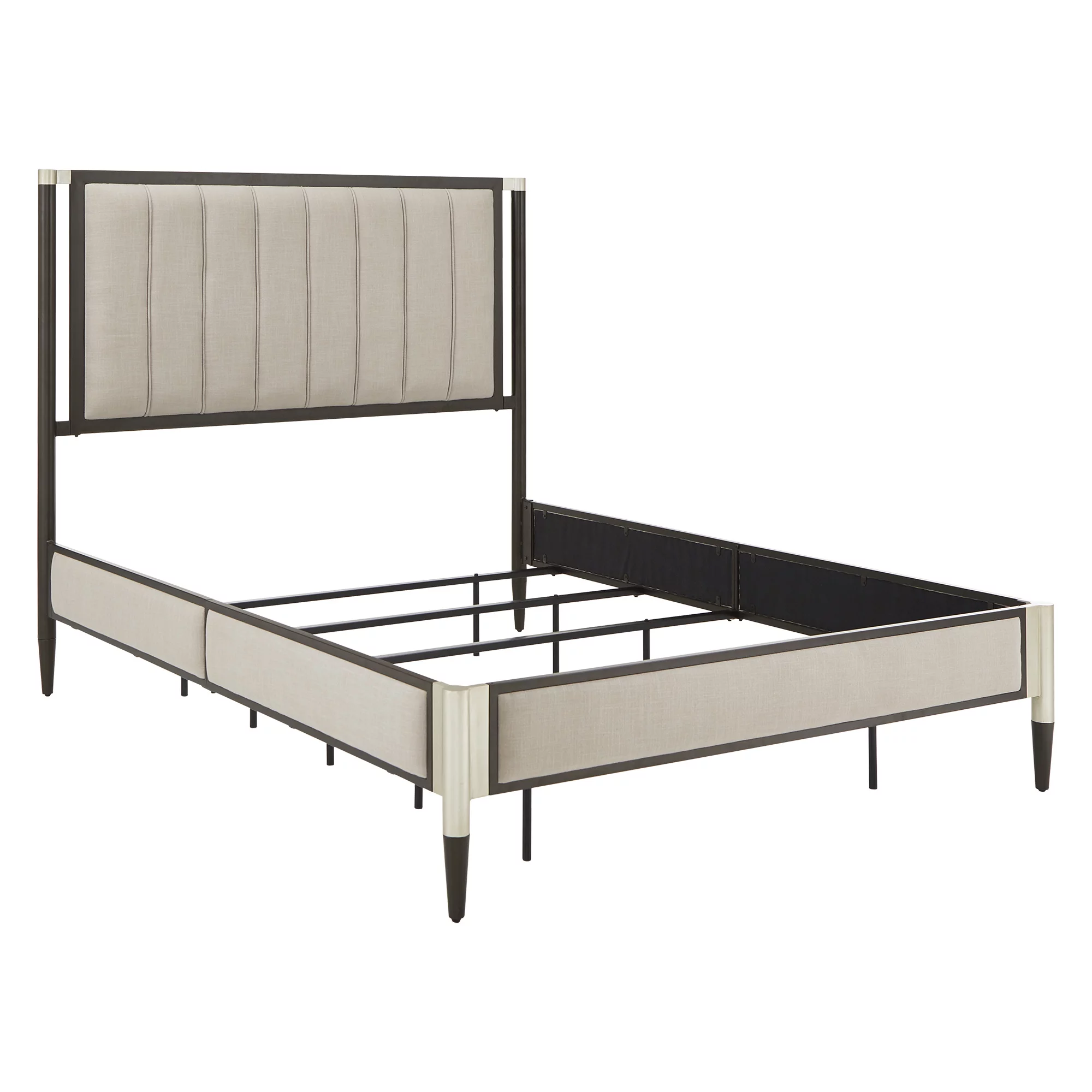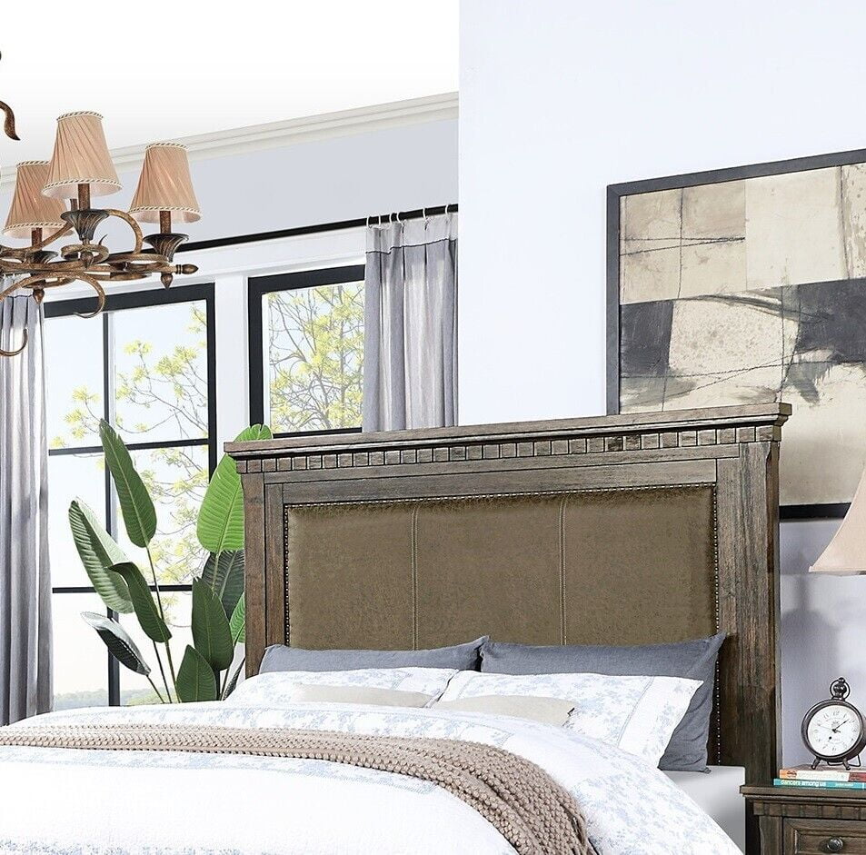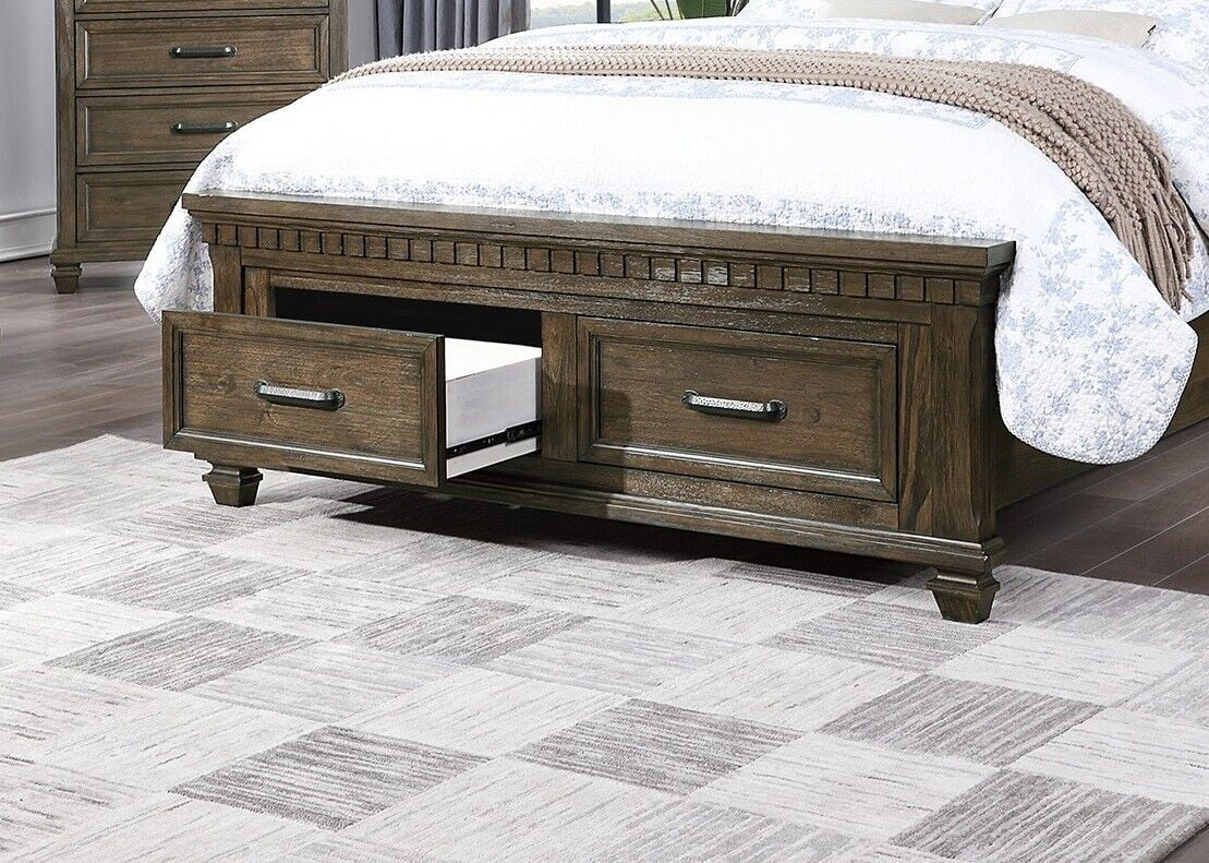 Queen Size Bed And 2x Nightstands 3pc Set Bedroom Furniture Storage Footboard Fabric Upholstery High HB Antique Finish Wooden