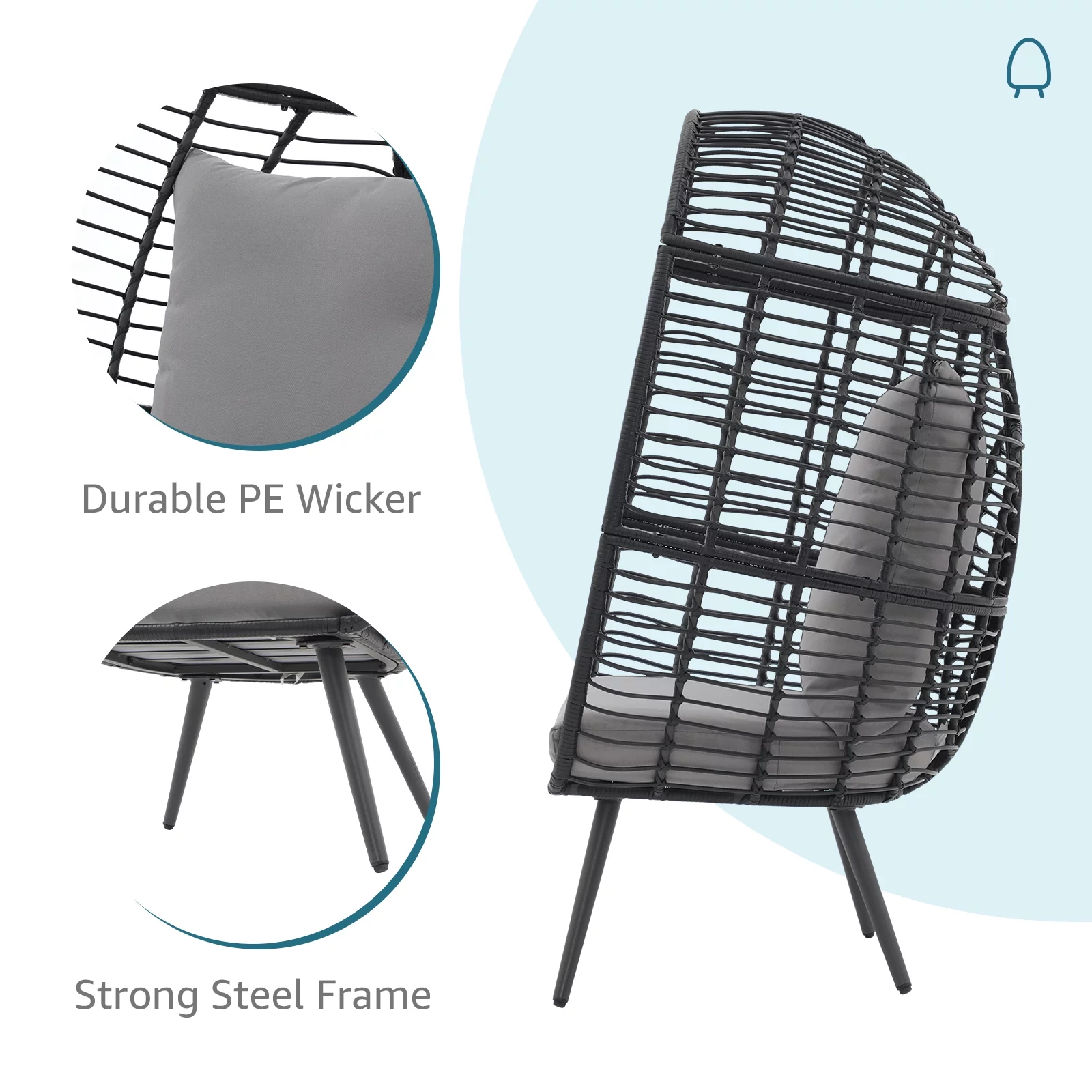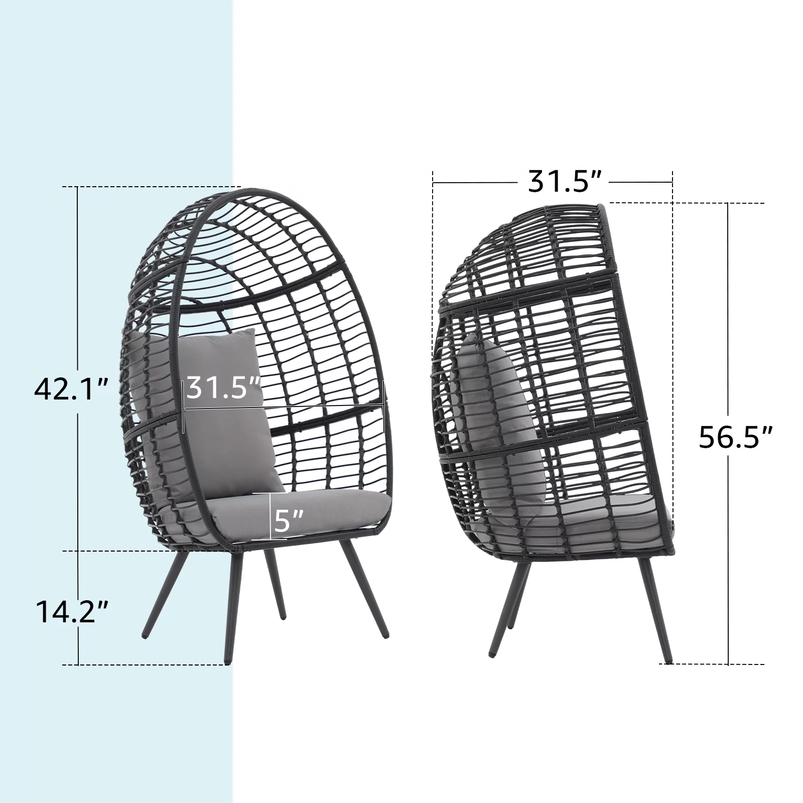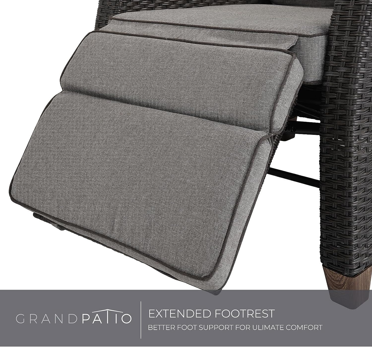 Grand Patio Indoor & Outdoor Recliner Chair PE Wicker Patio 150° Lay Flat Recliner, 2PCS, Gray