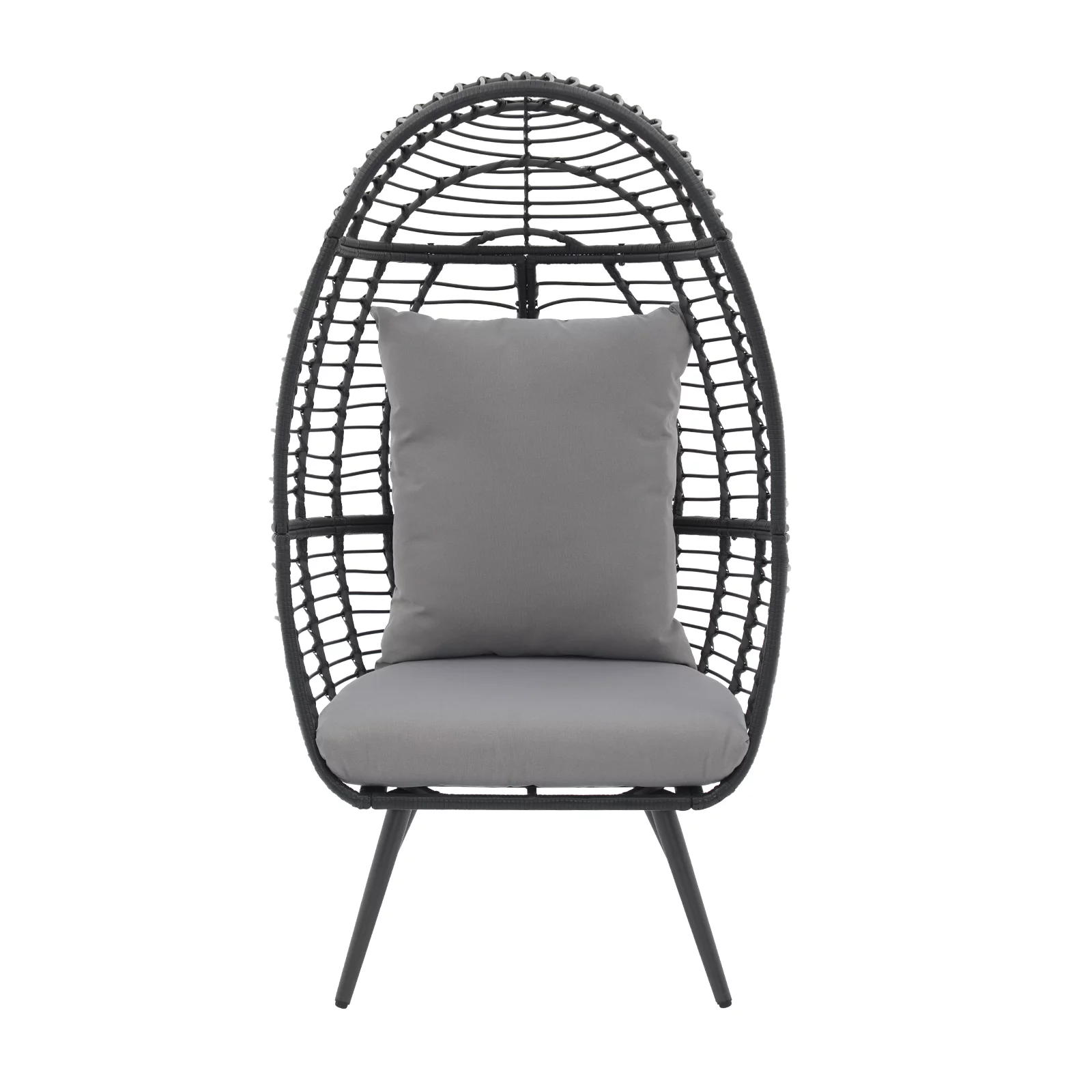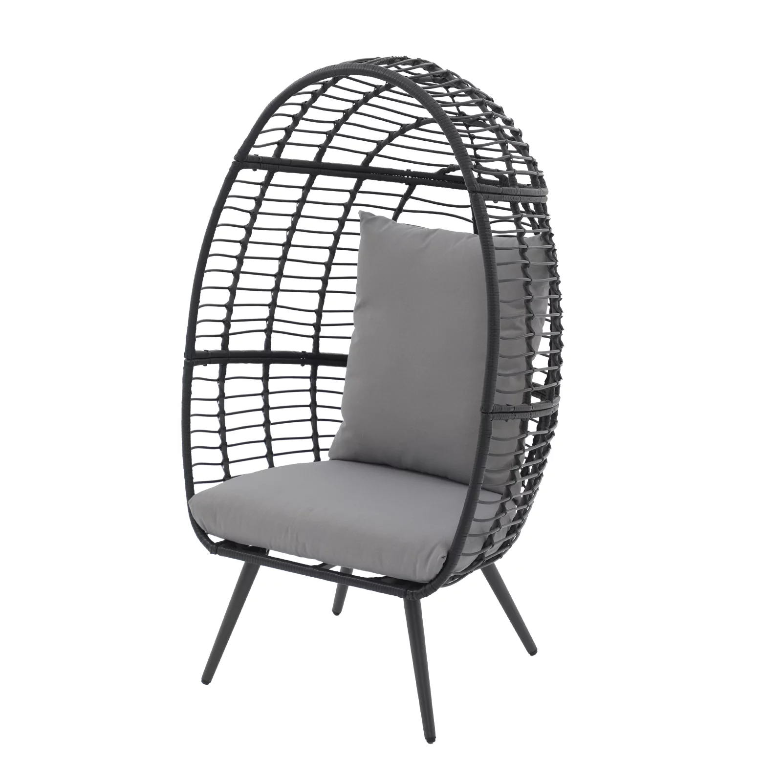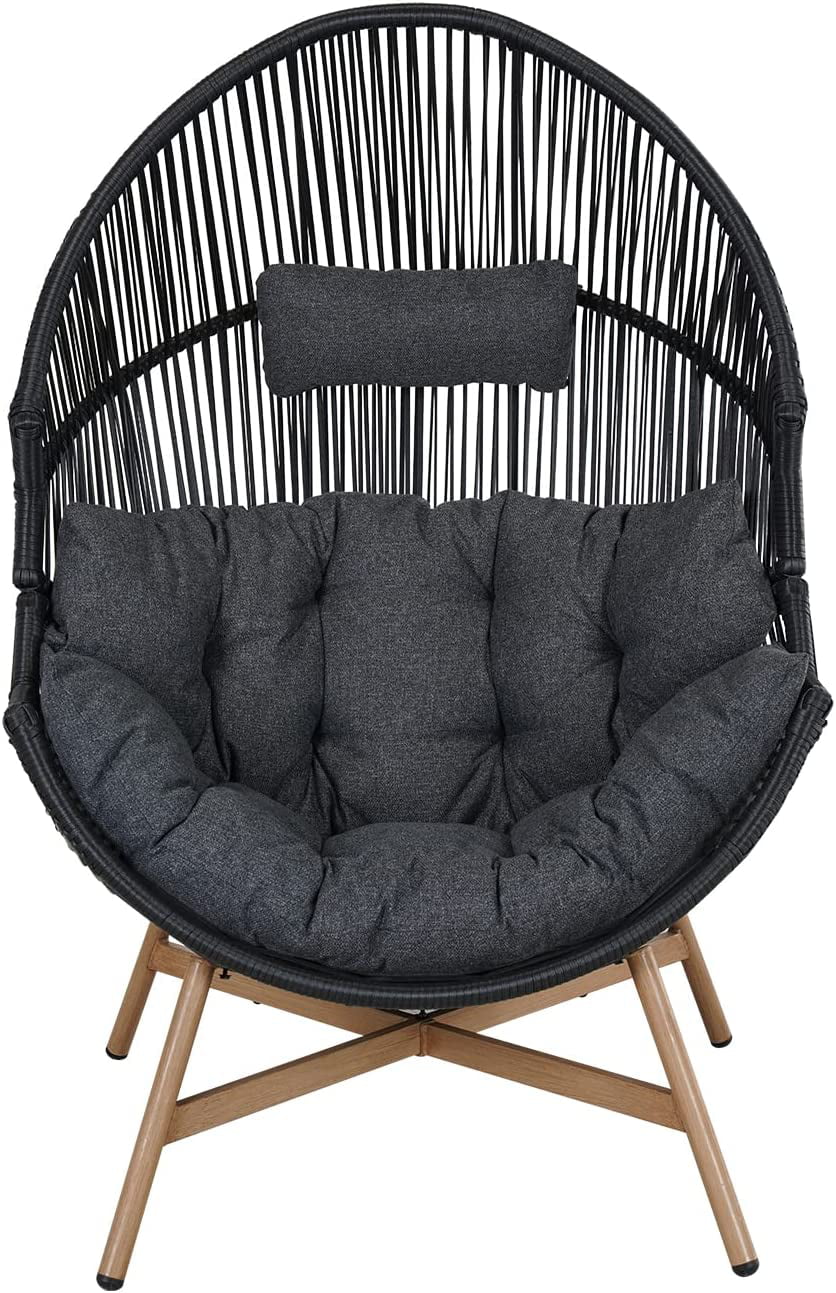Grand Patio Indoor & Outdoor Recliner Chair PE Wicker Patio 150° Lay Flat Recliner, 2PCS, Gray