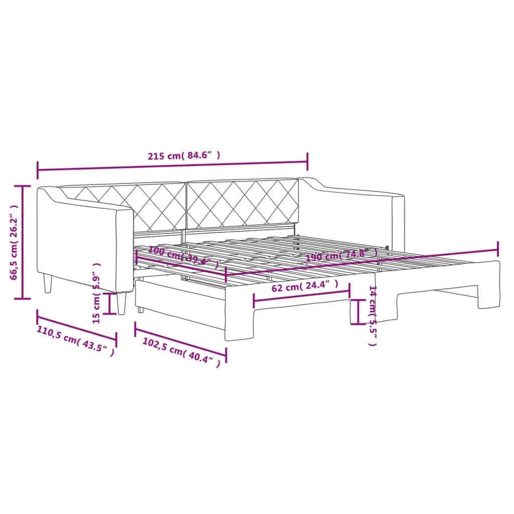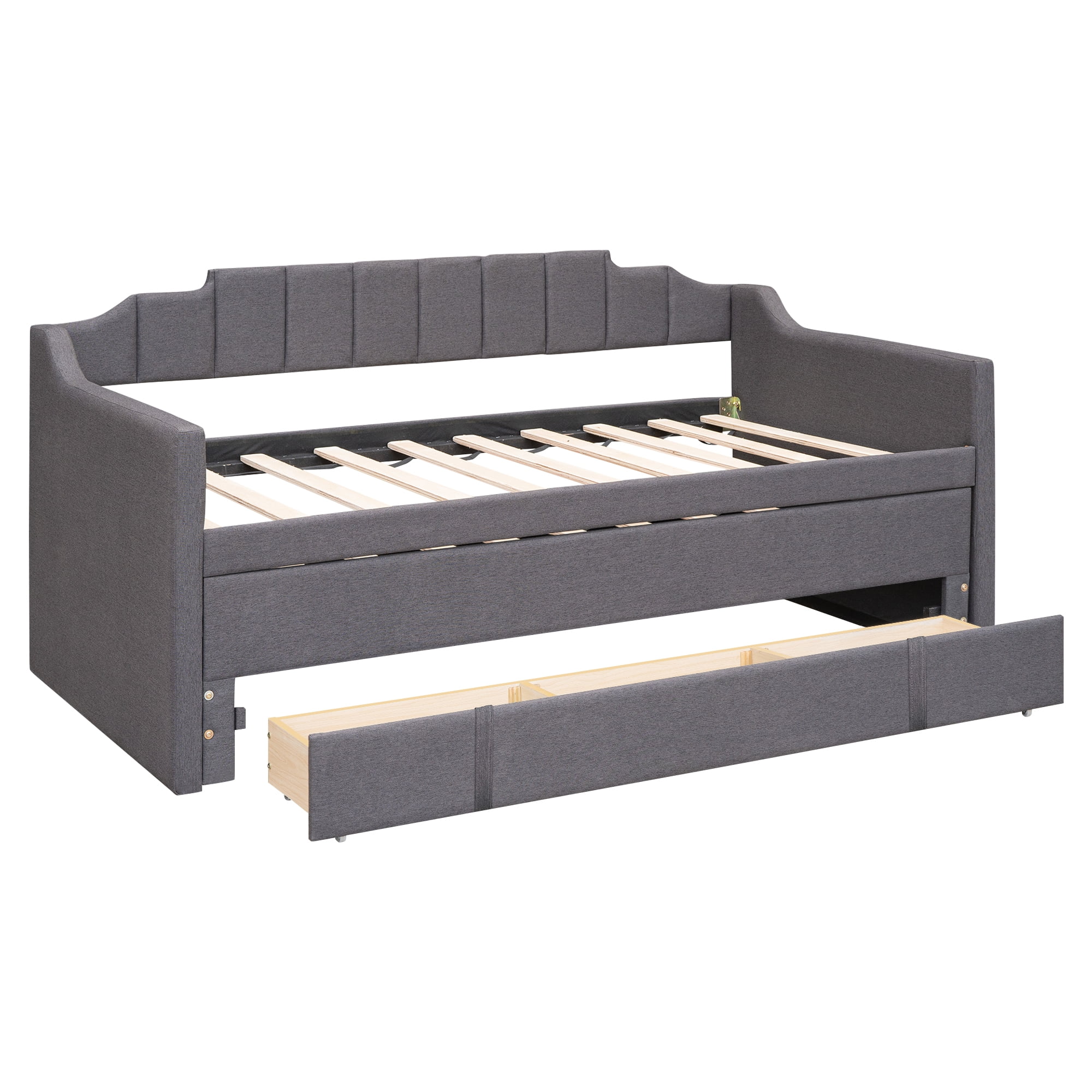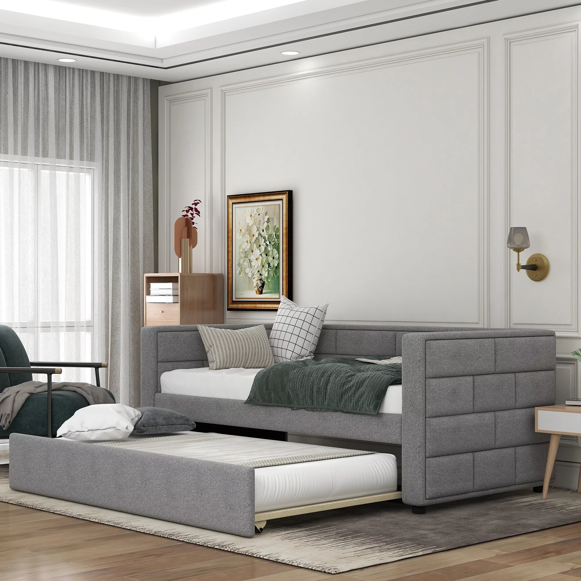 Twin Size Daybed with Trundle, Upholstered Daybed with Padded Back, Gray