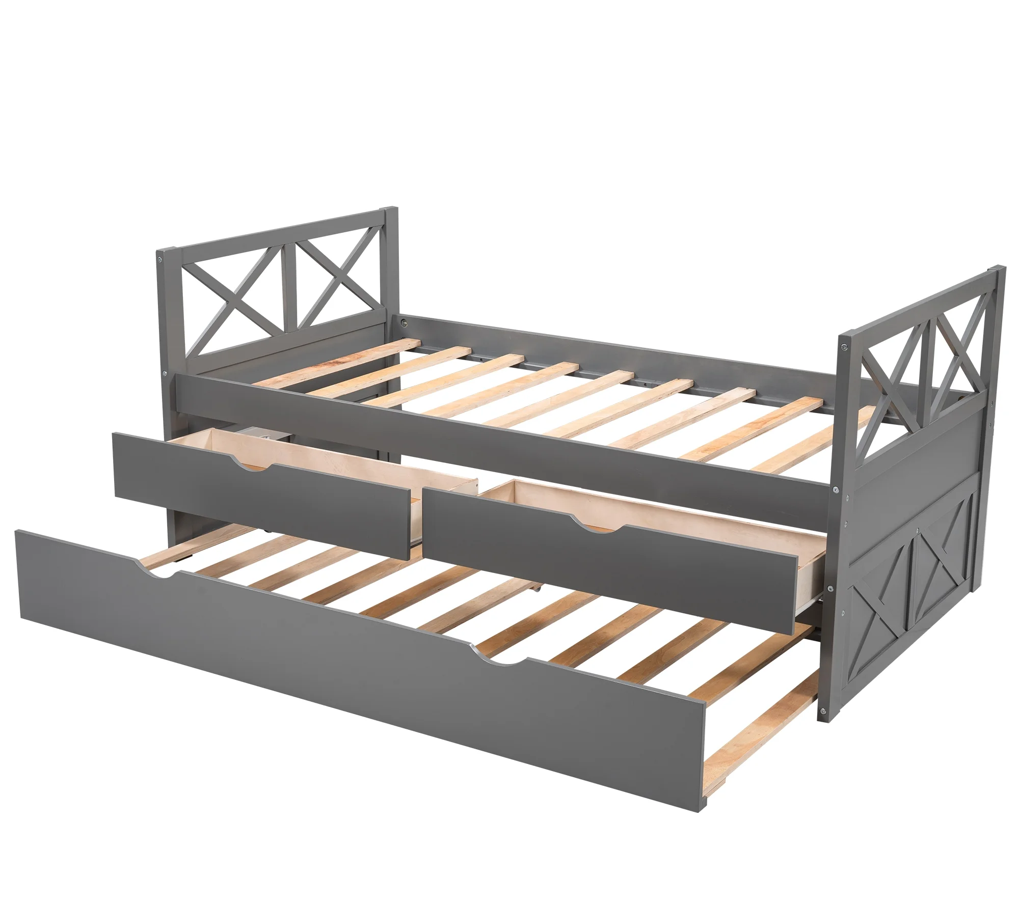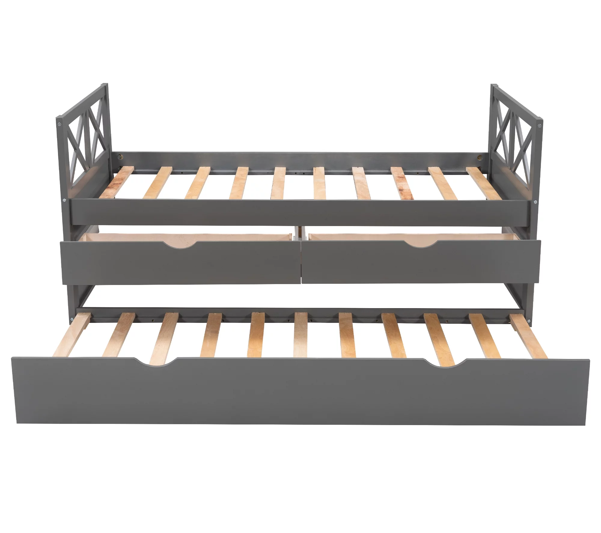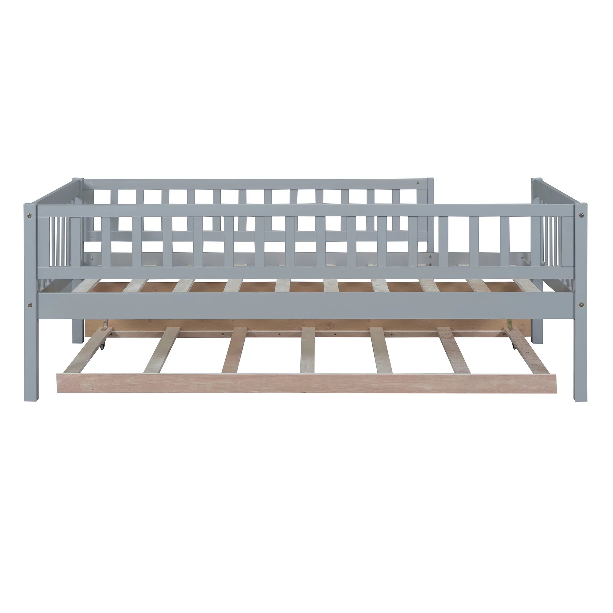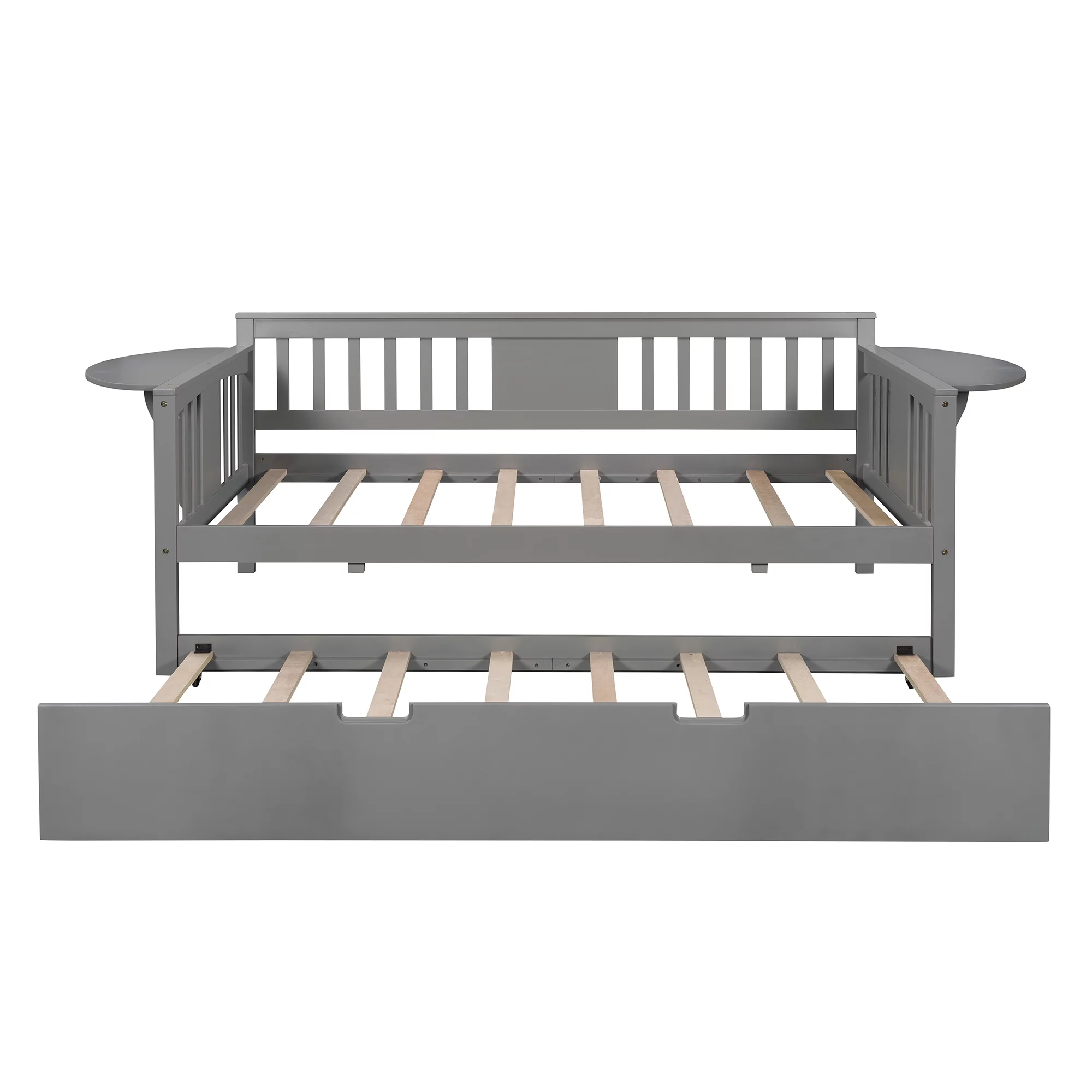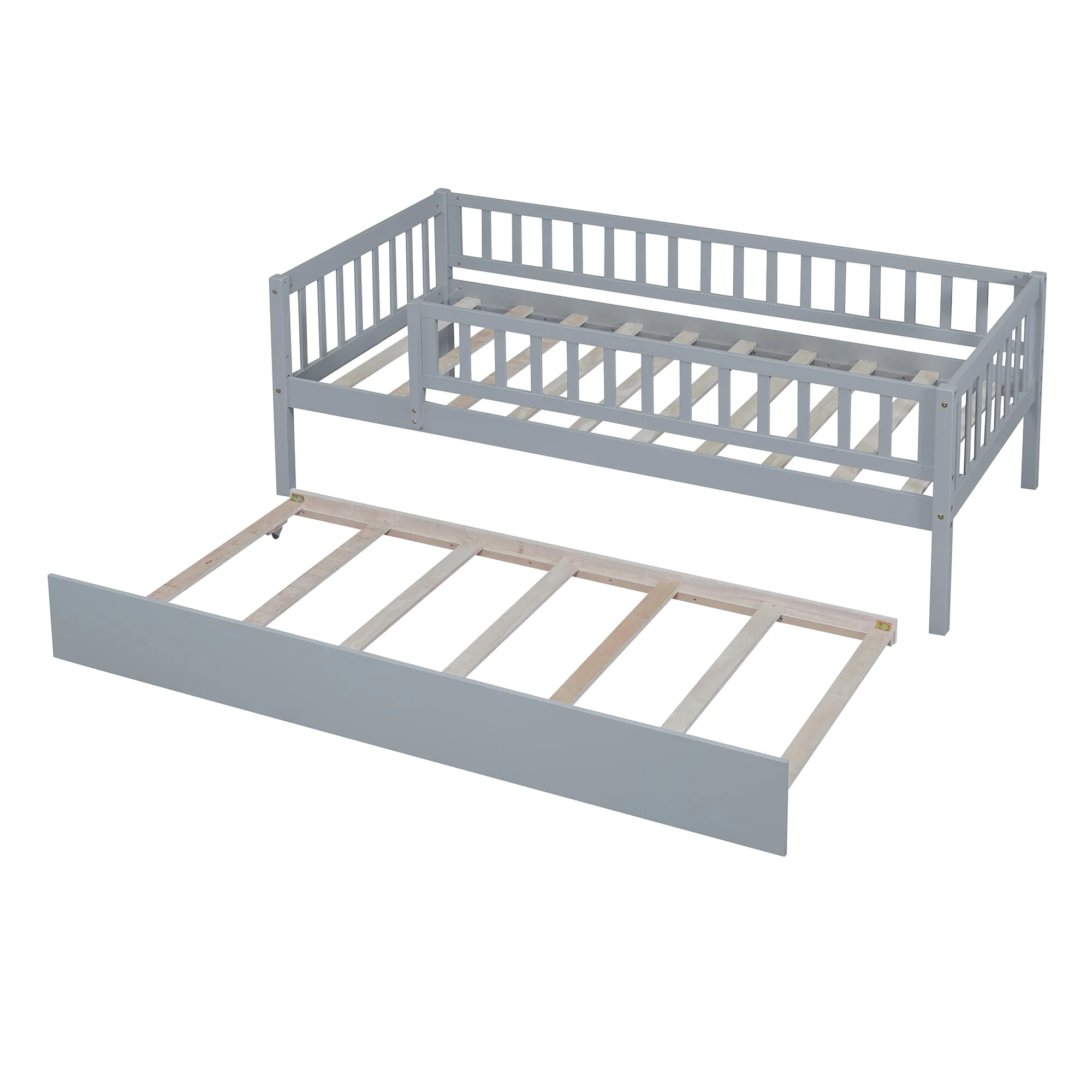 Dawn Whisper Twin Wooden Daybed with Trundle Bed, Sofa Bed for Bedroom Living Room, Gray