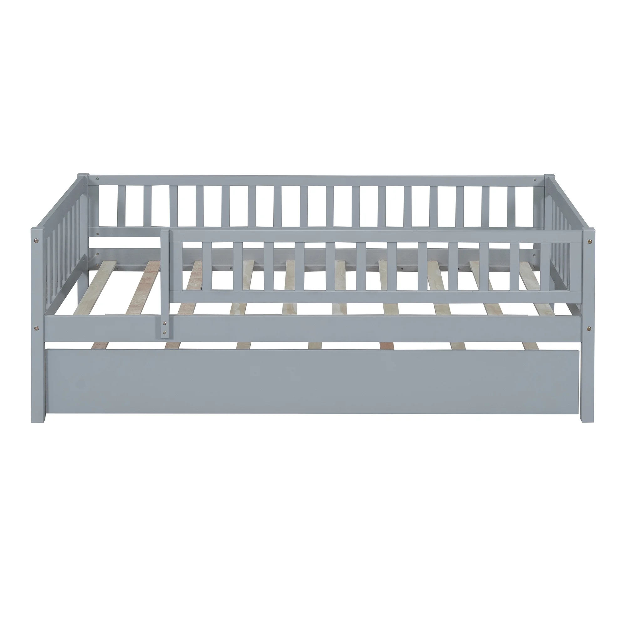 CoSoTower Twin Wooden Daybed with Trundle, Twin House-Shaped Headboard Bed with Guardrails, Grey