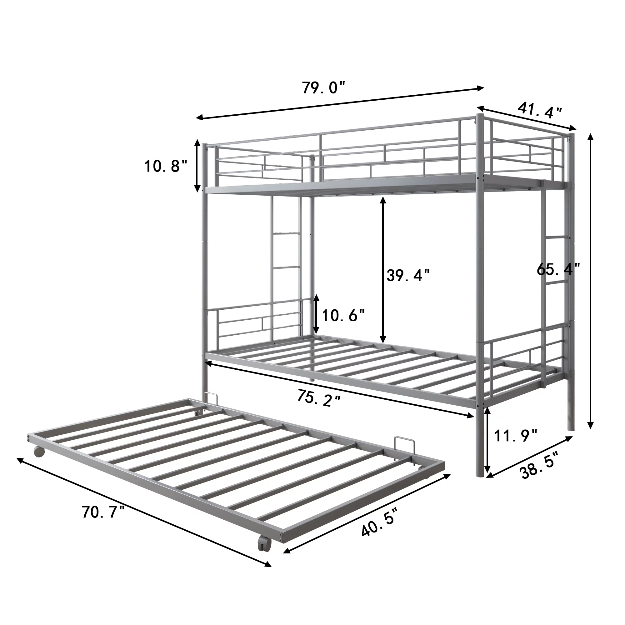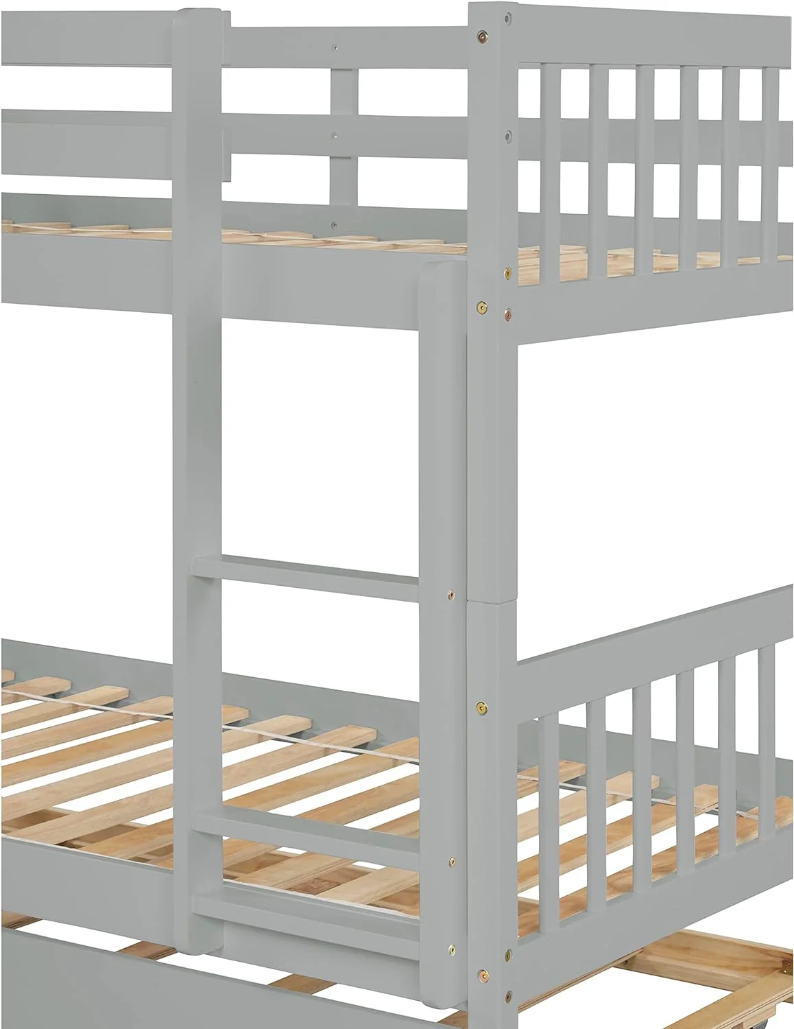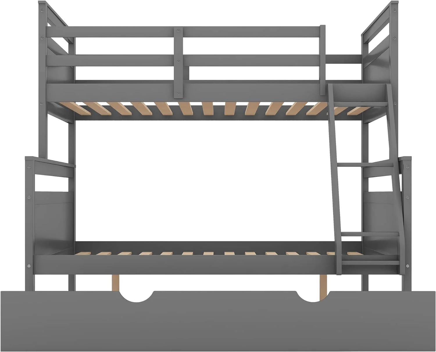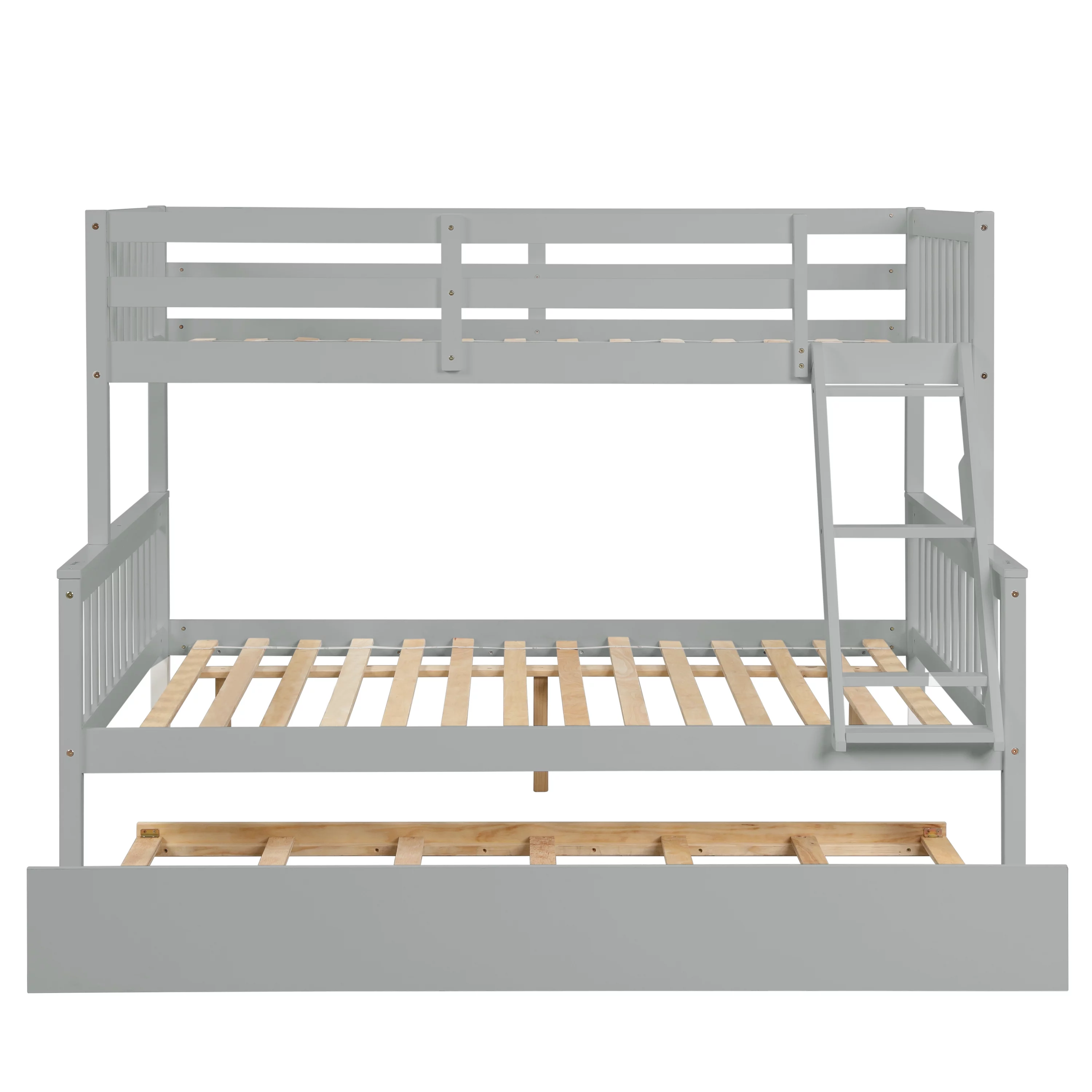 Over Bunk Bed With Trundle, Convertible Into 2 Beds,The Bunk Bed With Ladder And Safety Rails, Grey