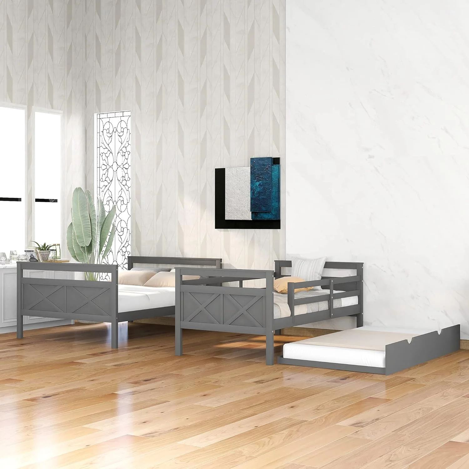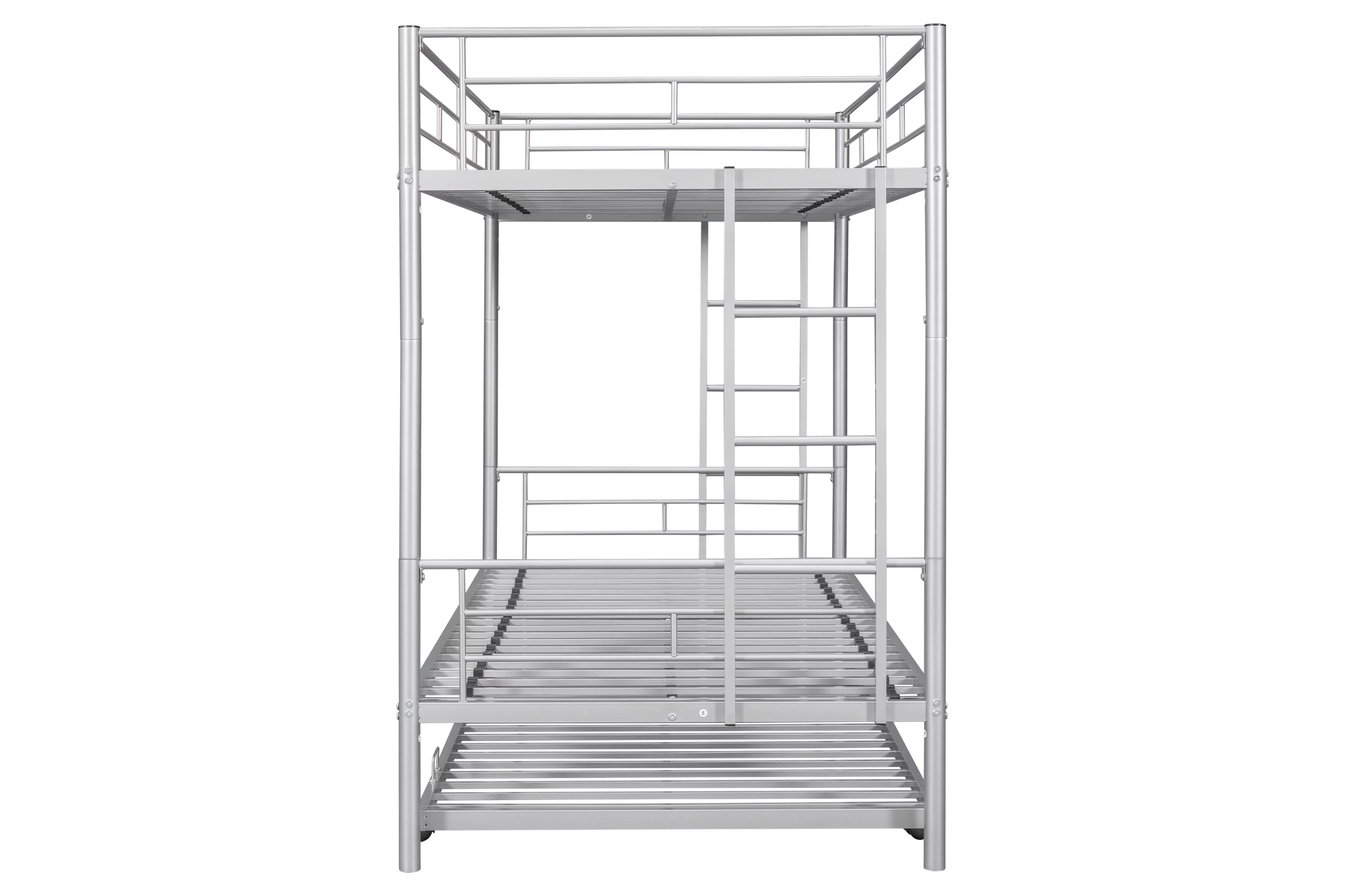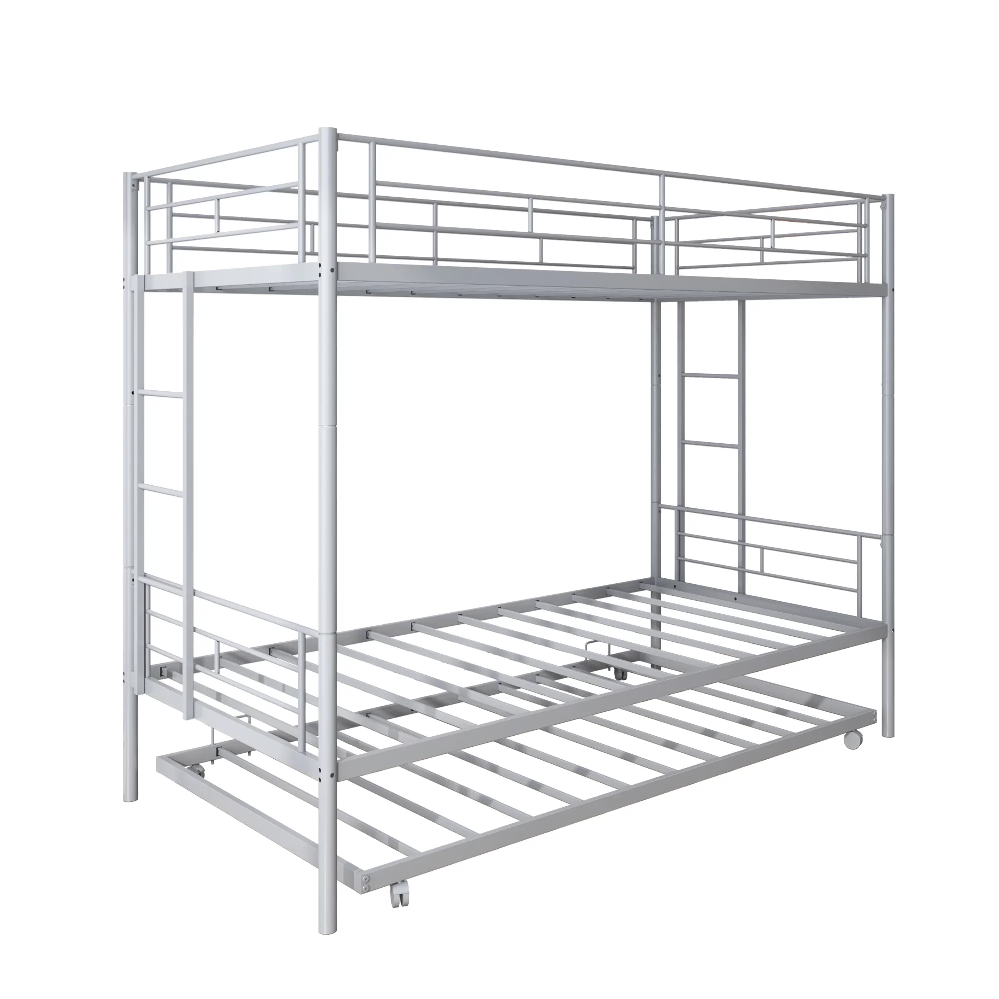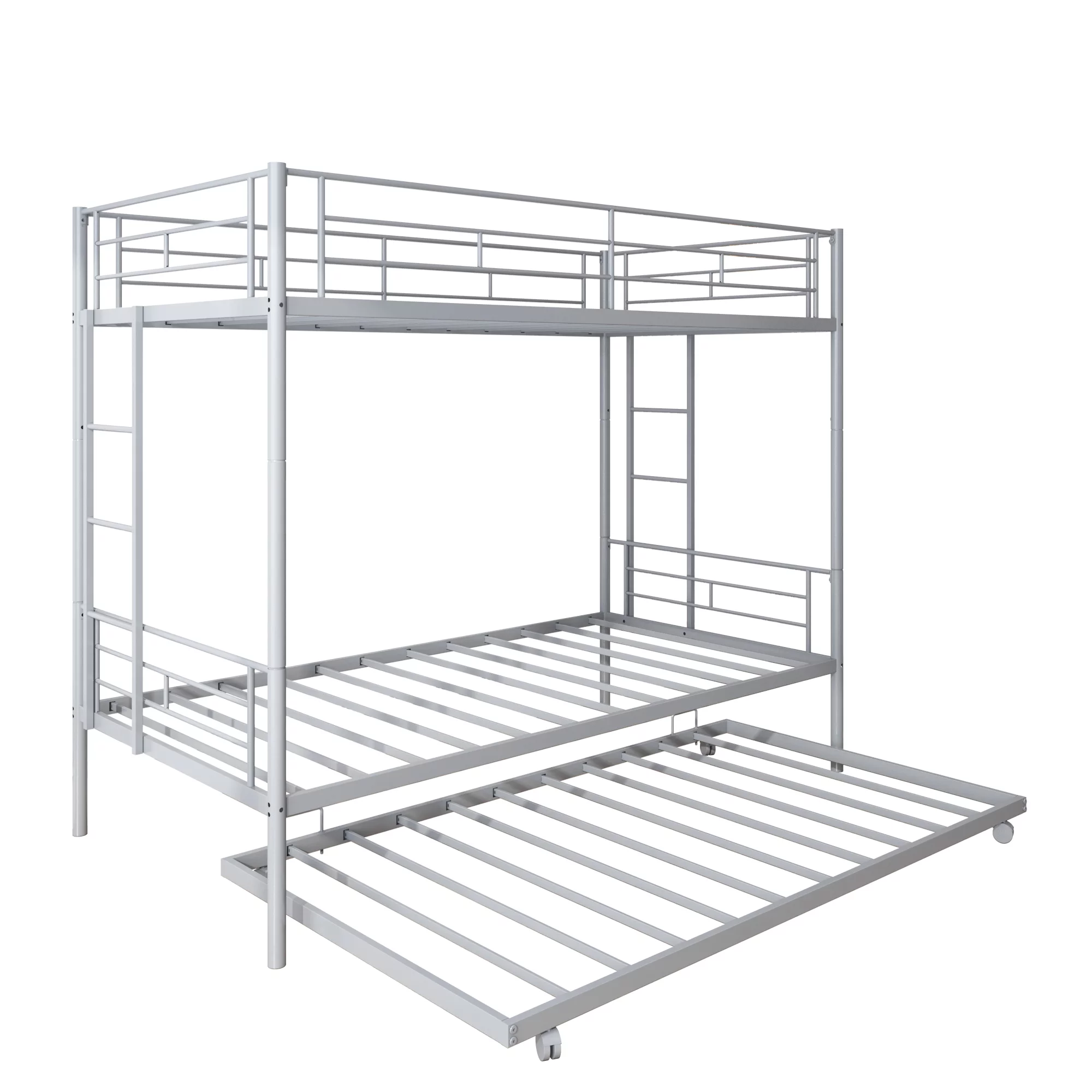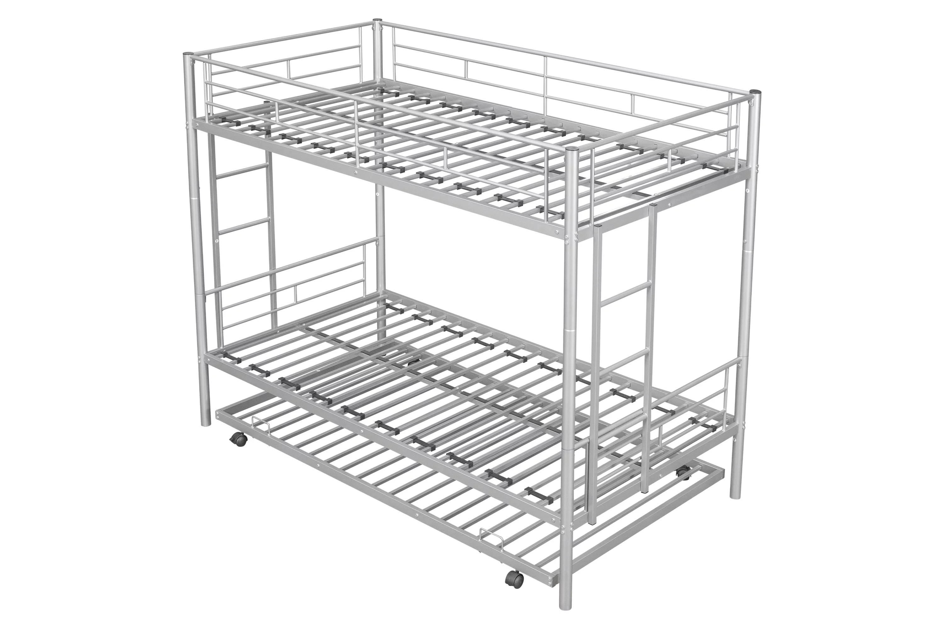 Over Bunk Bed With Trundle, Convertible Into 2 Beds,The Bunk Bed With Ladder And Safety Rails, Grey