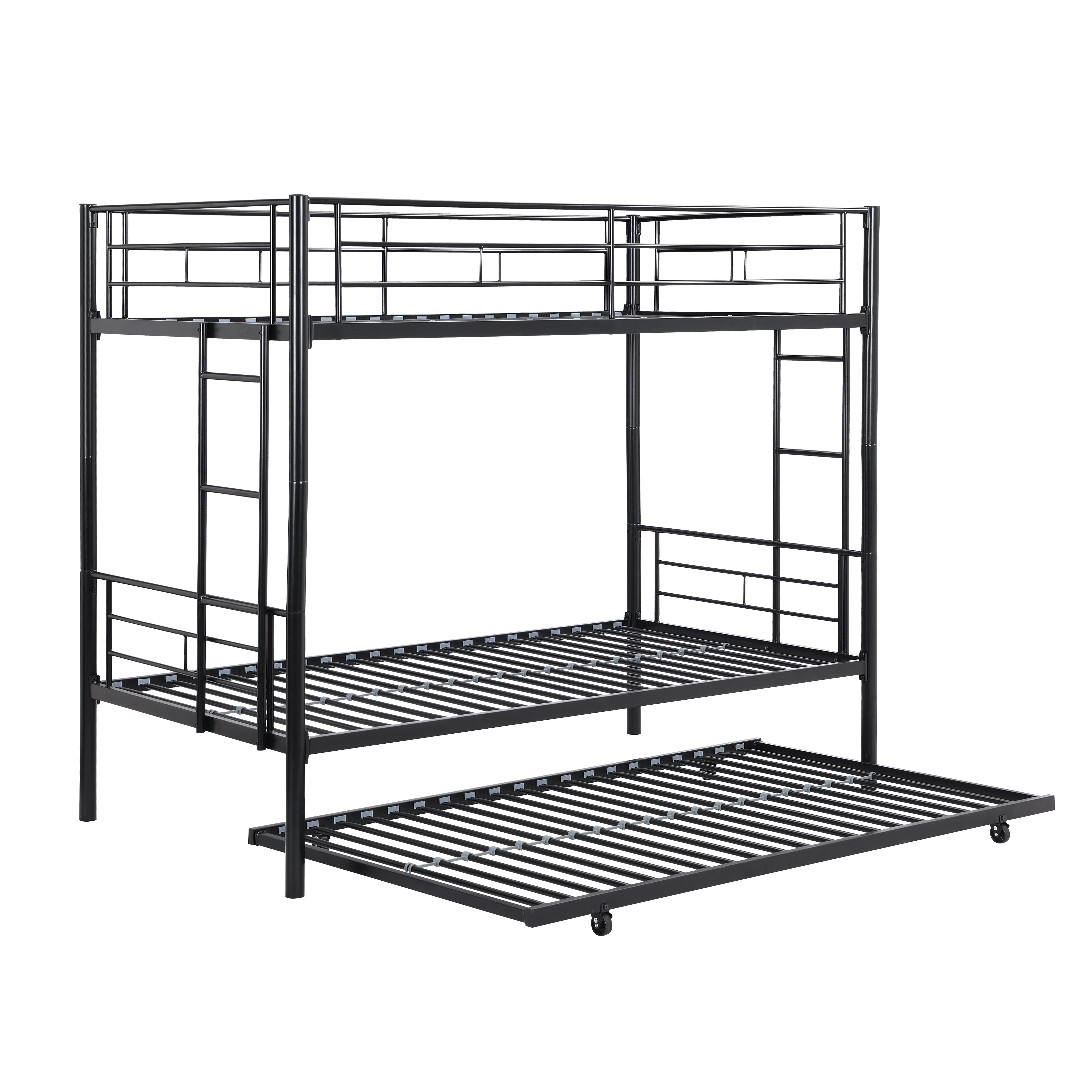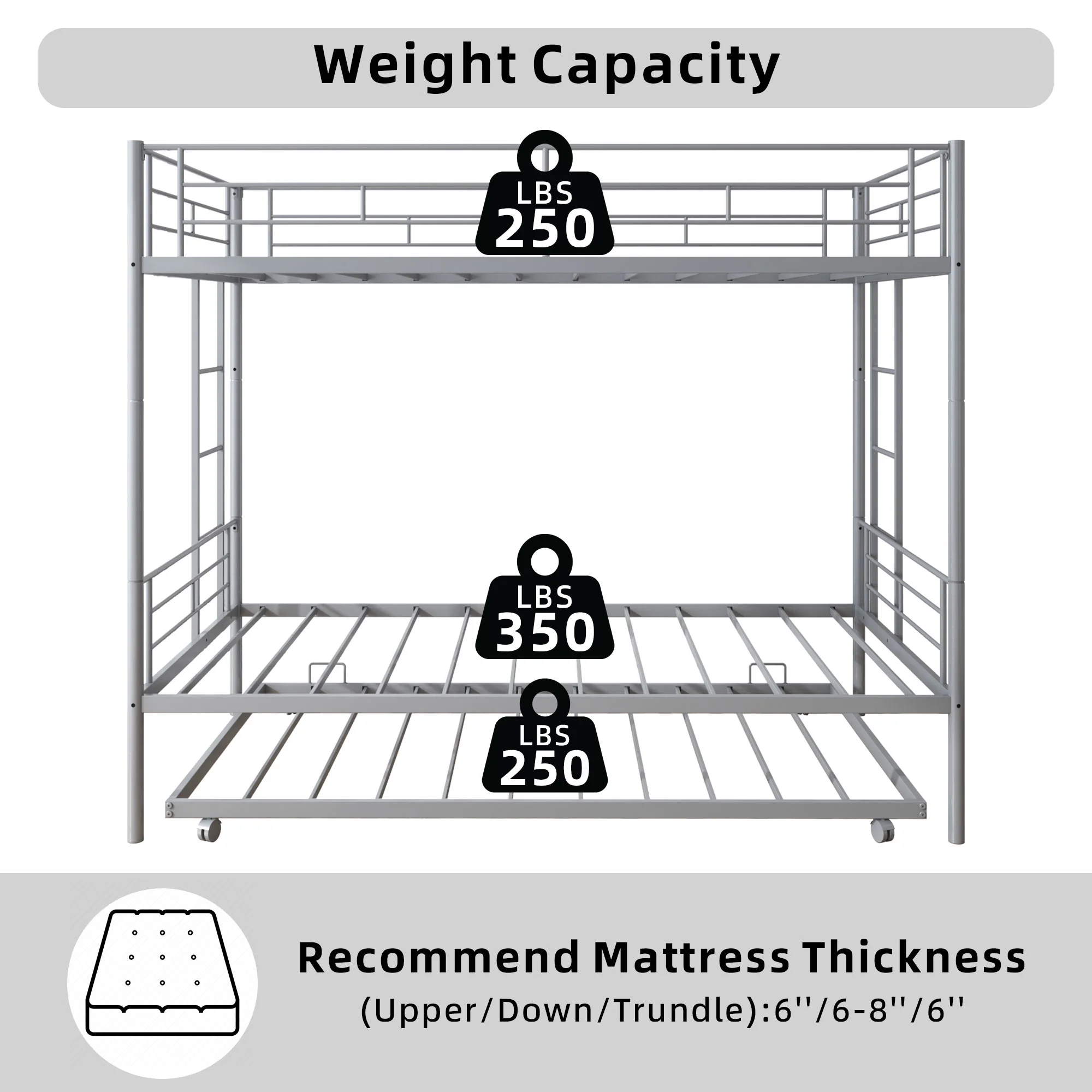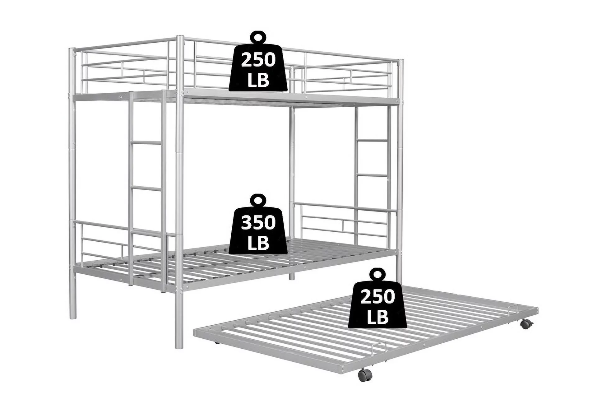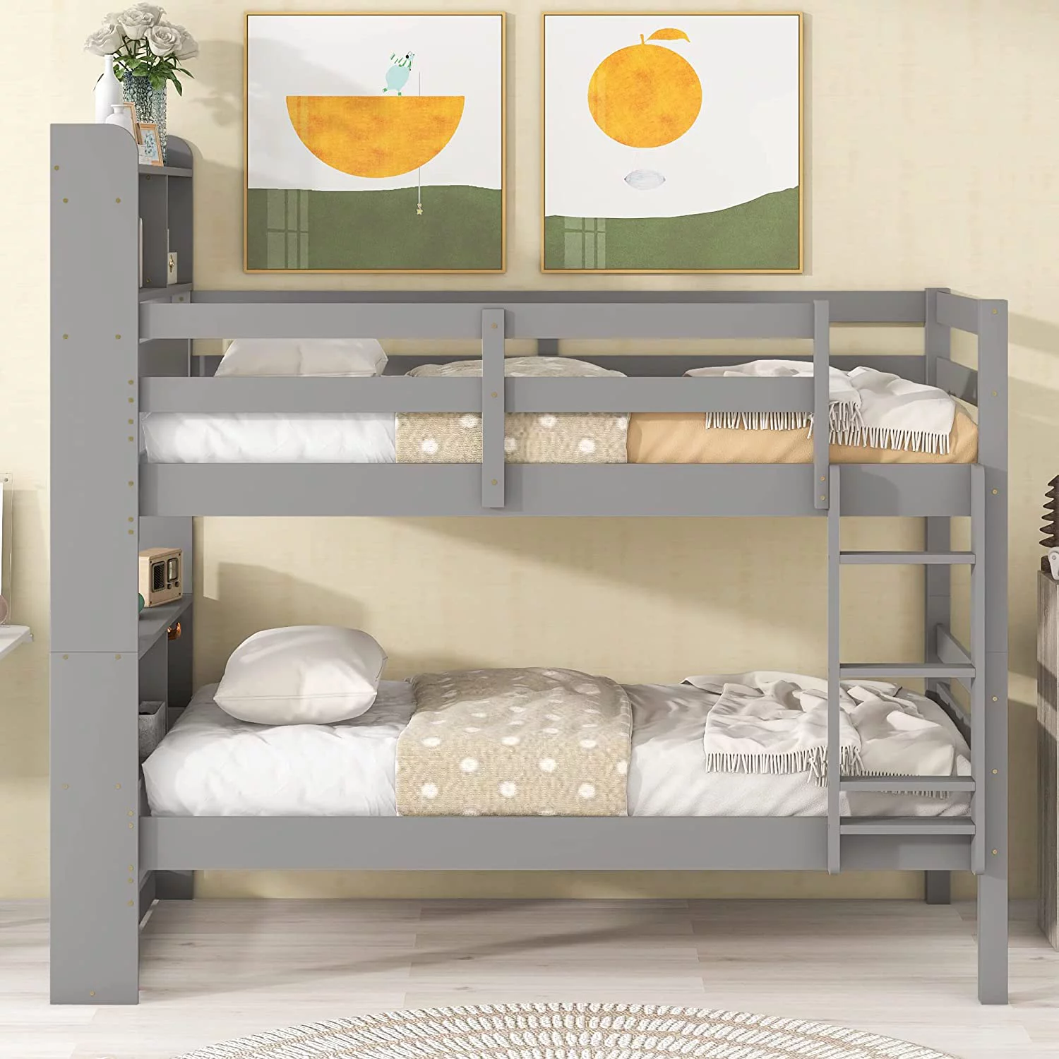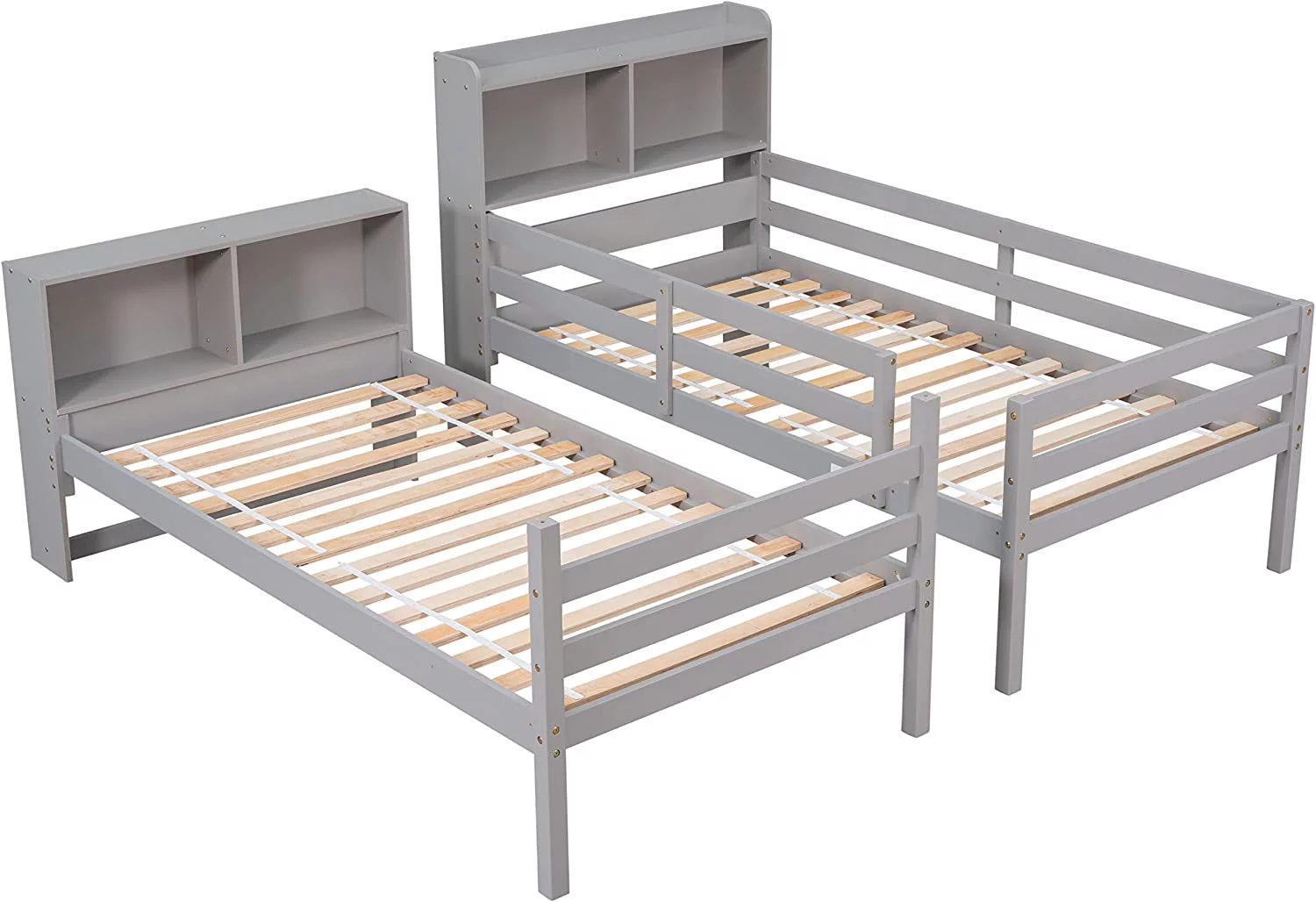 Over Bunk Bed With Trundle, Convertible Into 2 Beds,The Bunk Bed With Ladder And Safety Rails, Grey