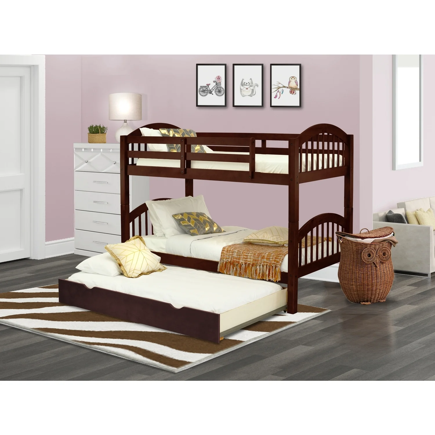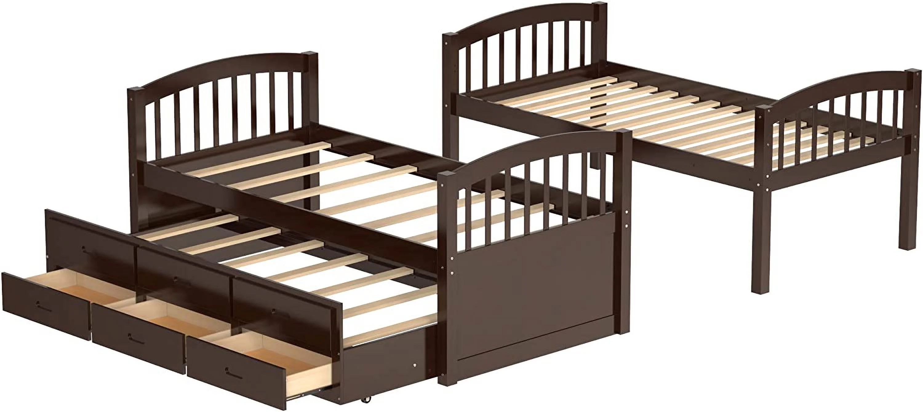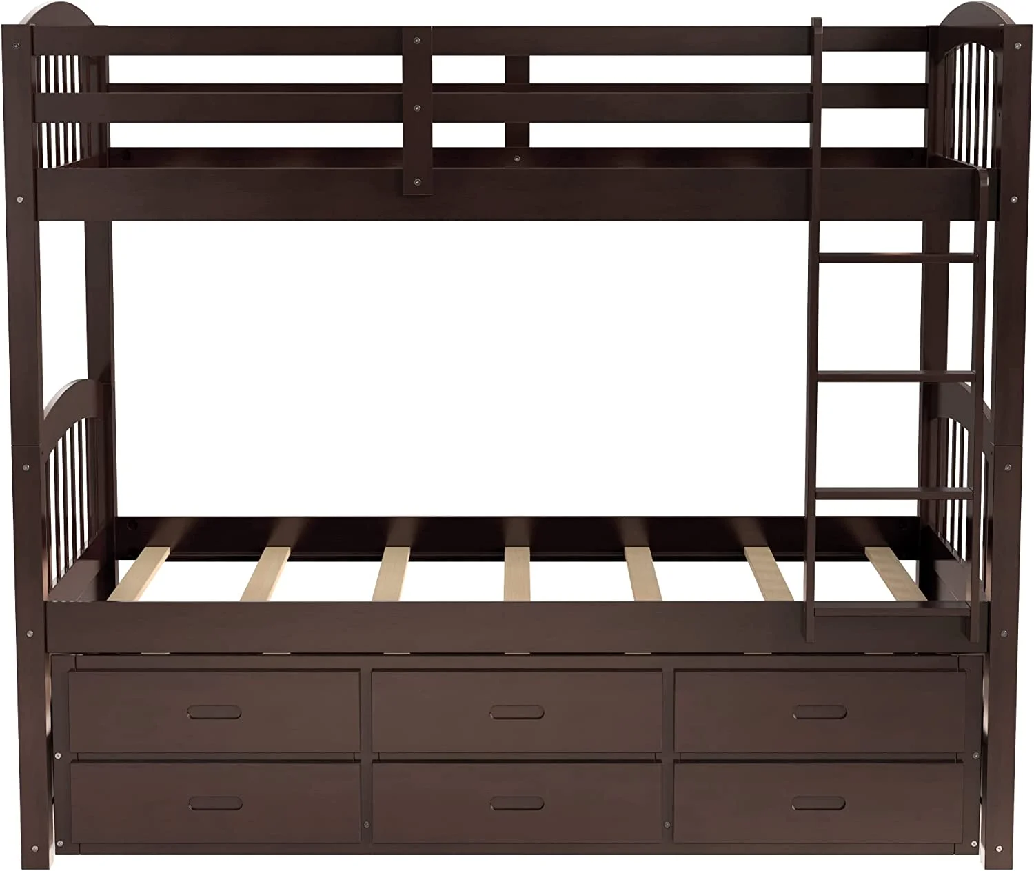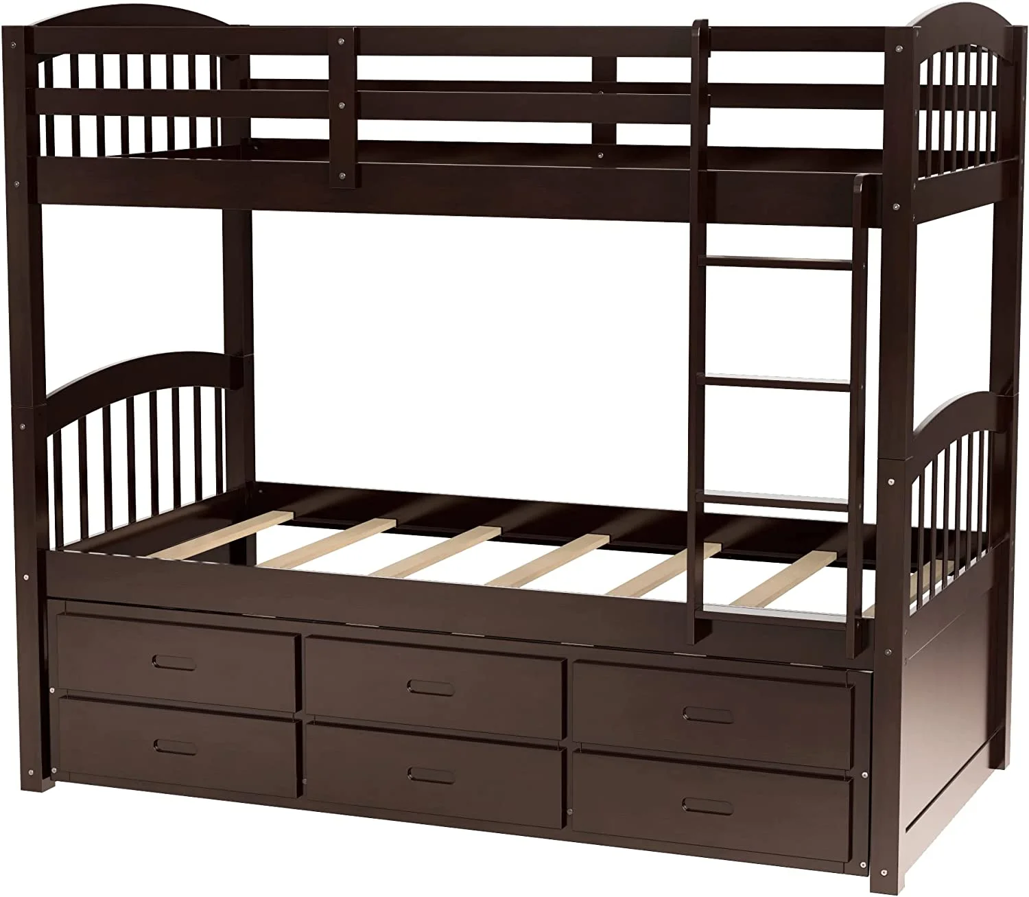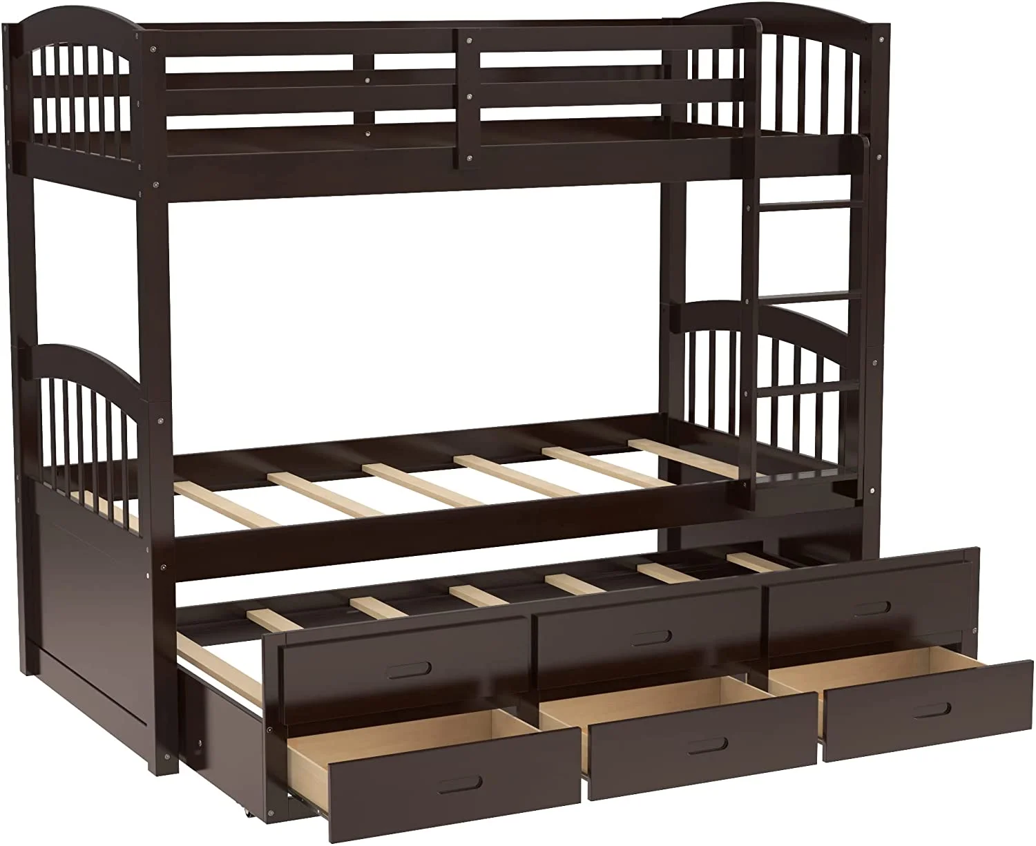 80" X 41" X 71" Espresso Twin Over Twin Bunk Bed And Trundle With 3 Drawers
