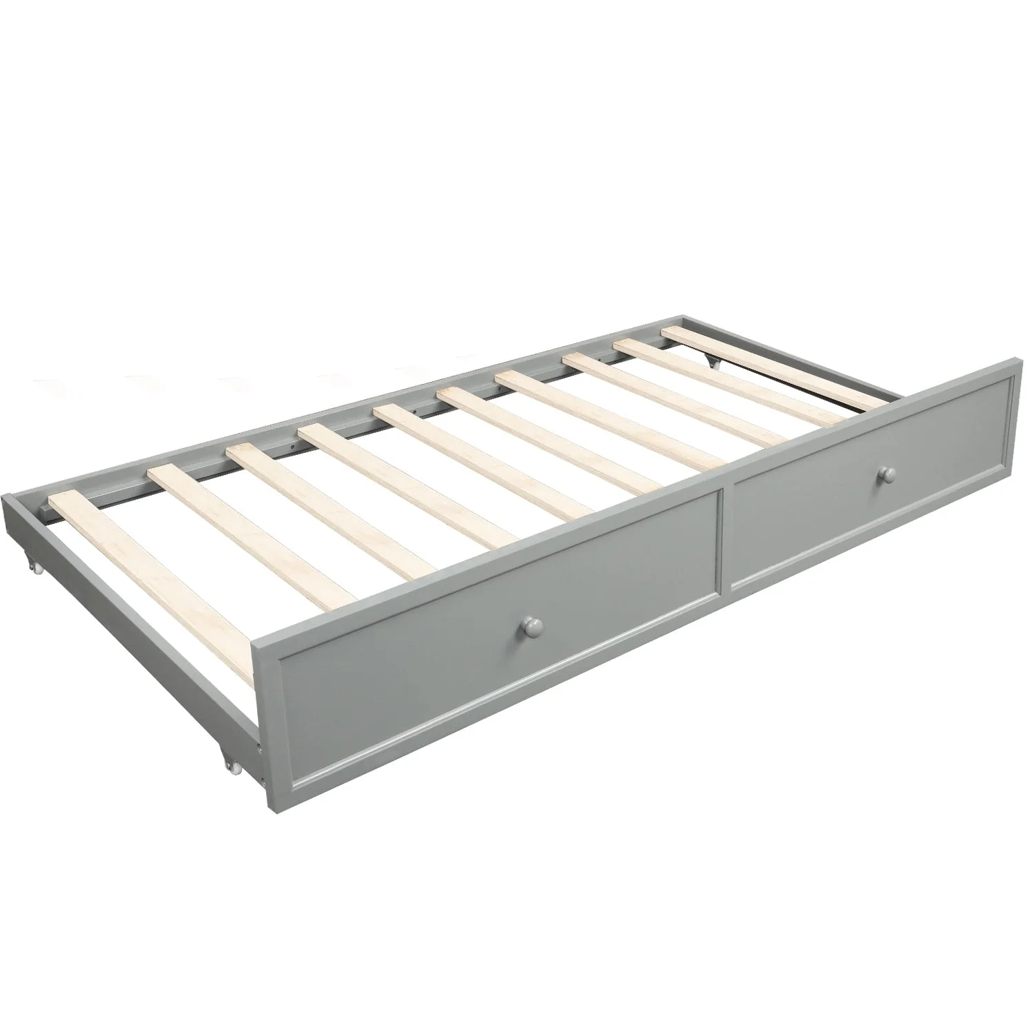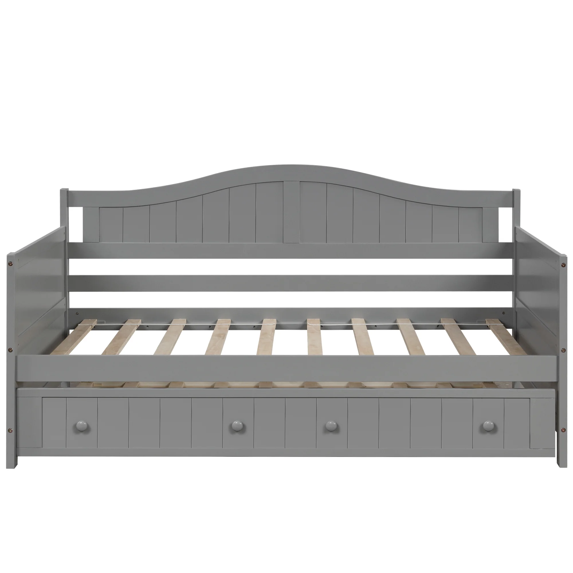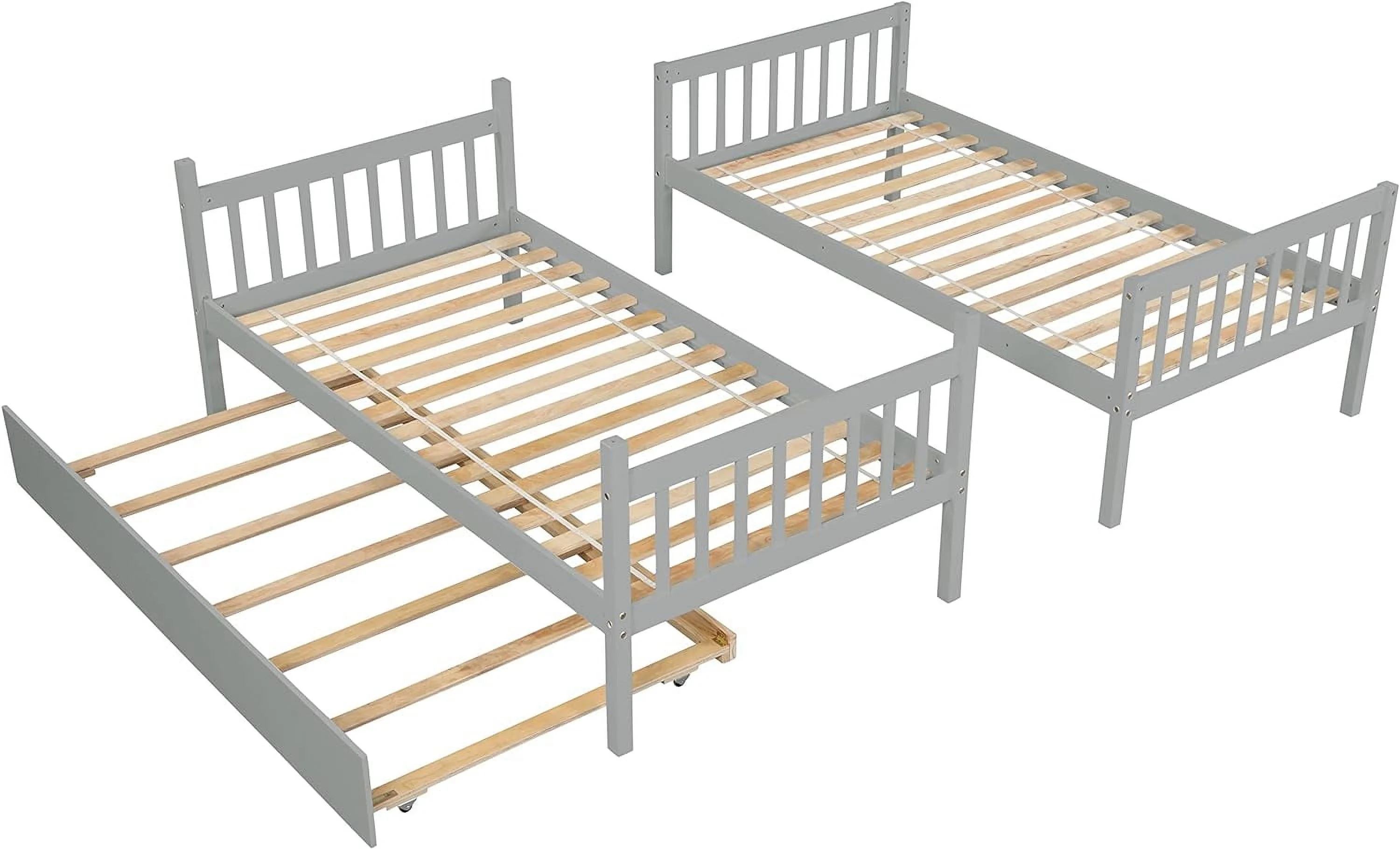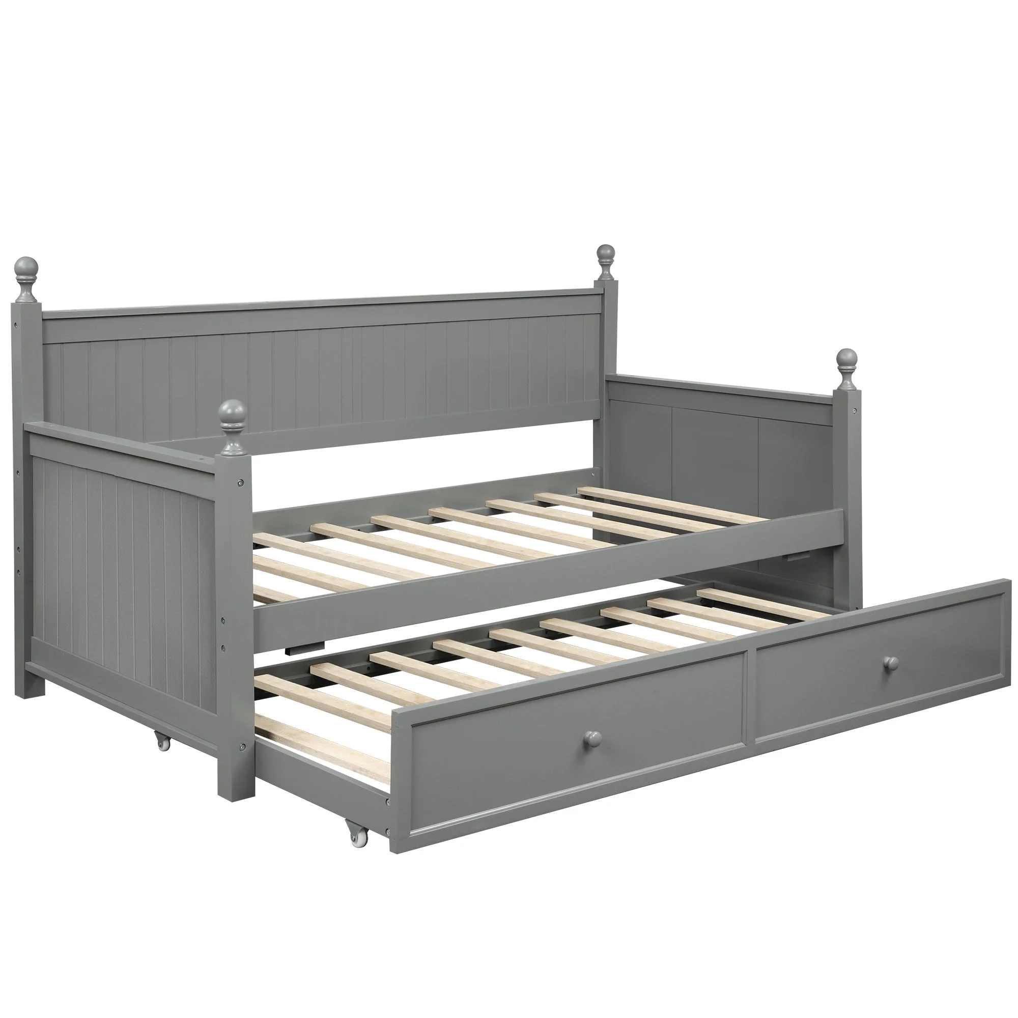 Twin Wooden Daybed with Trundle Bed, Sofa Bed for Bedroom Living Room, Gray