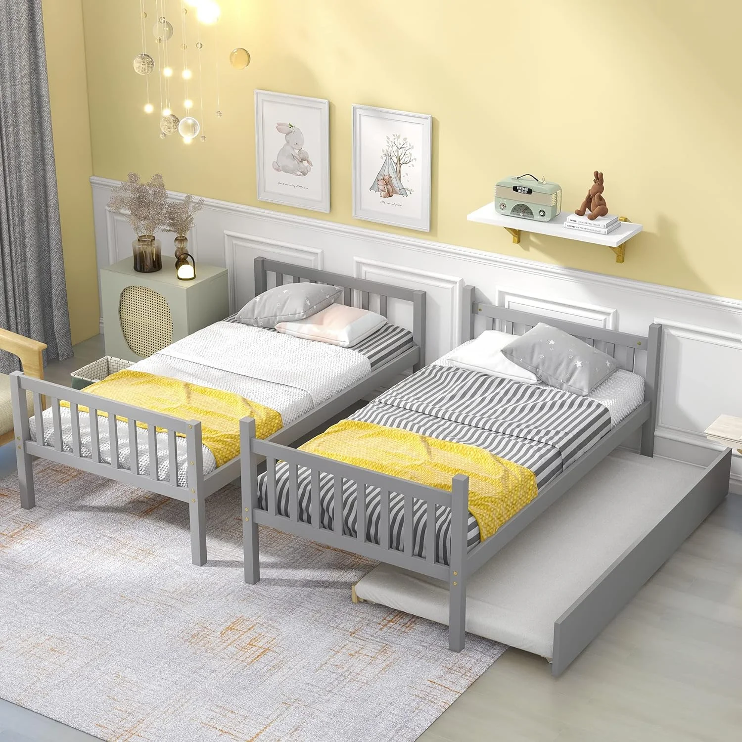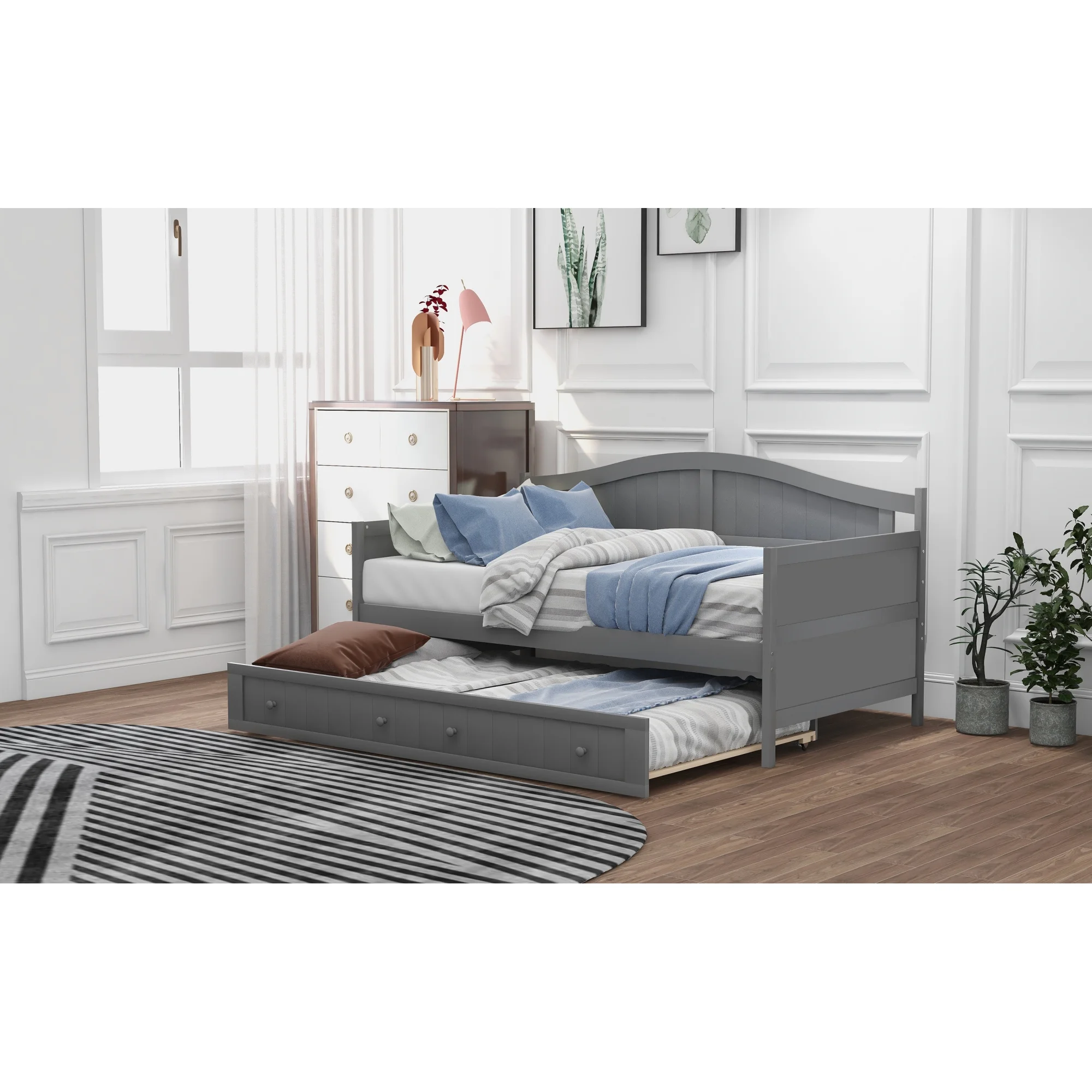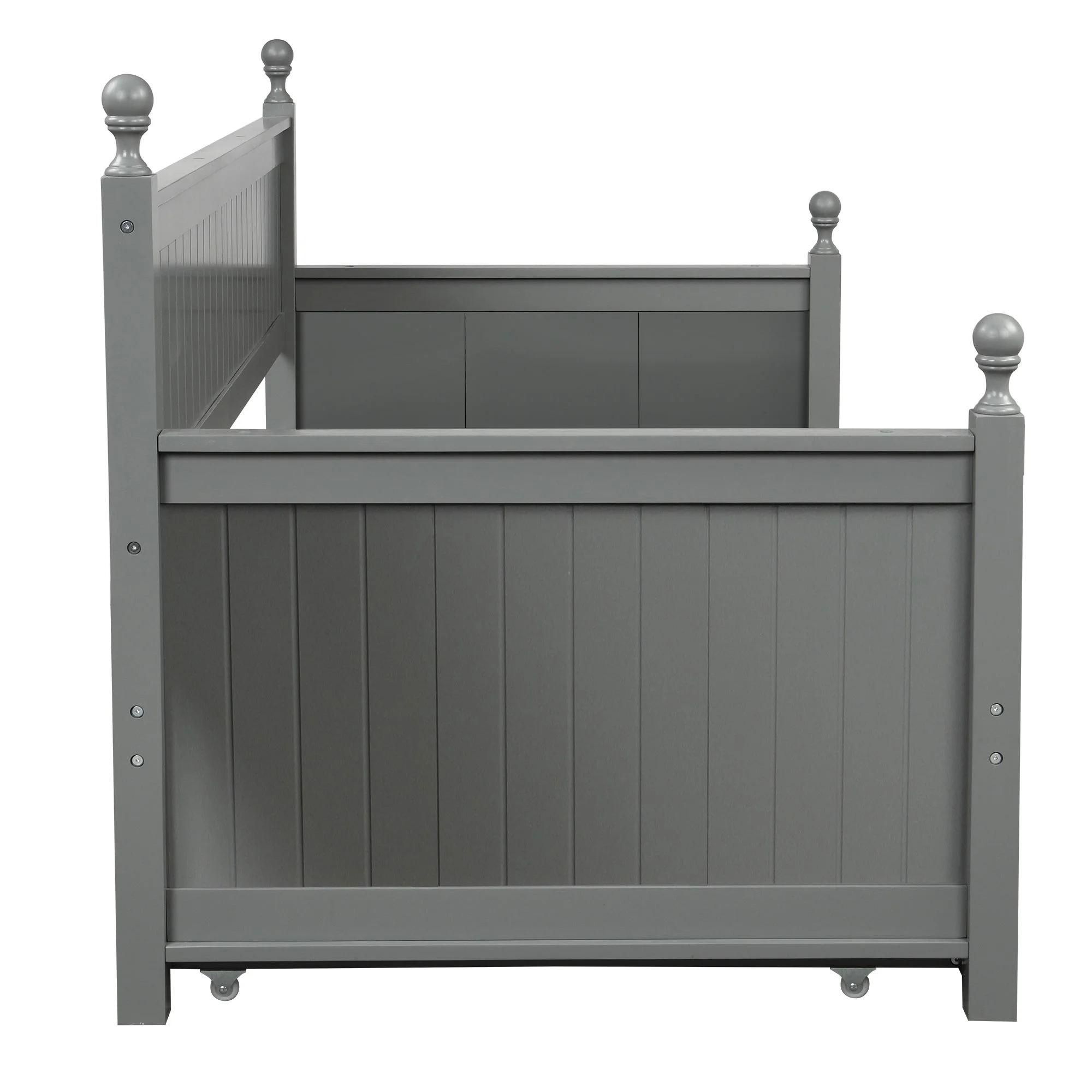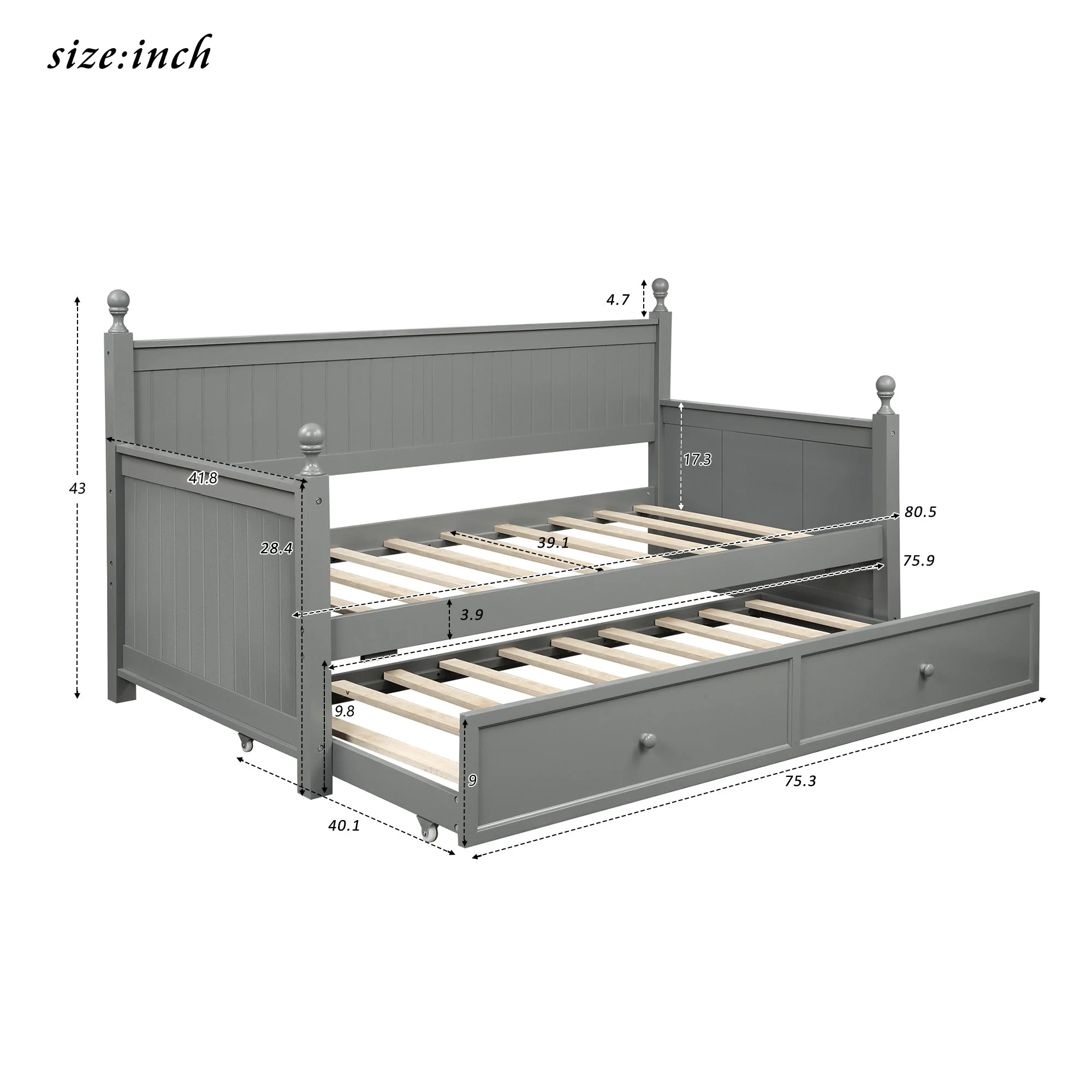 Twin Wooden Daybed with Trundle Bed, Sofa Bed for Bedroom Living Room, Gray