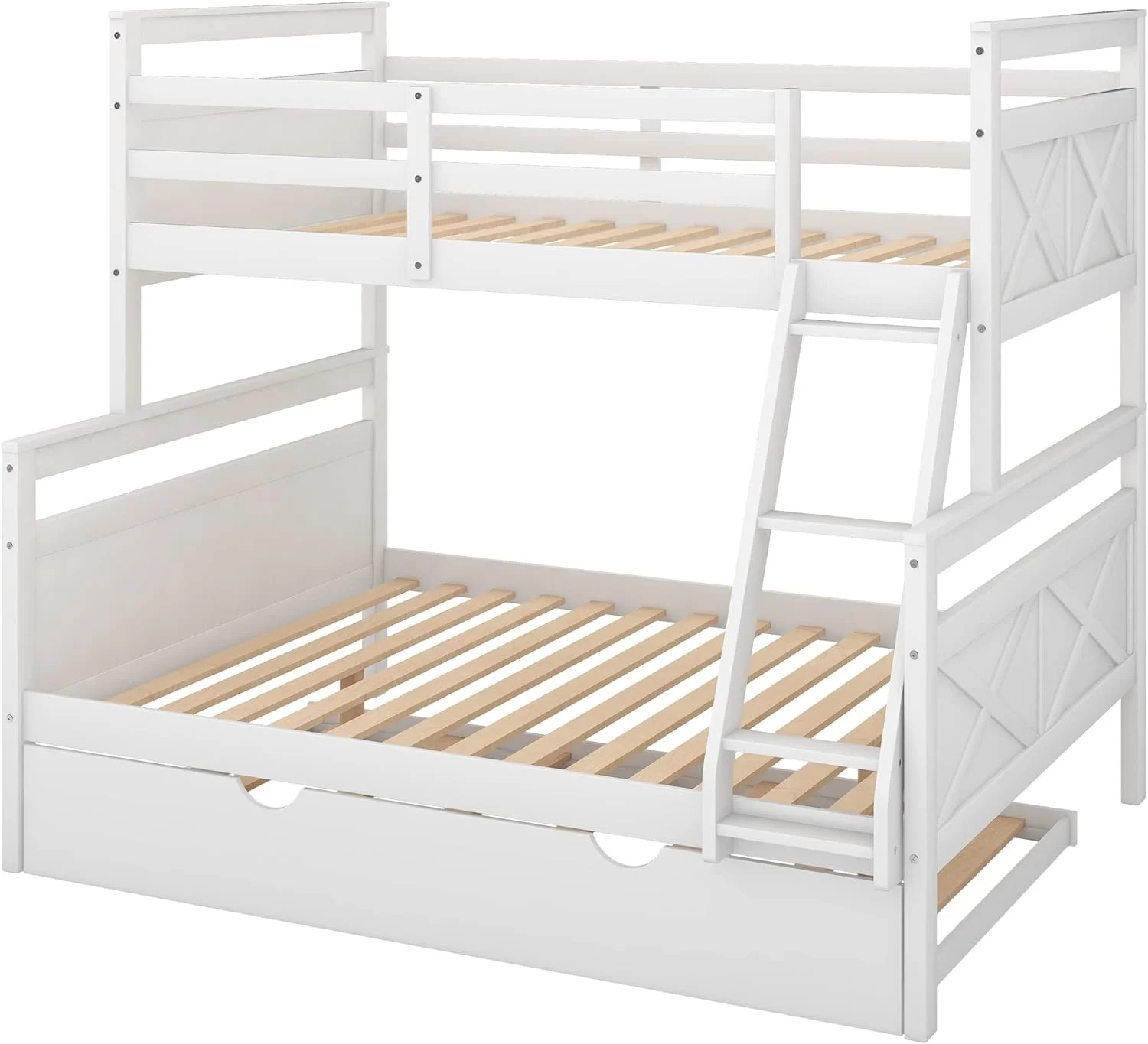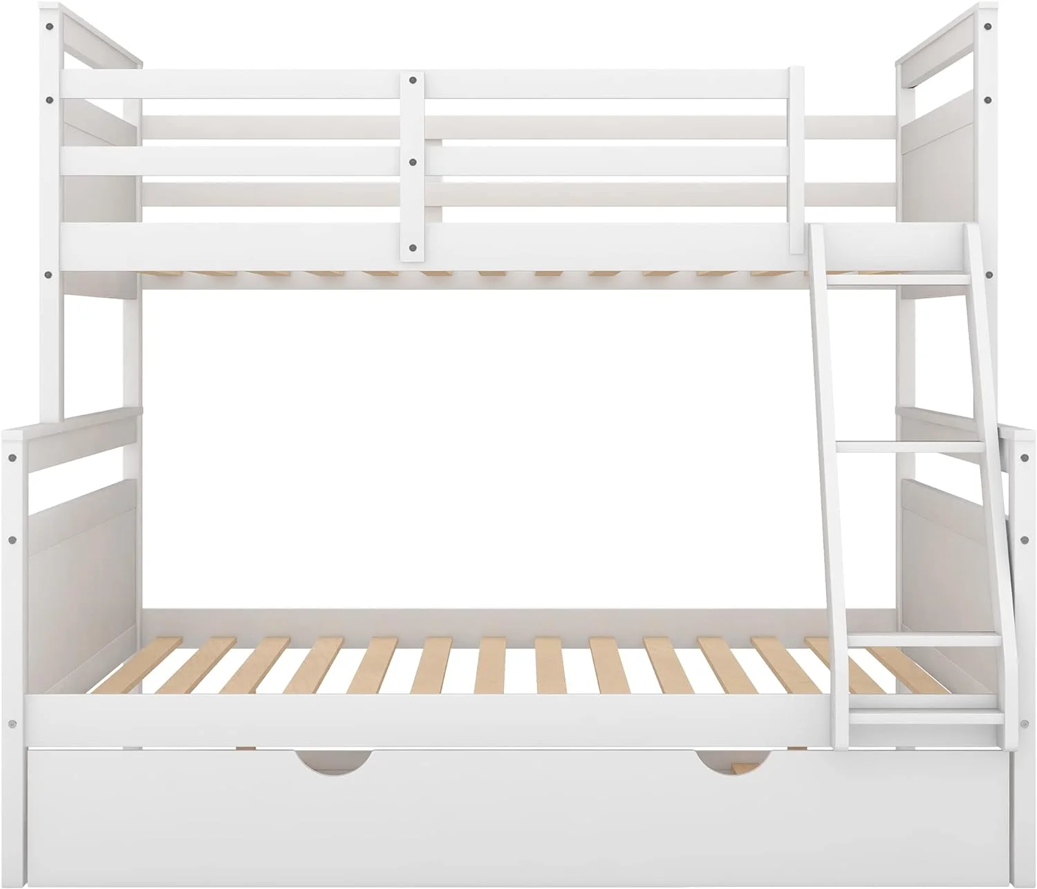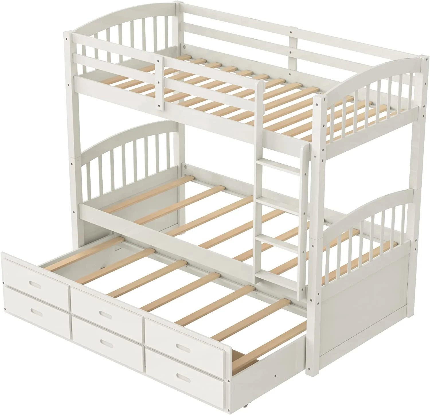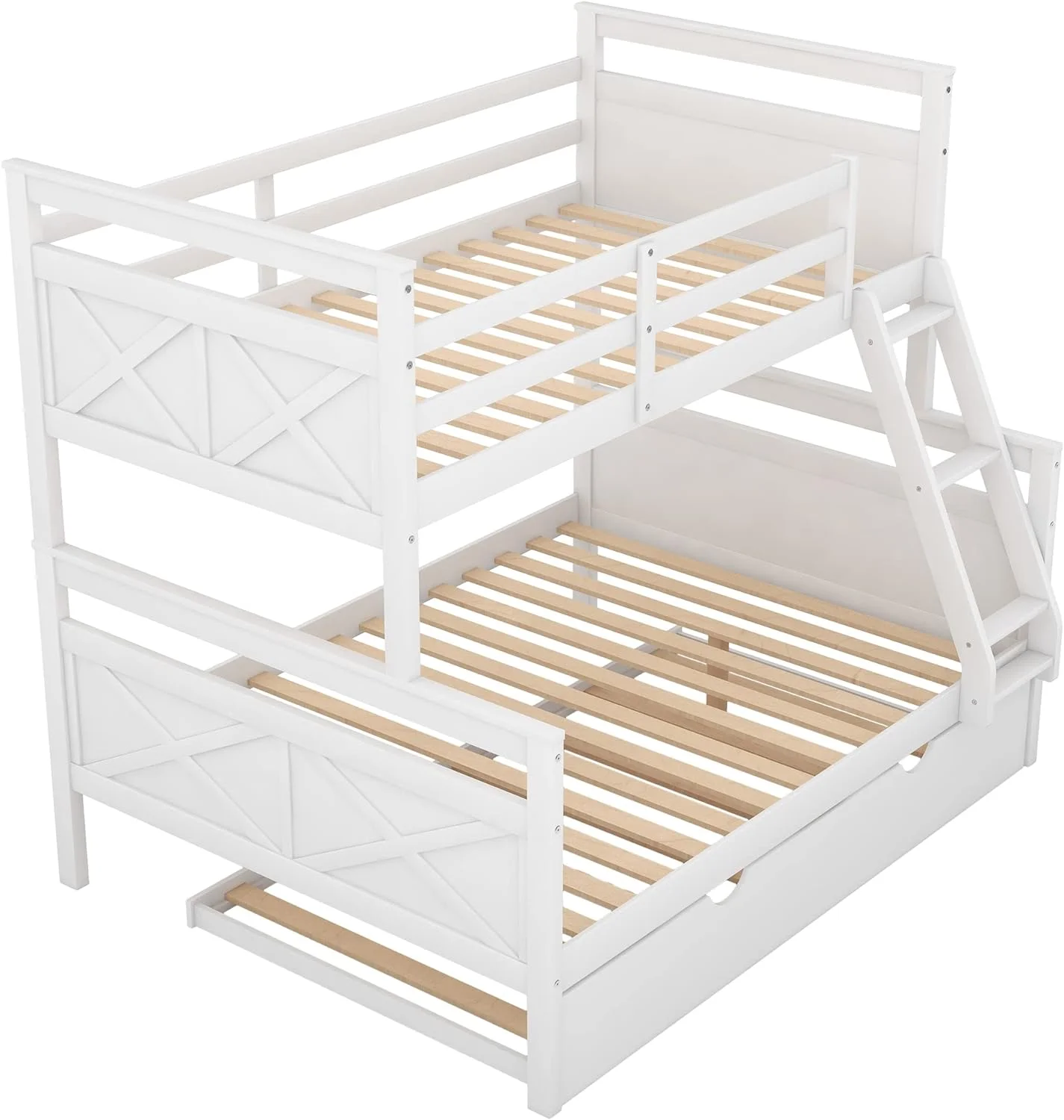 Over Bunk Bed With Trundle, Convertible Into 2 Beds,The Bunk Bed With Ladder And Safety Rails, White