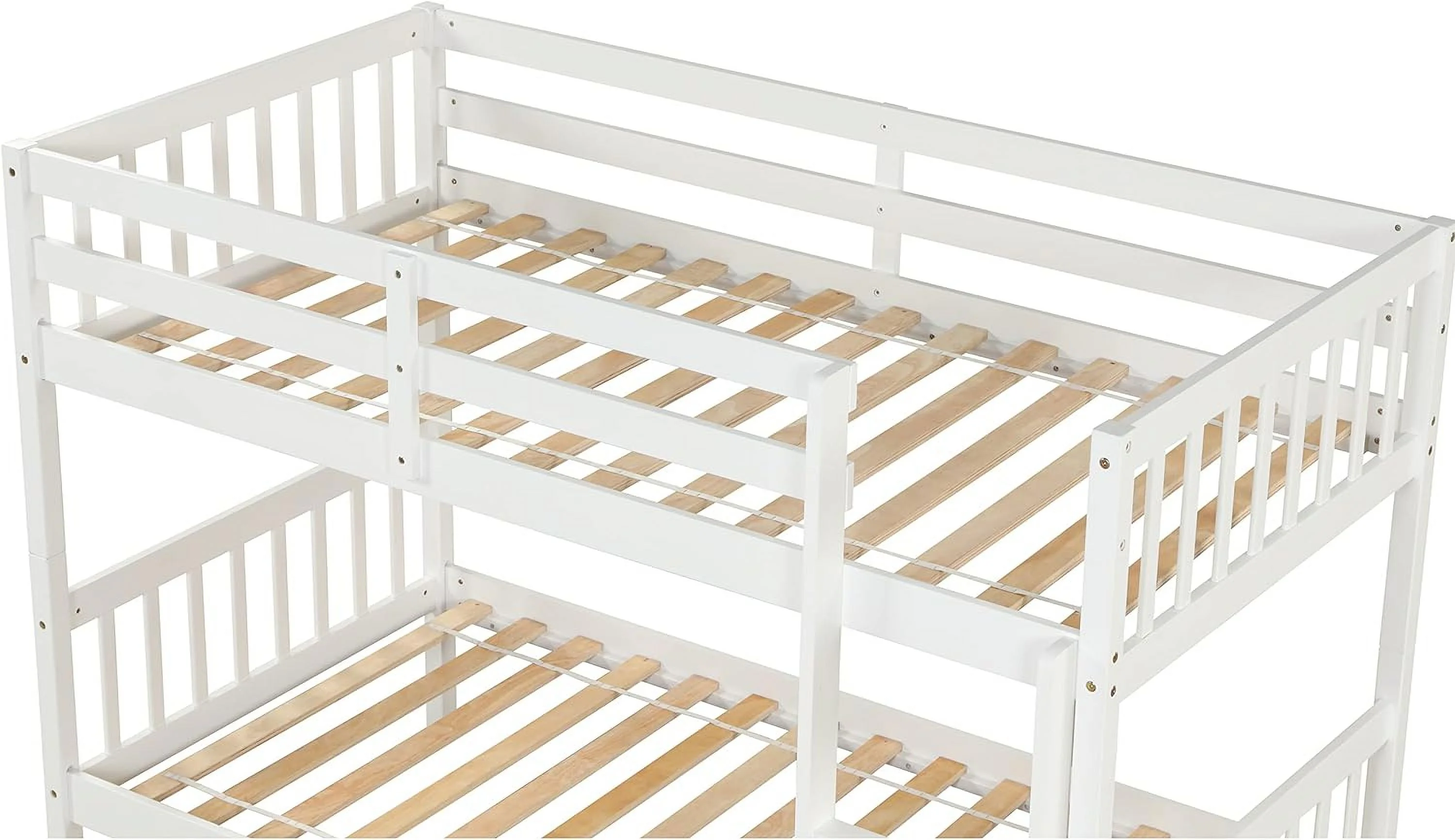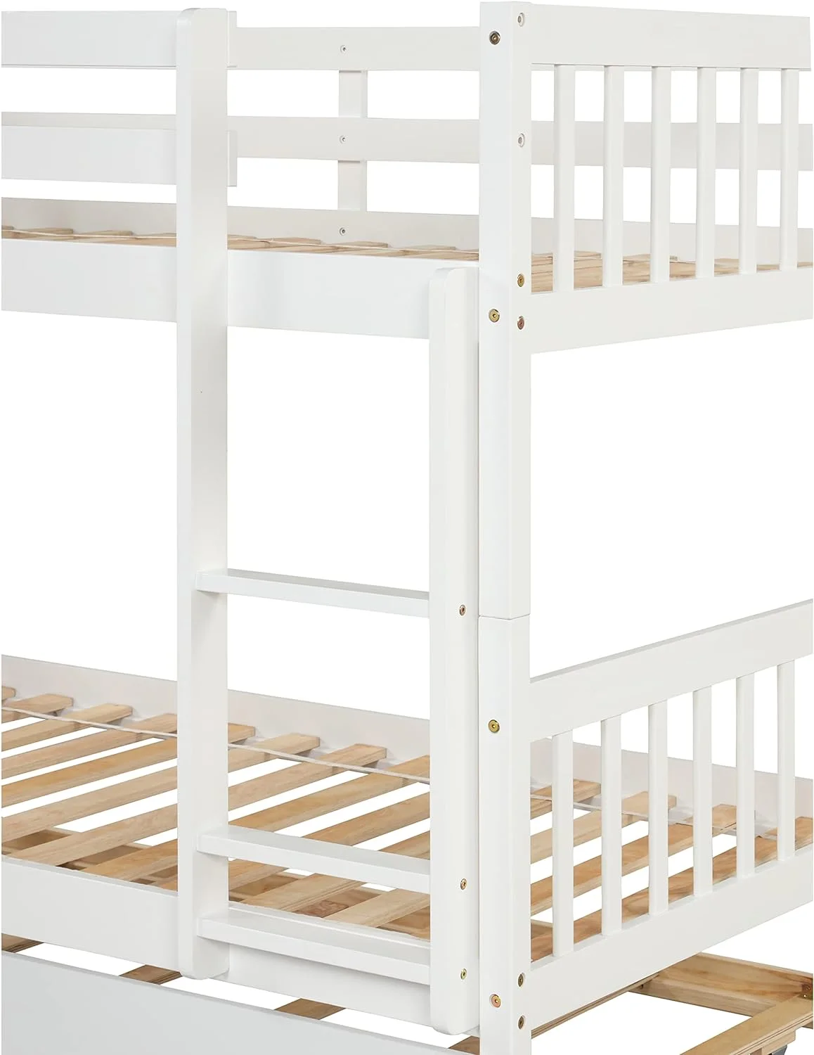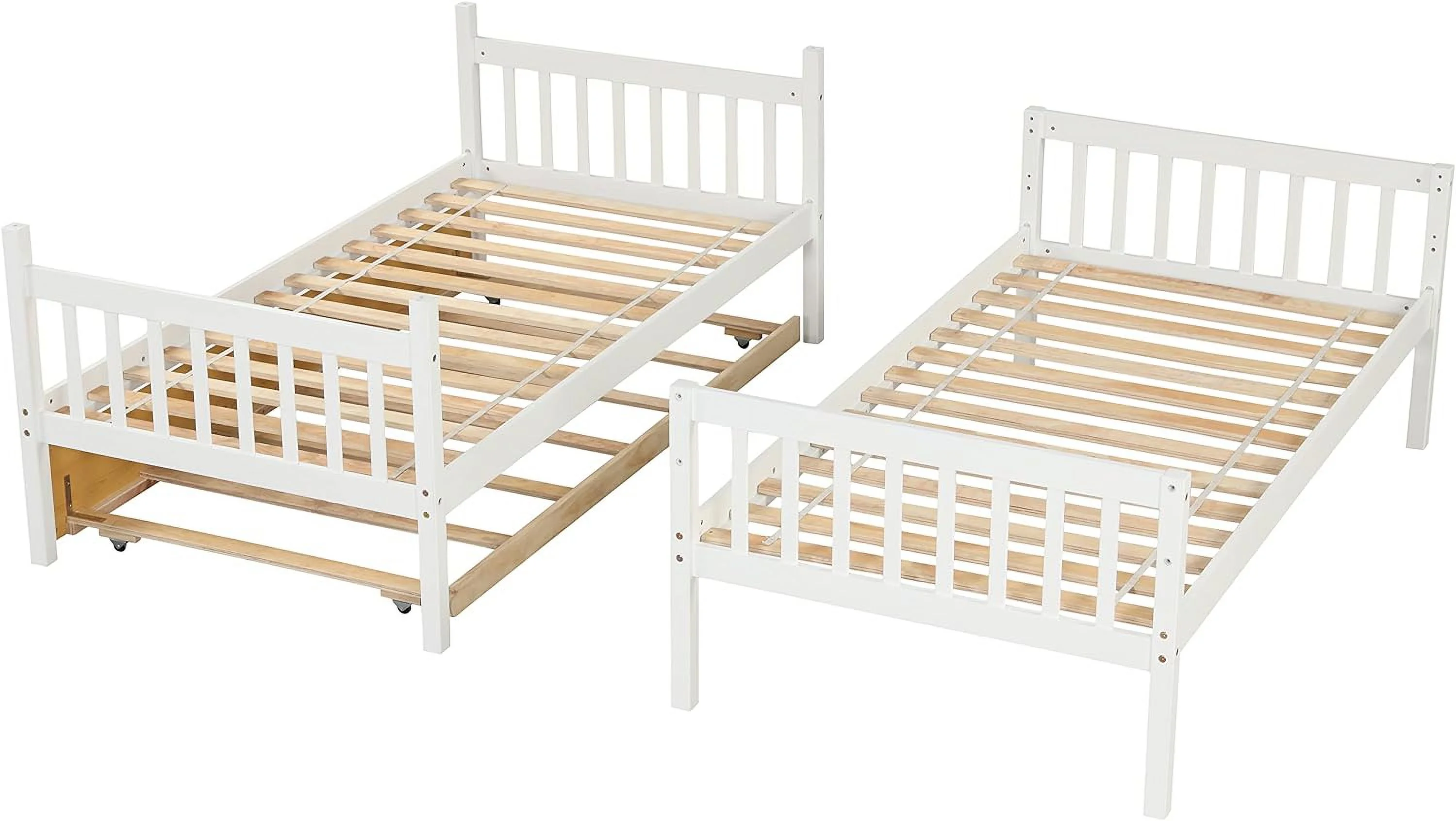 Over Bunk Bed With Trundle, Convertible Into 2 Beds,The Bunk Bed With Ladder And Safety Rails, White