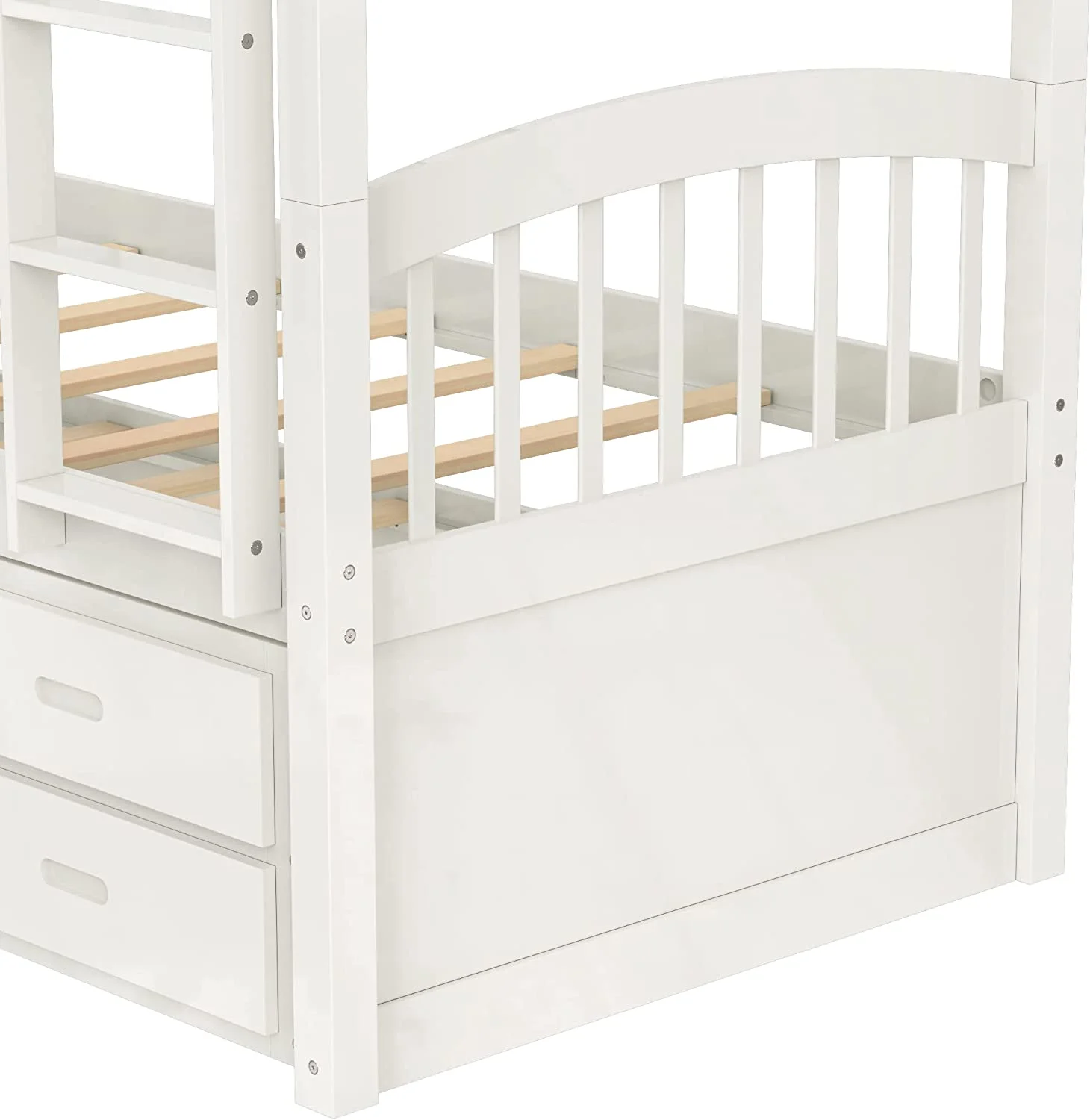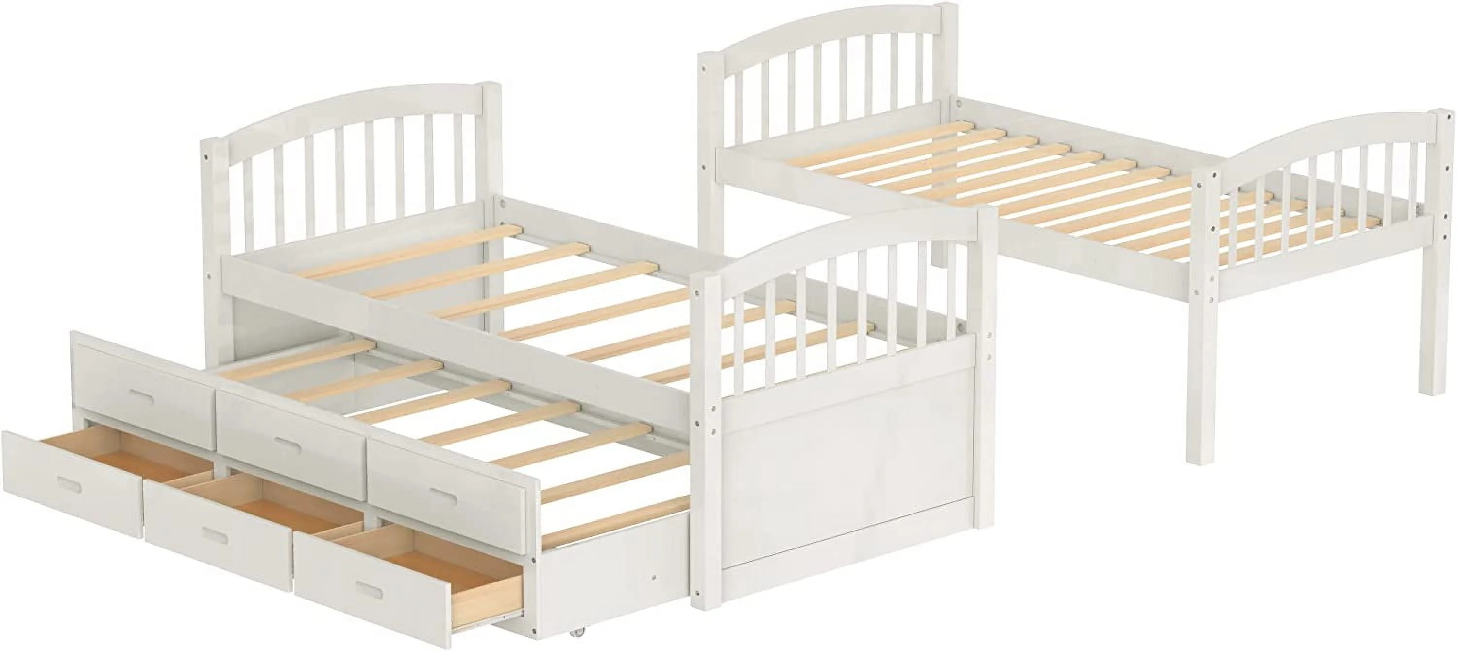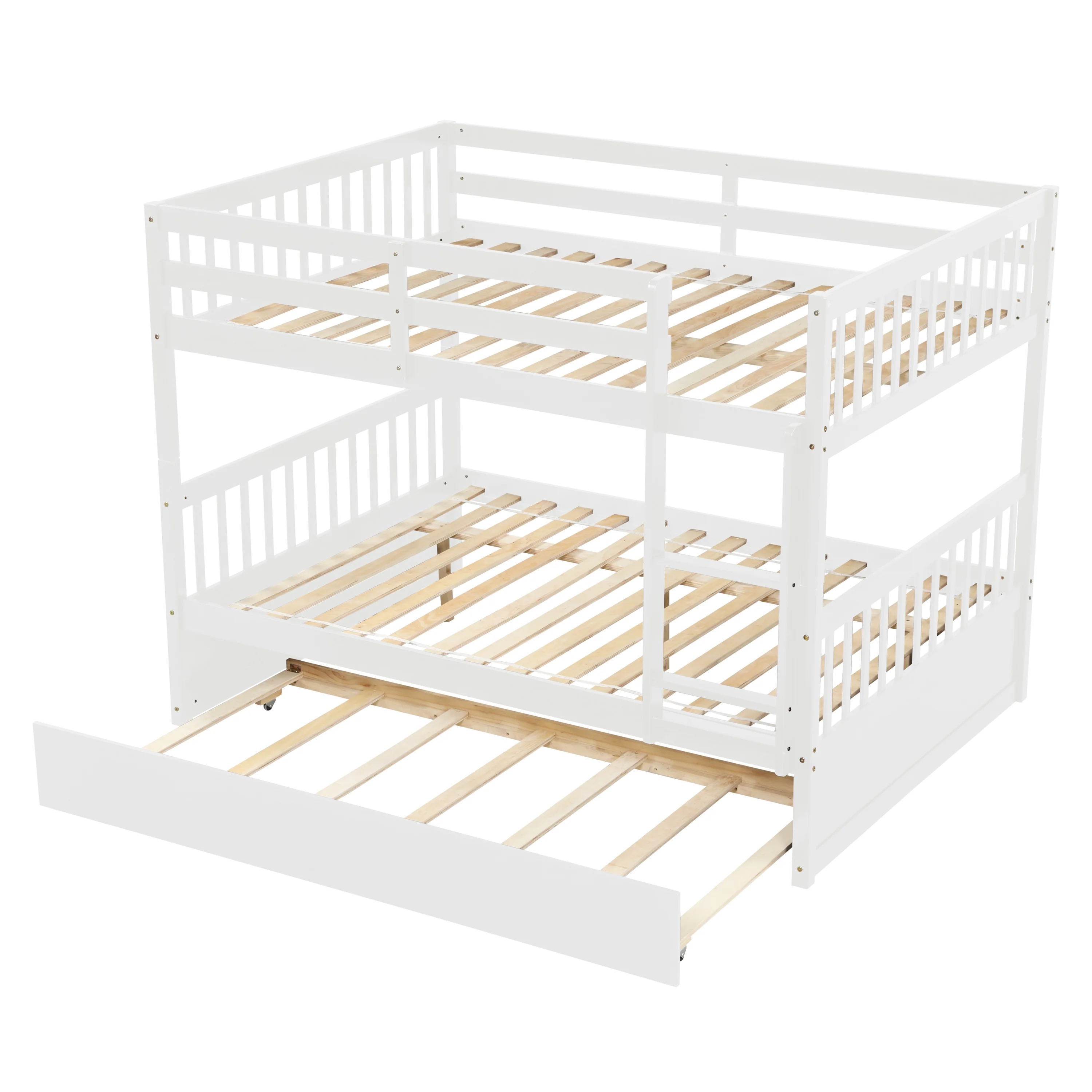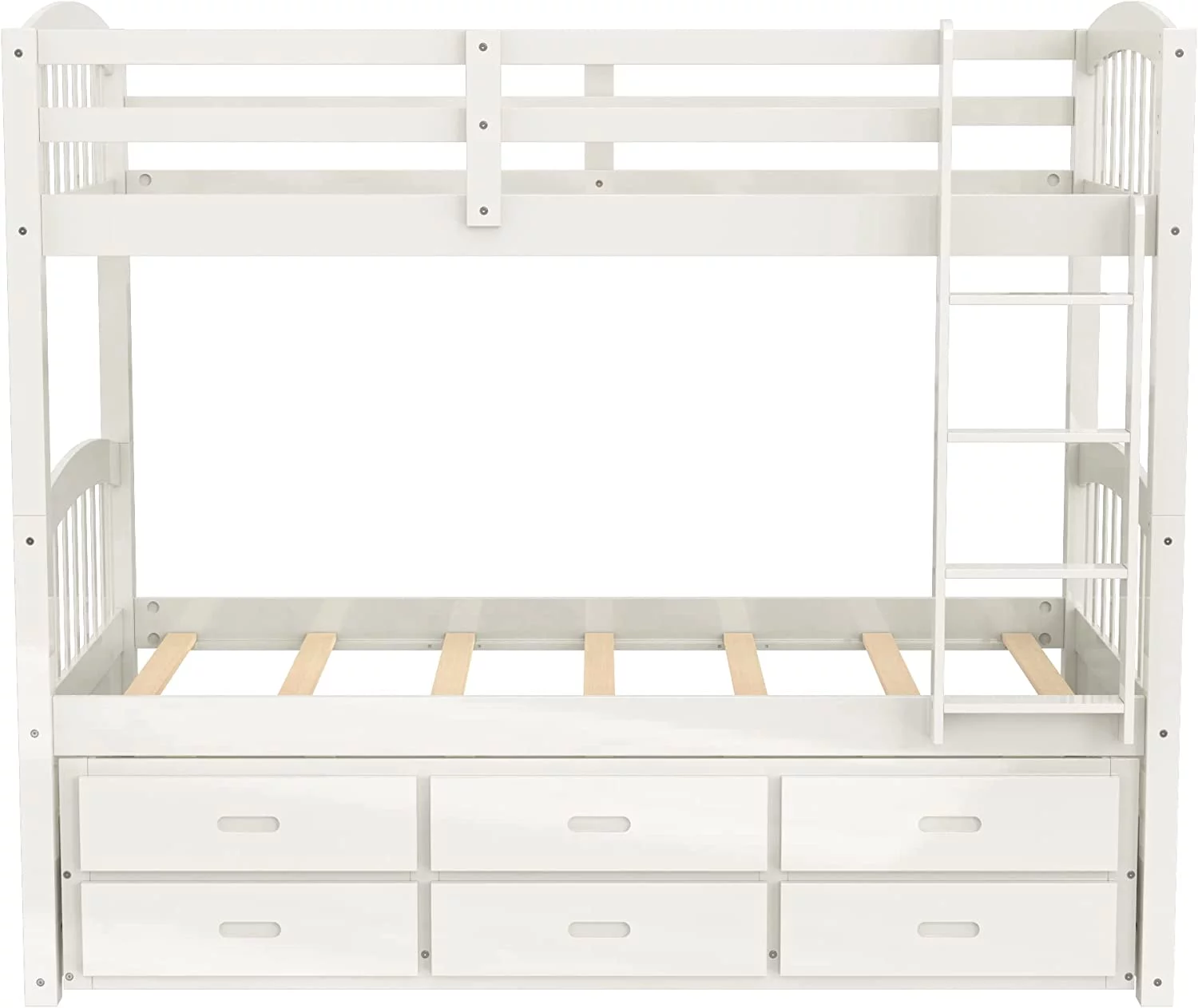 Over Bunk Bed With Trundle, Convertible Into 2 Beds,The Bunk Bed With Ladder And Safety Rails, White