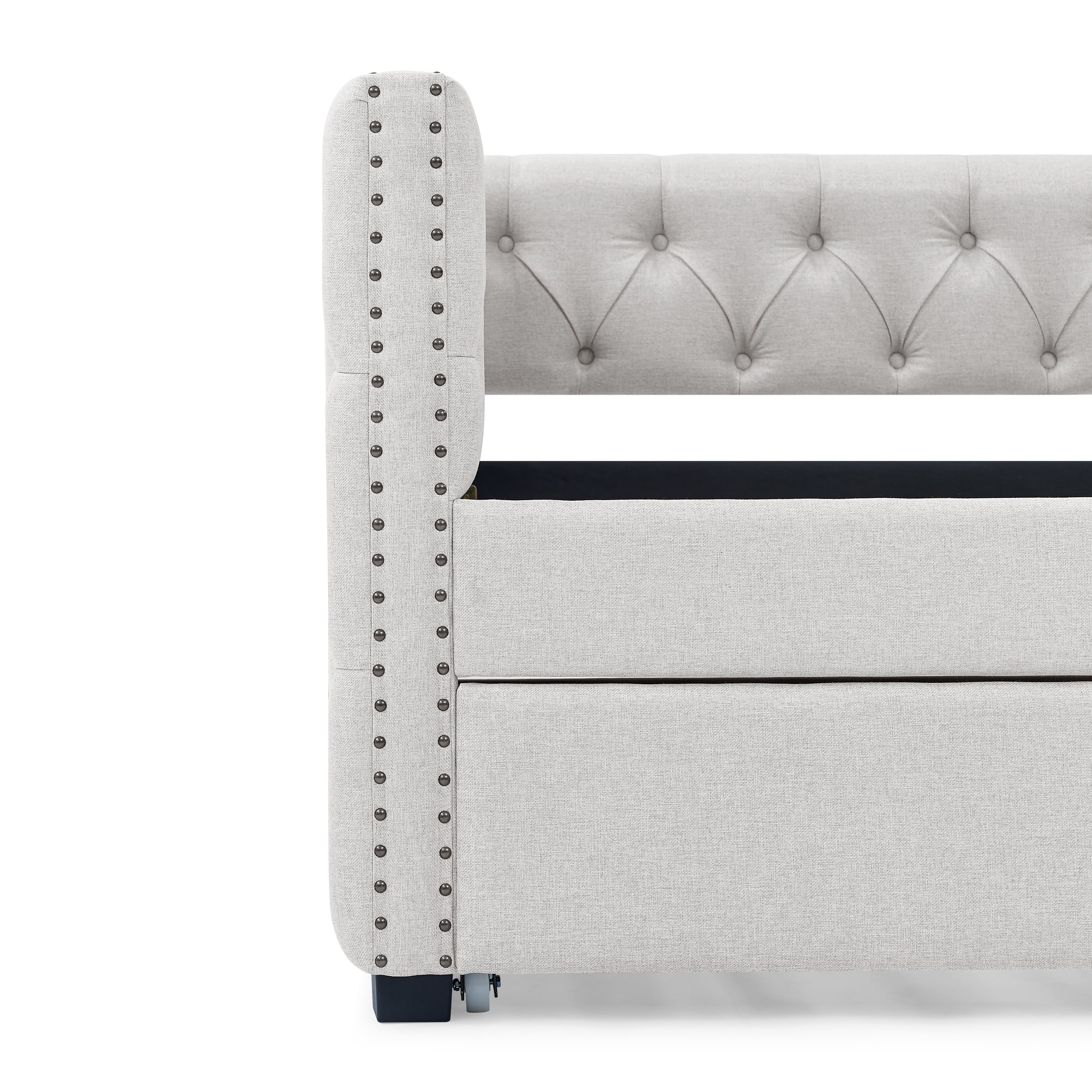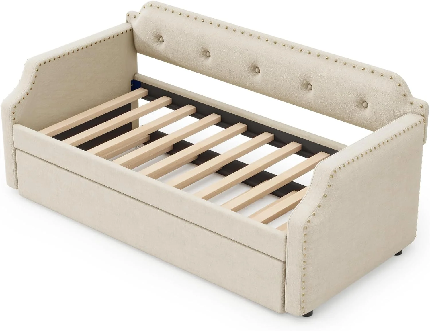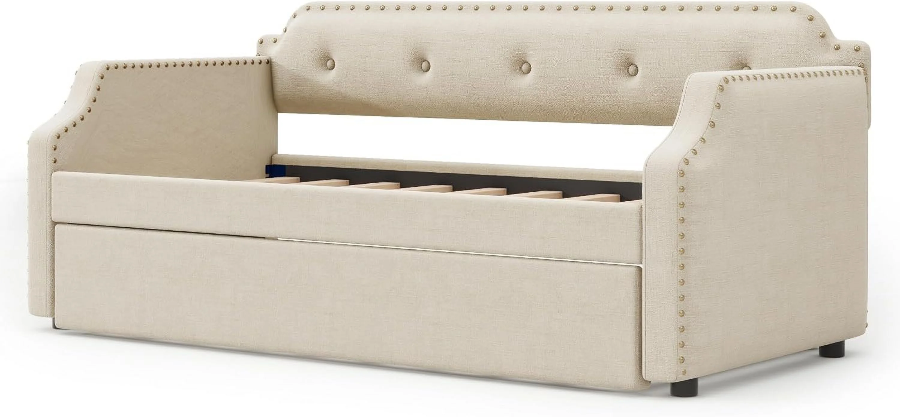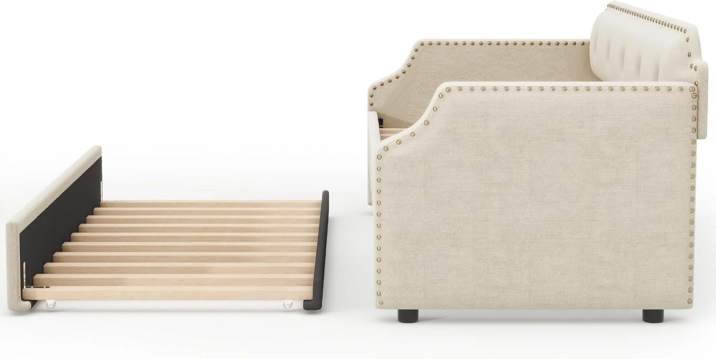 Daybed Wih rudle, Upholsered Wood Daybed Wih rudle, Size rudle Daybed Sofa Bed For Bedroom Livig Room,o Box Sprig eeded,Beige