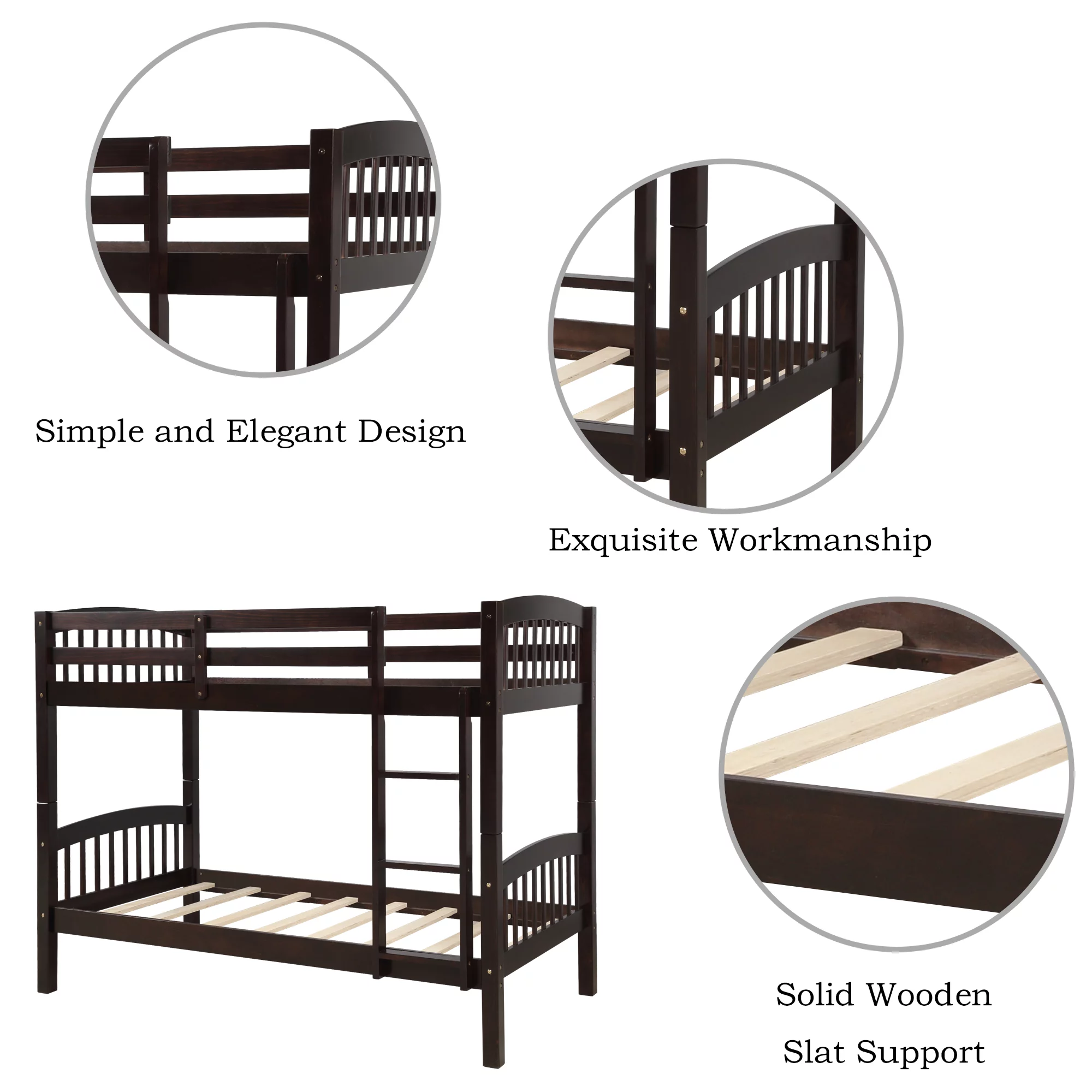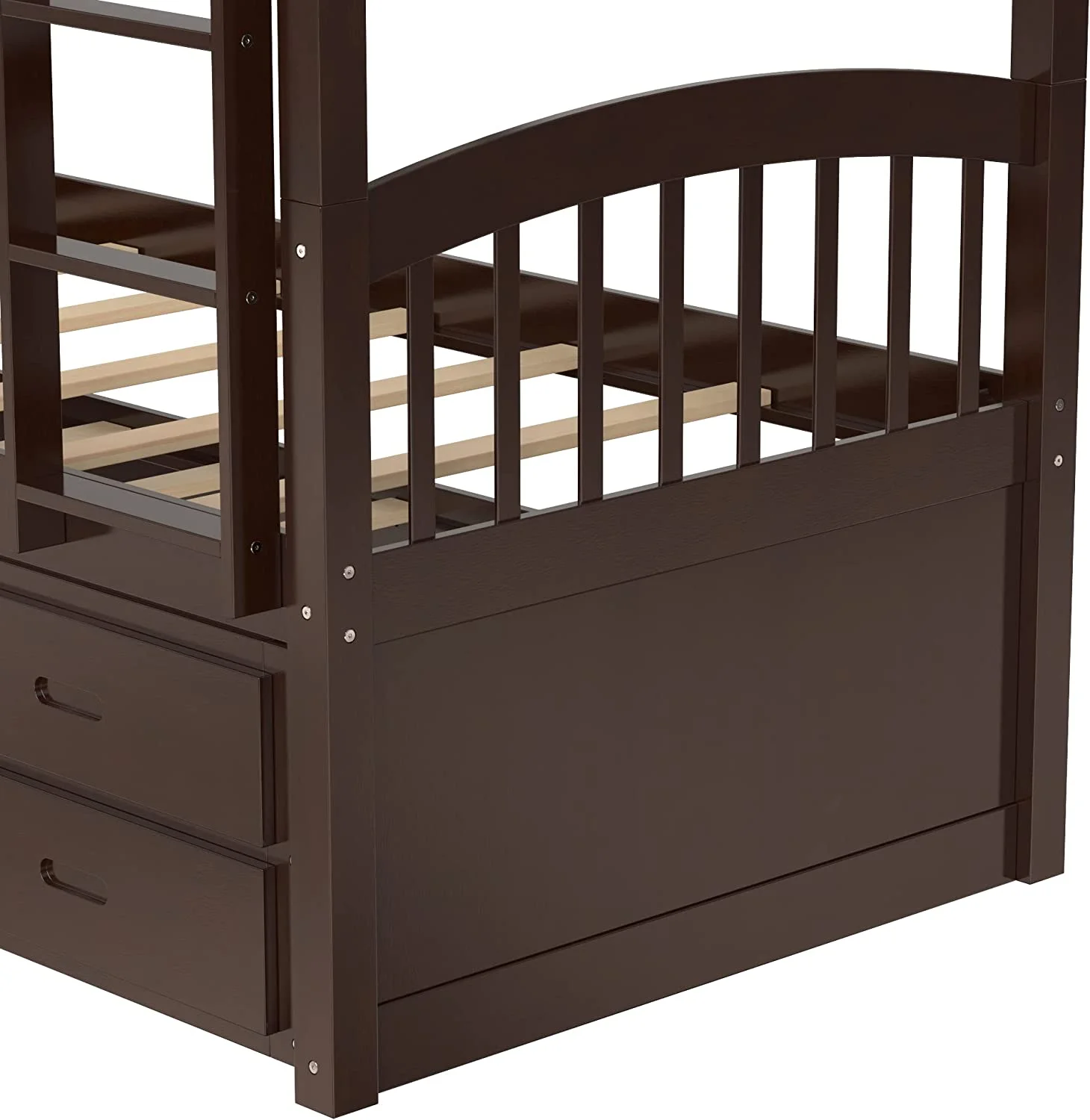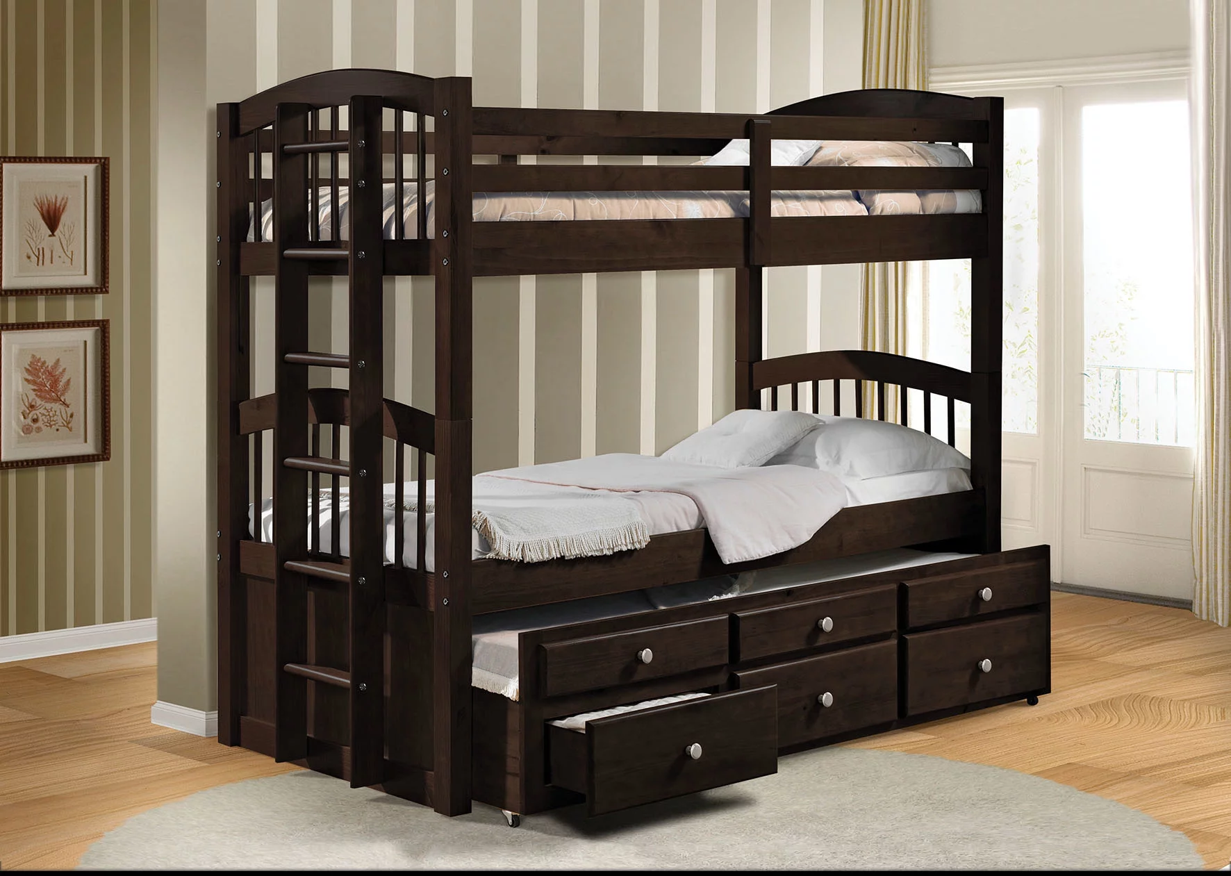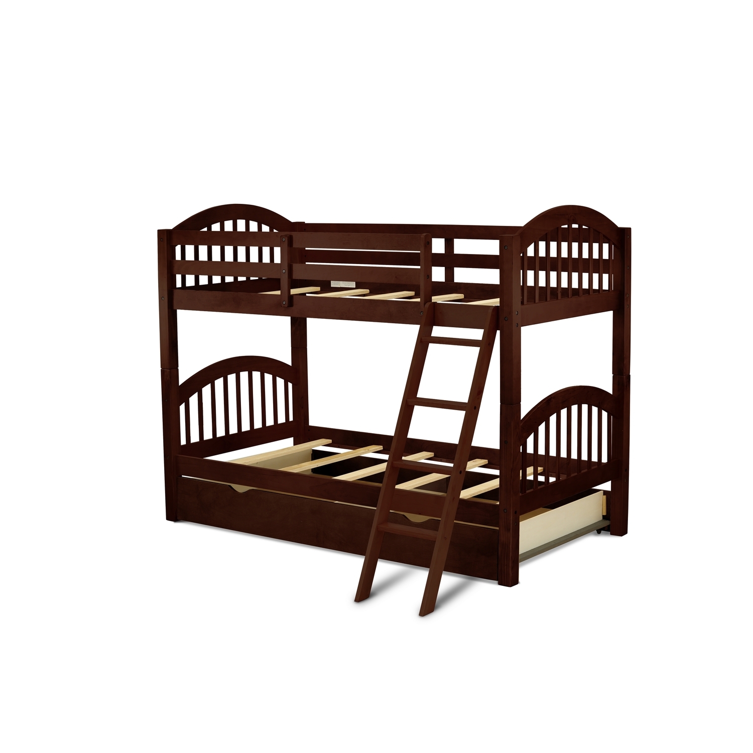 HomeStock Island Interiors Twin Bunk Bed In Java Finish With Convertible Trundle & Drawer