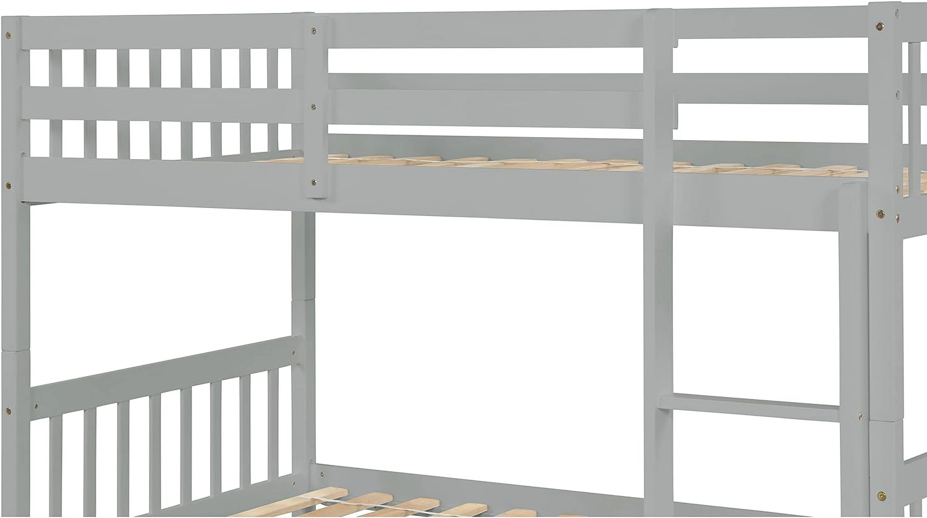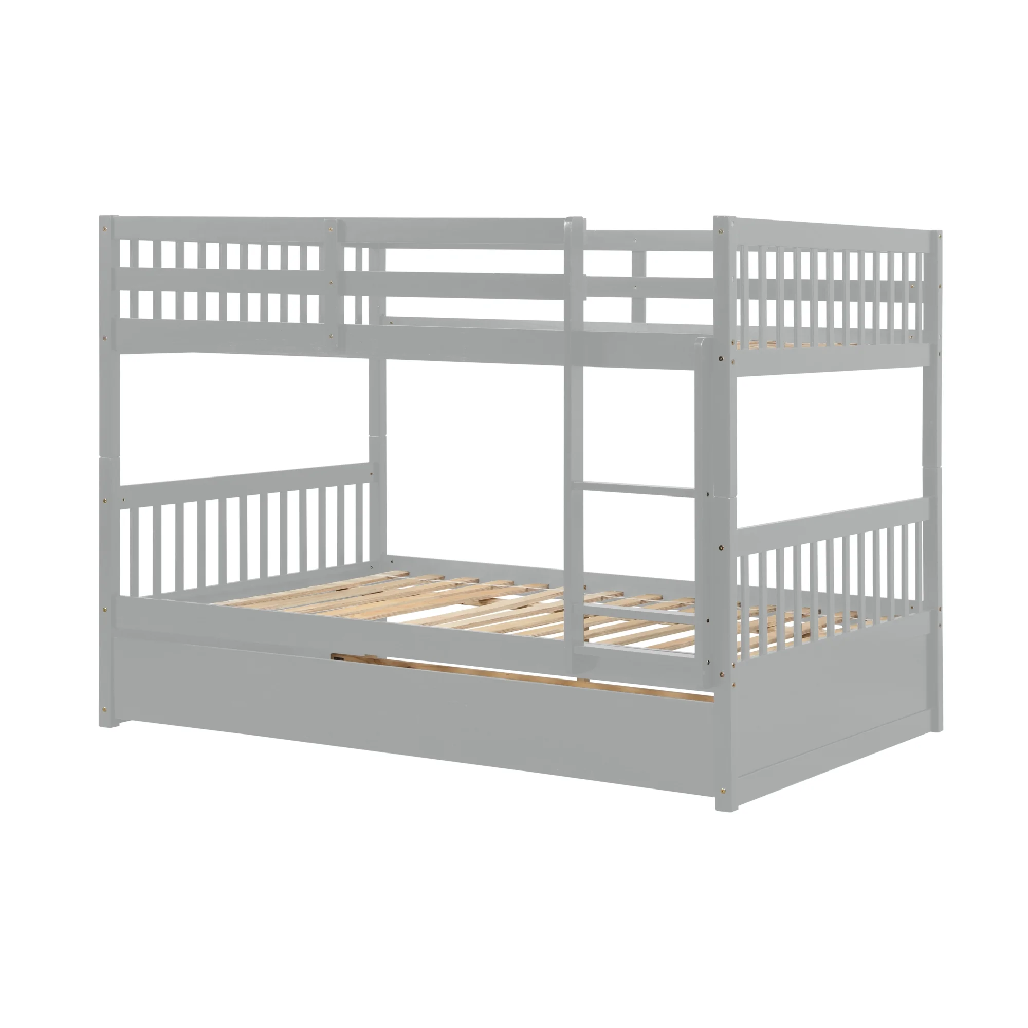 Wooden Bunk Bed With Size Trundle, Ladder And Safety Guardrail, Convertible Into 2 Separated Beds, Grey