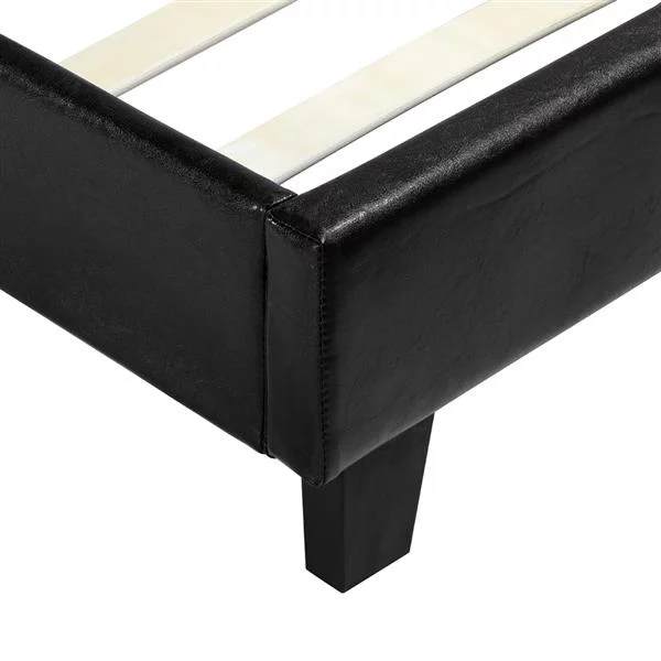 Wulawindy Faux Leather Upholstered Platform Bed Frame Black With Wooden Slats Twin59.8.X80.7x35 Inches