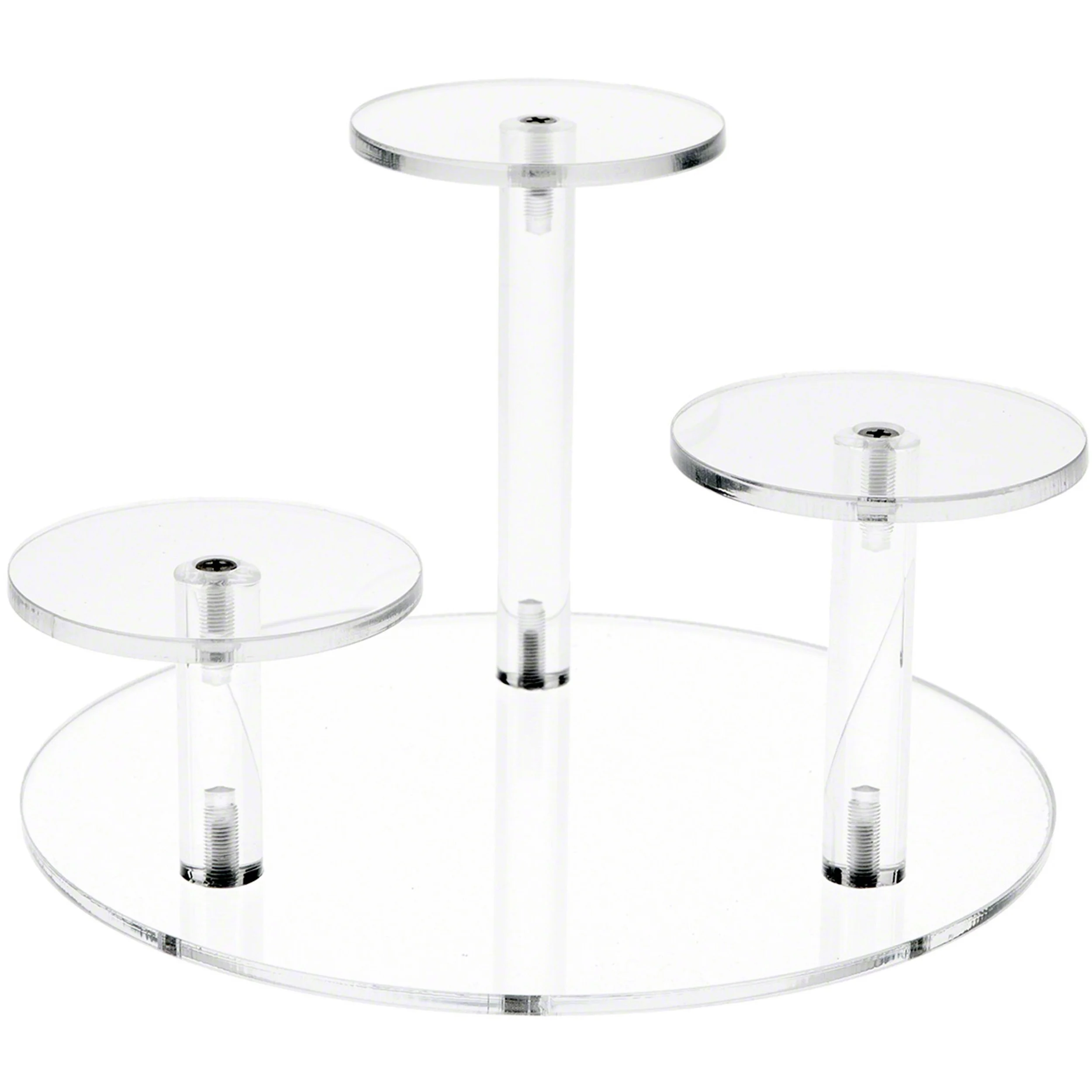Plymor Clear Acrylic Round 8" Base Riser with 3 Round 3" Display Pedestals, 5" High (3 Pack)