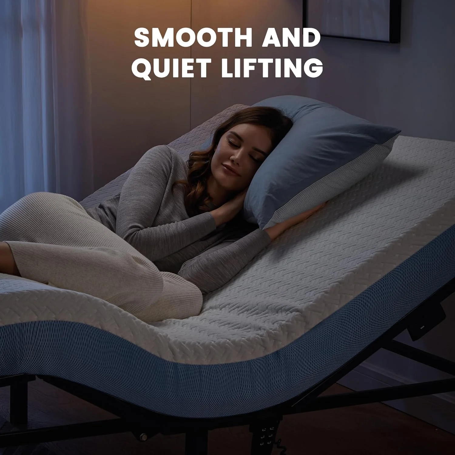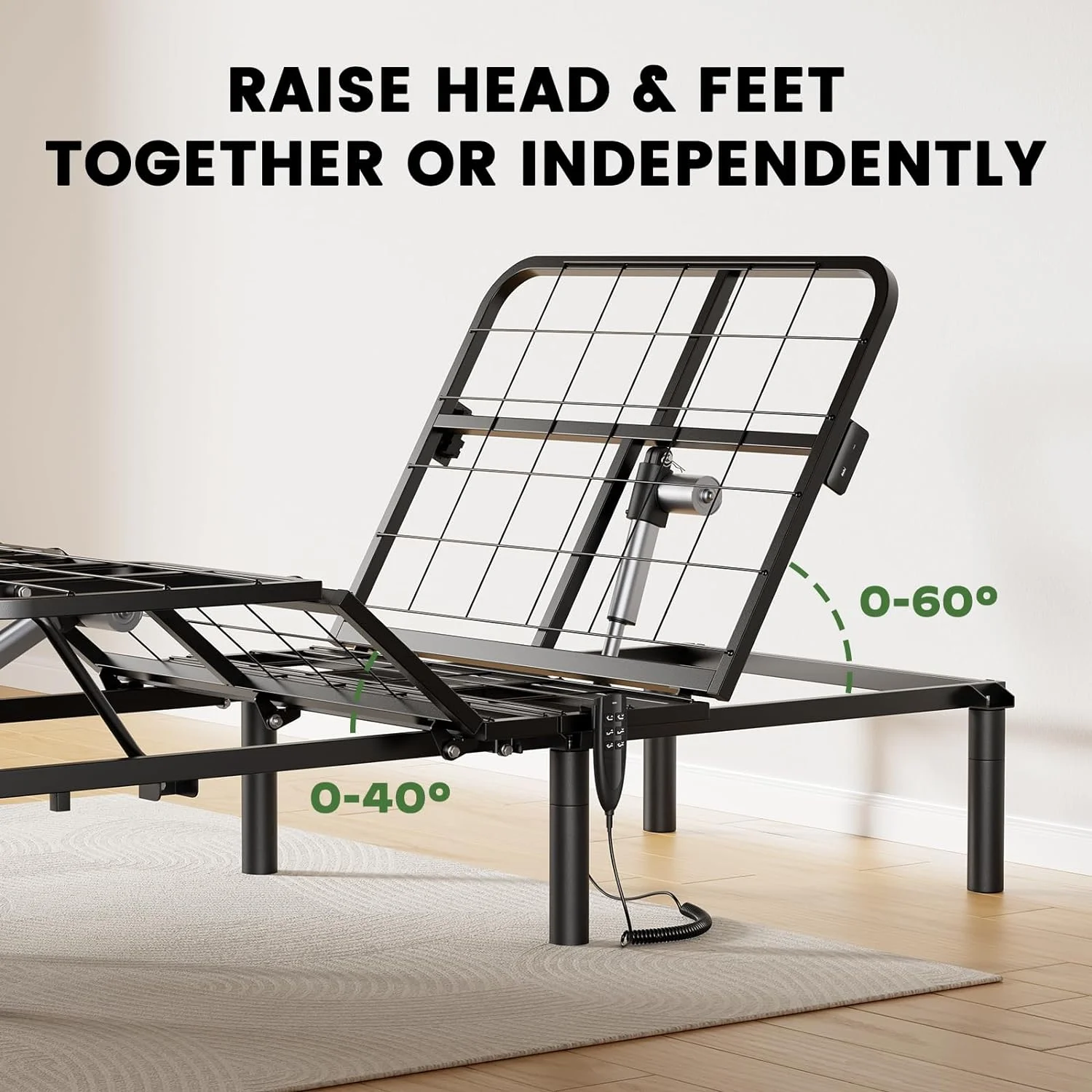 Denton Queen Size Platform Bed Frame with 4 Solid Wood Legs & 2 Extra Center Legs - Walnut