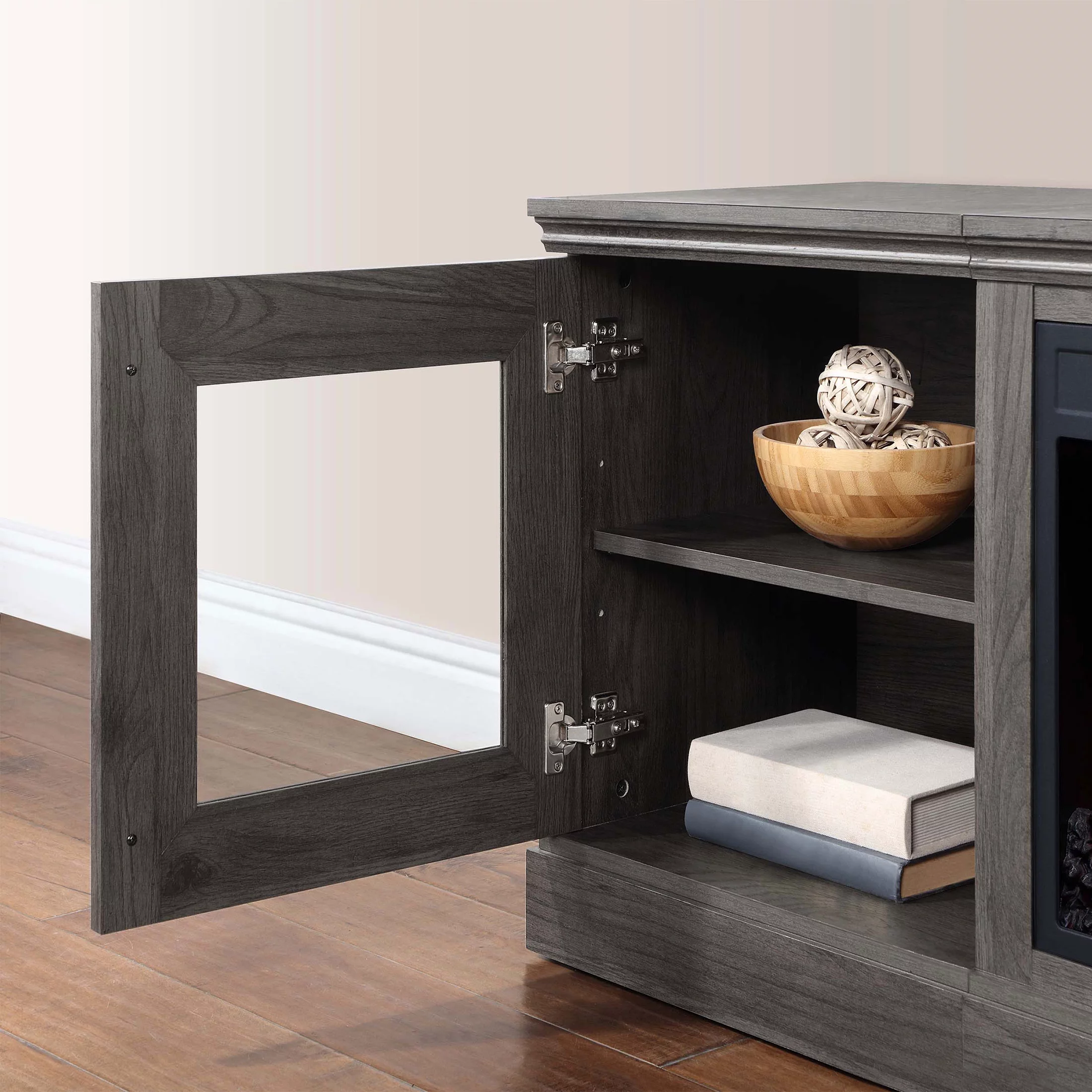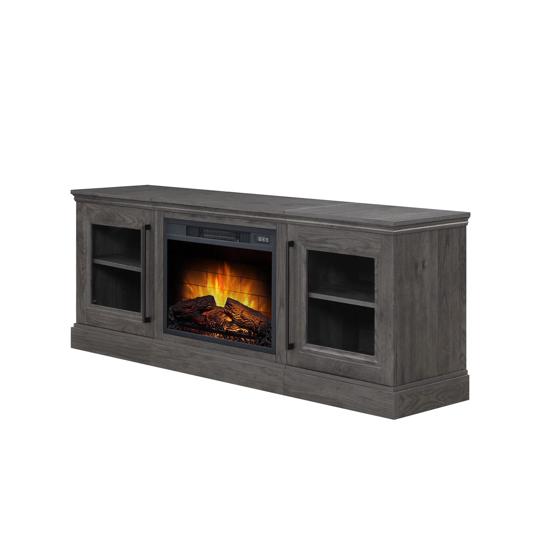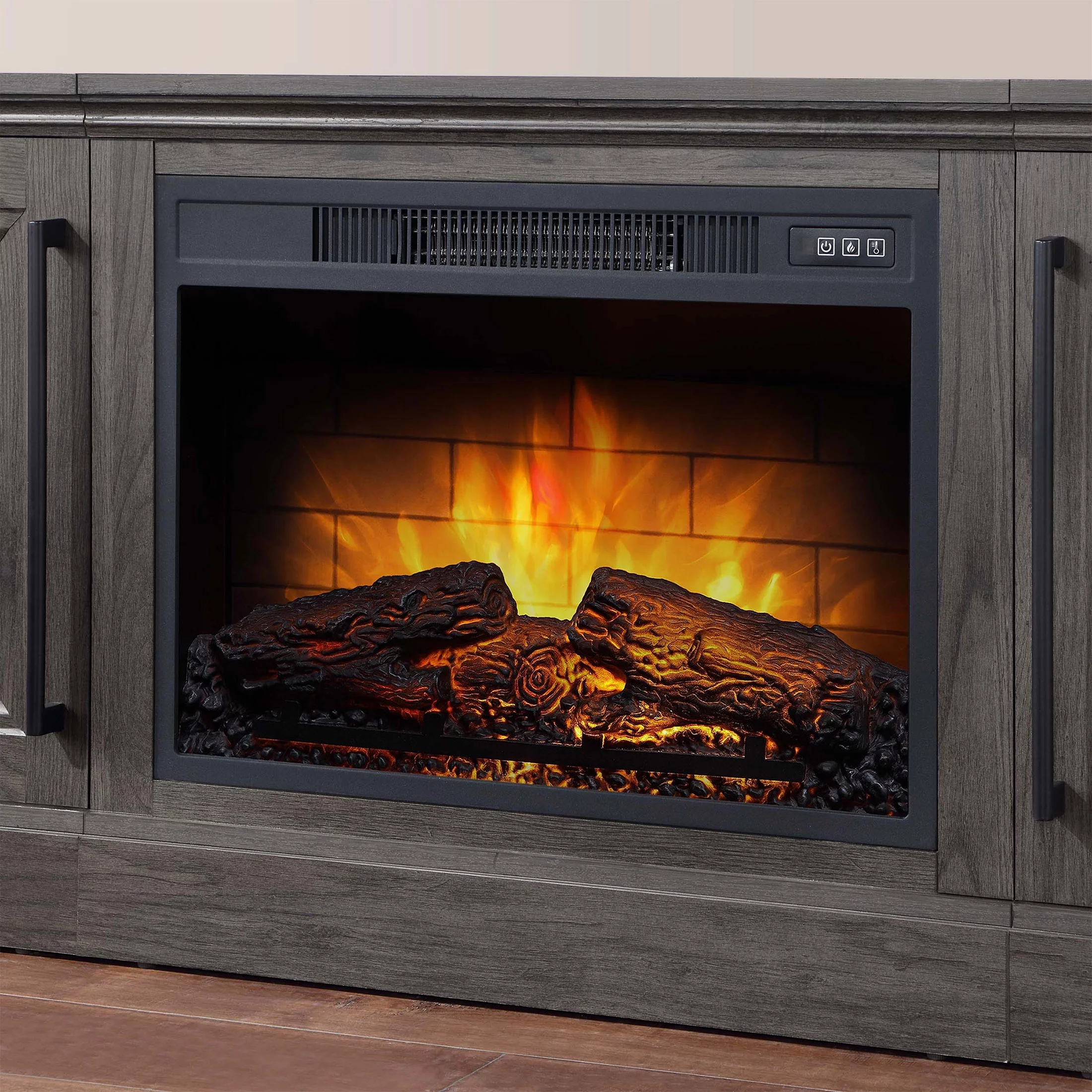 Whalen Furniture Quantum Flame Media Fireplace TV Stand for TV’s up to 75”, Brown Ash Finish