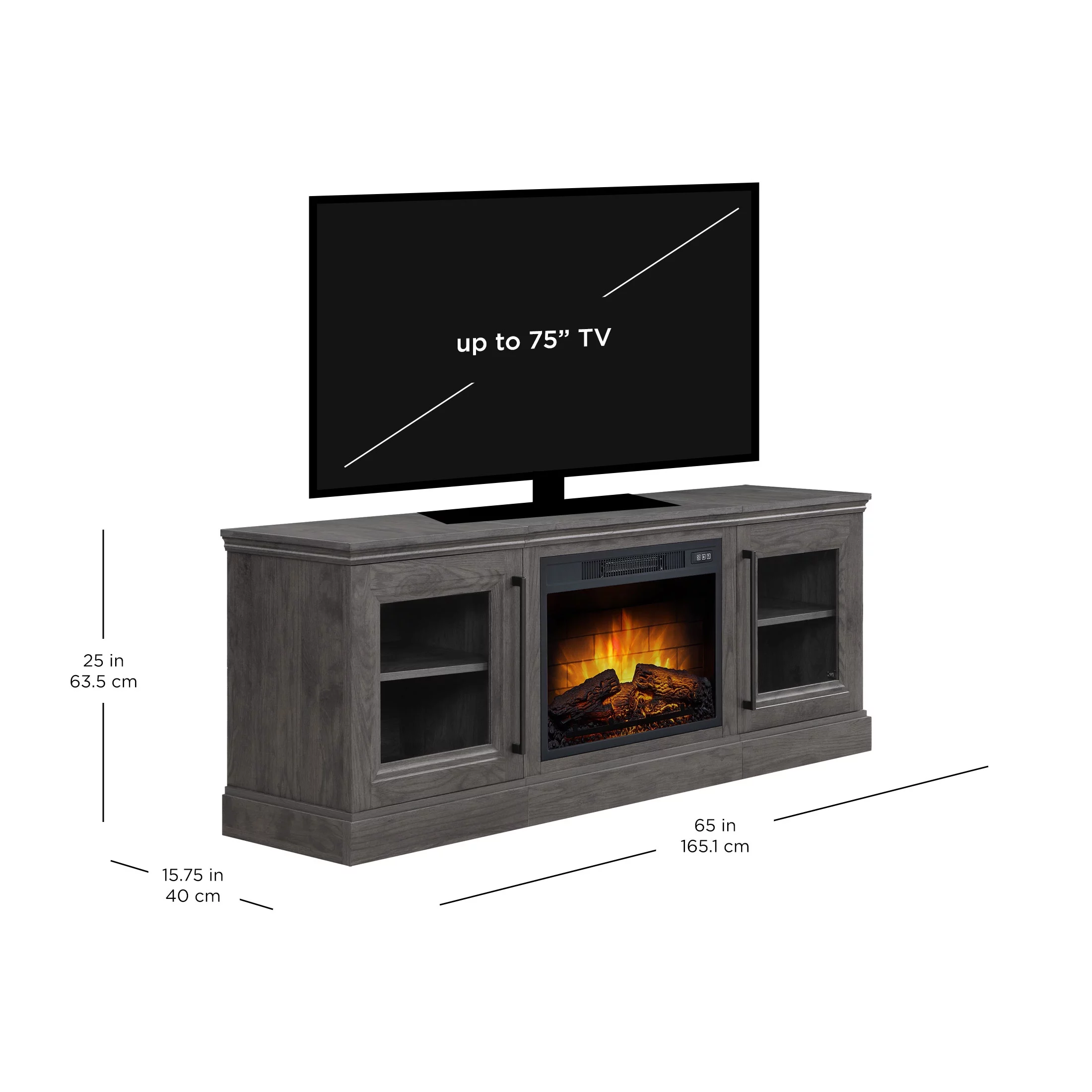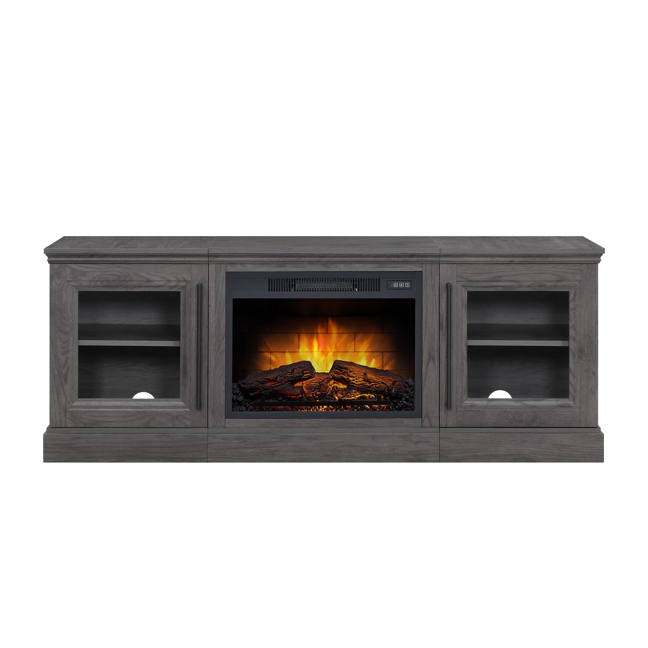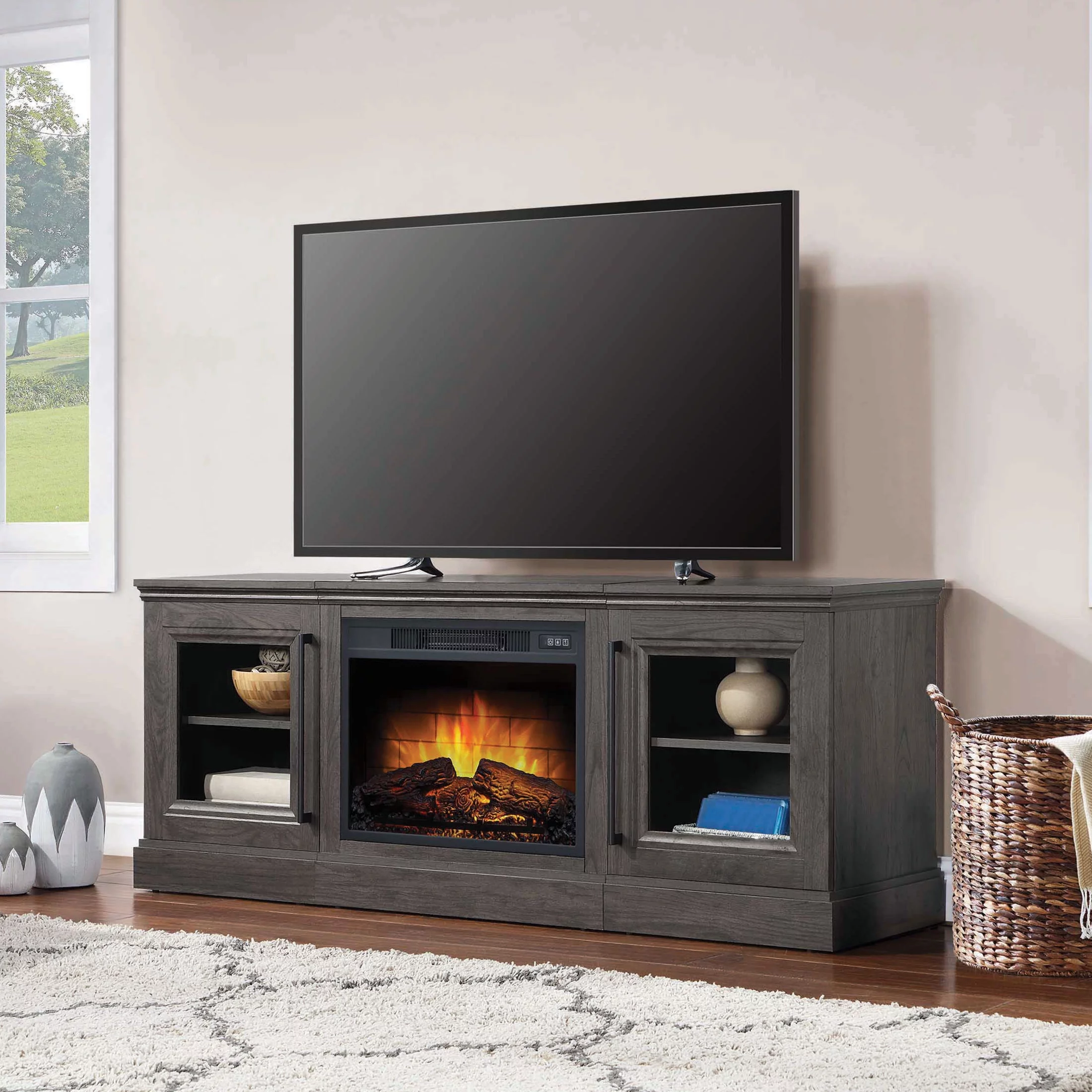 Whalen Furniture Quantum Flame Media Fireplace TV Stand for TV’s up to 75”, Brown Ash Finish