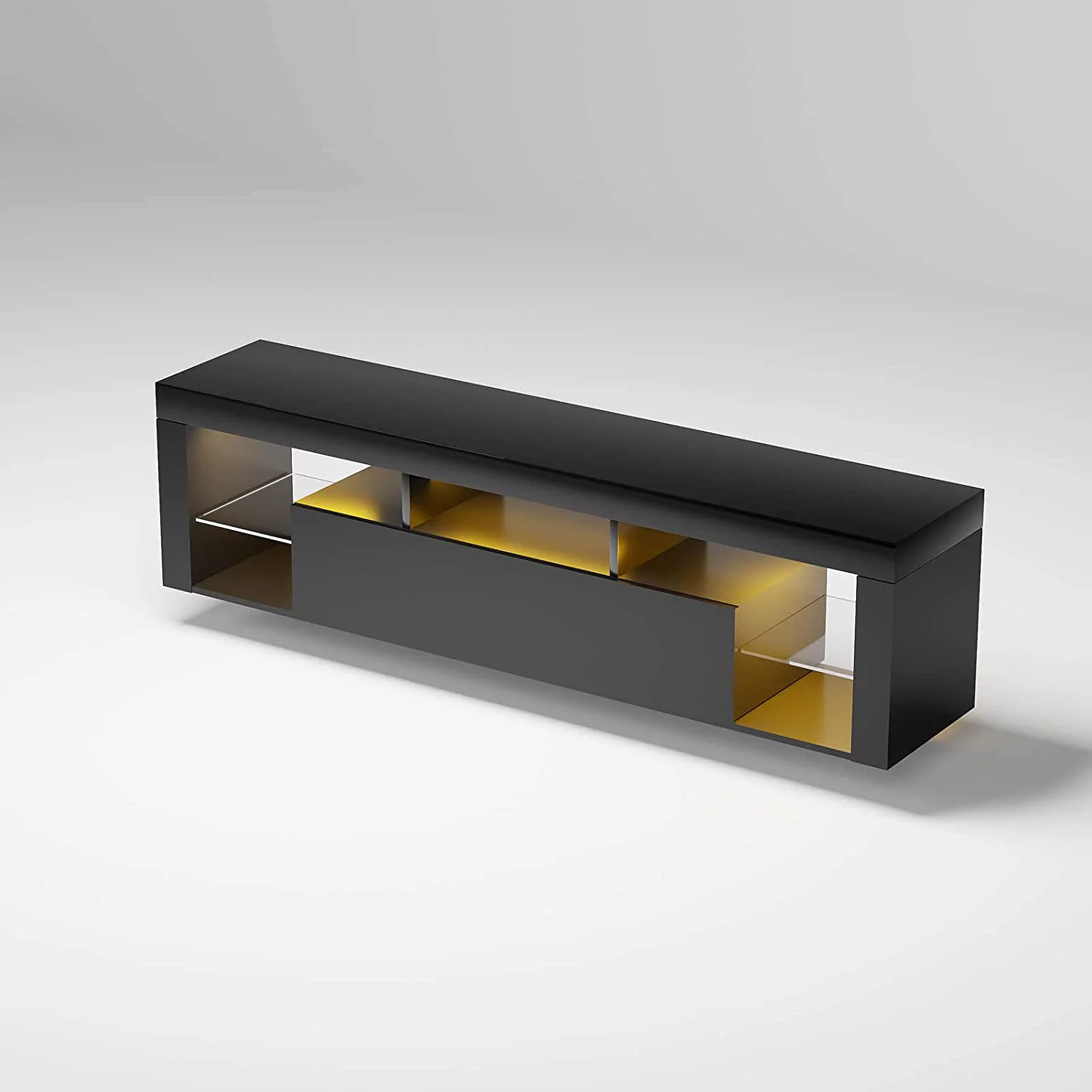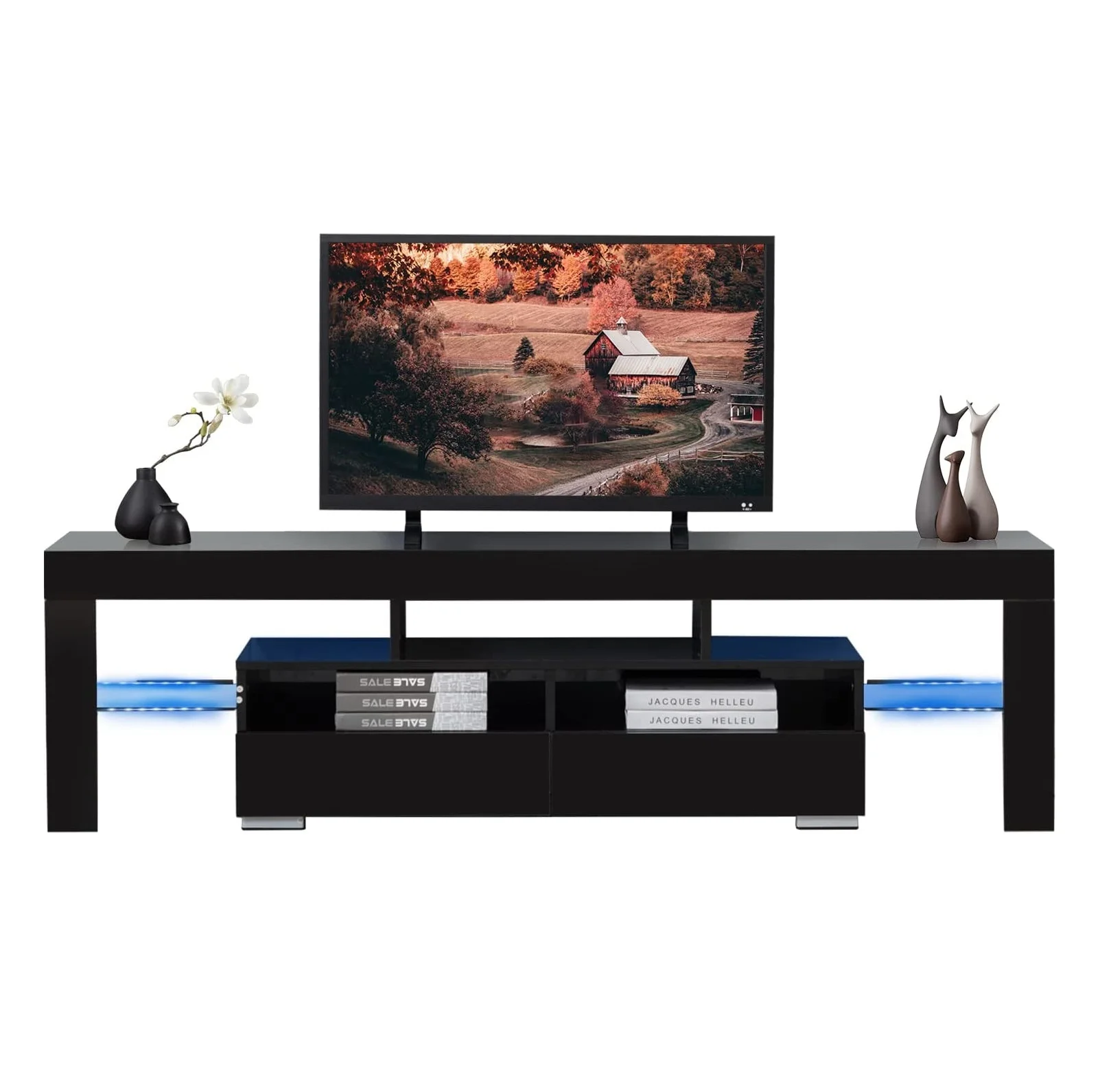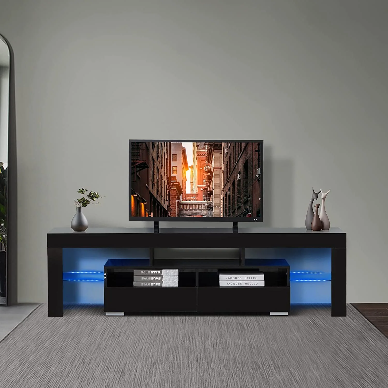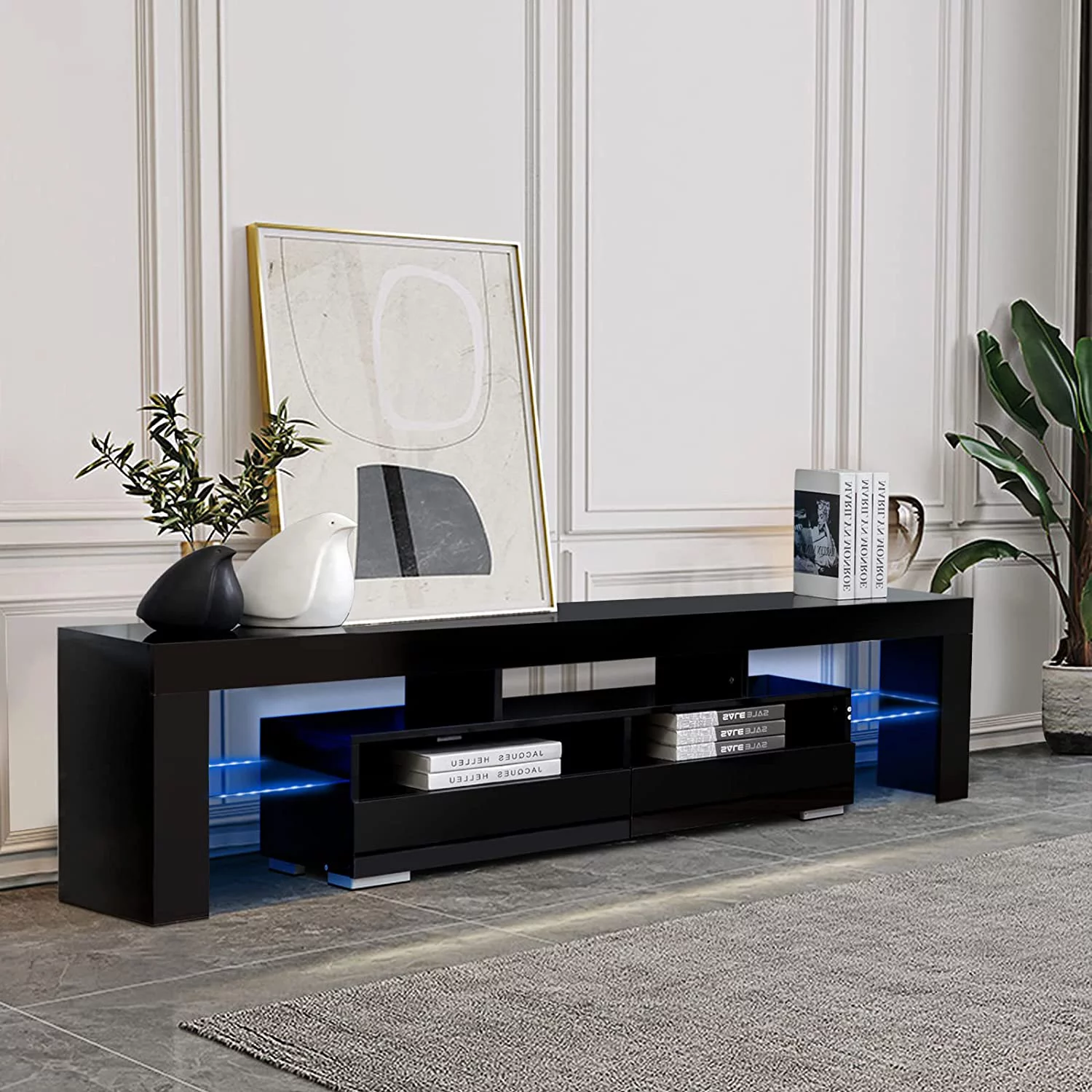 Bonzy Home High Glossy TV Stand for 70 Inch TVs with LED Light, Modern LED TV Unit Media Console with Storage, Black