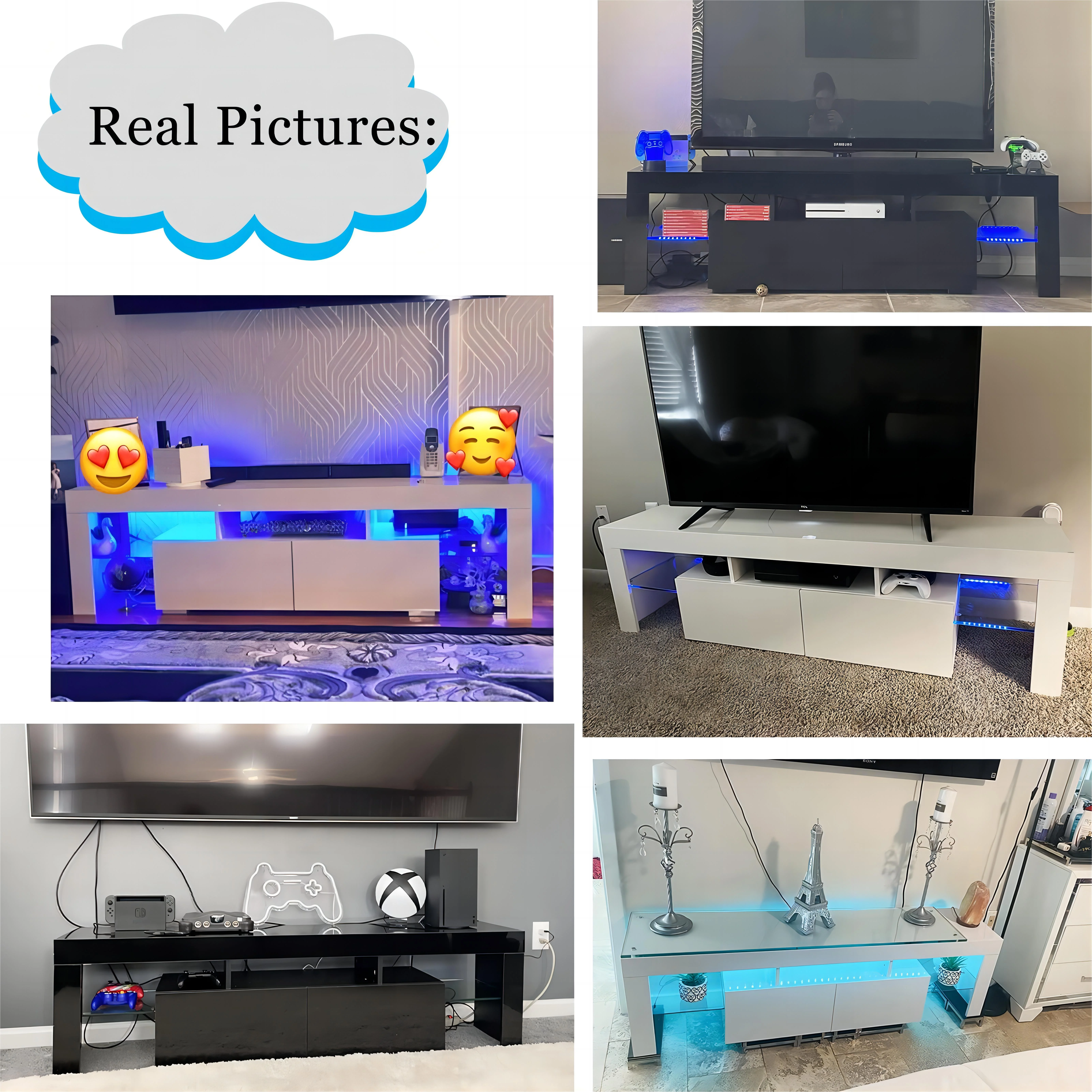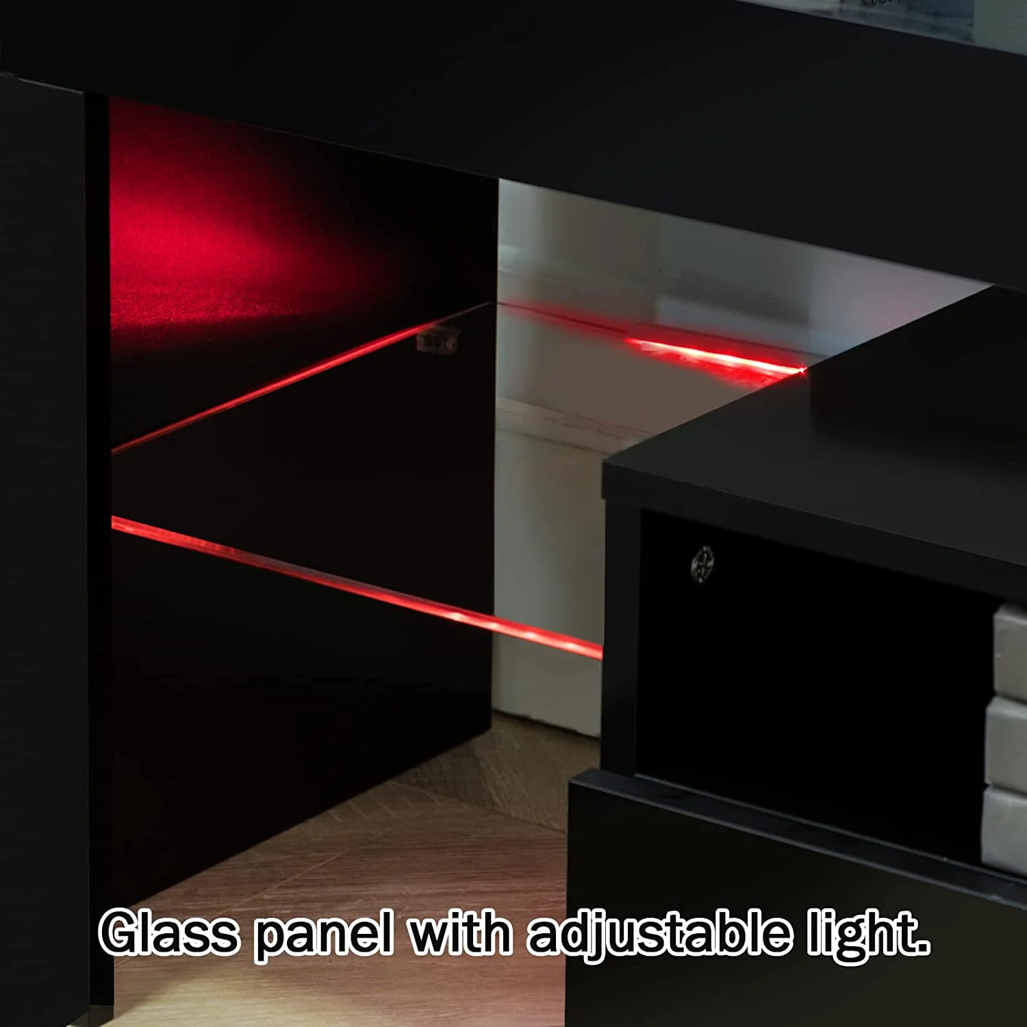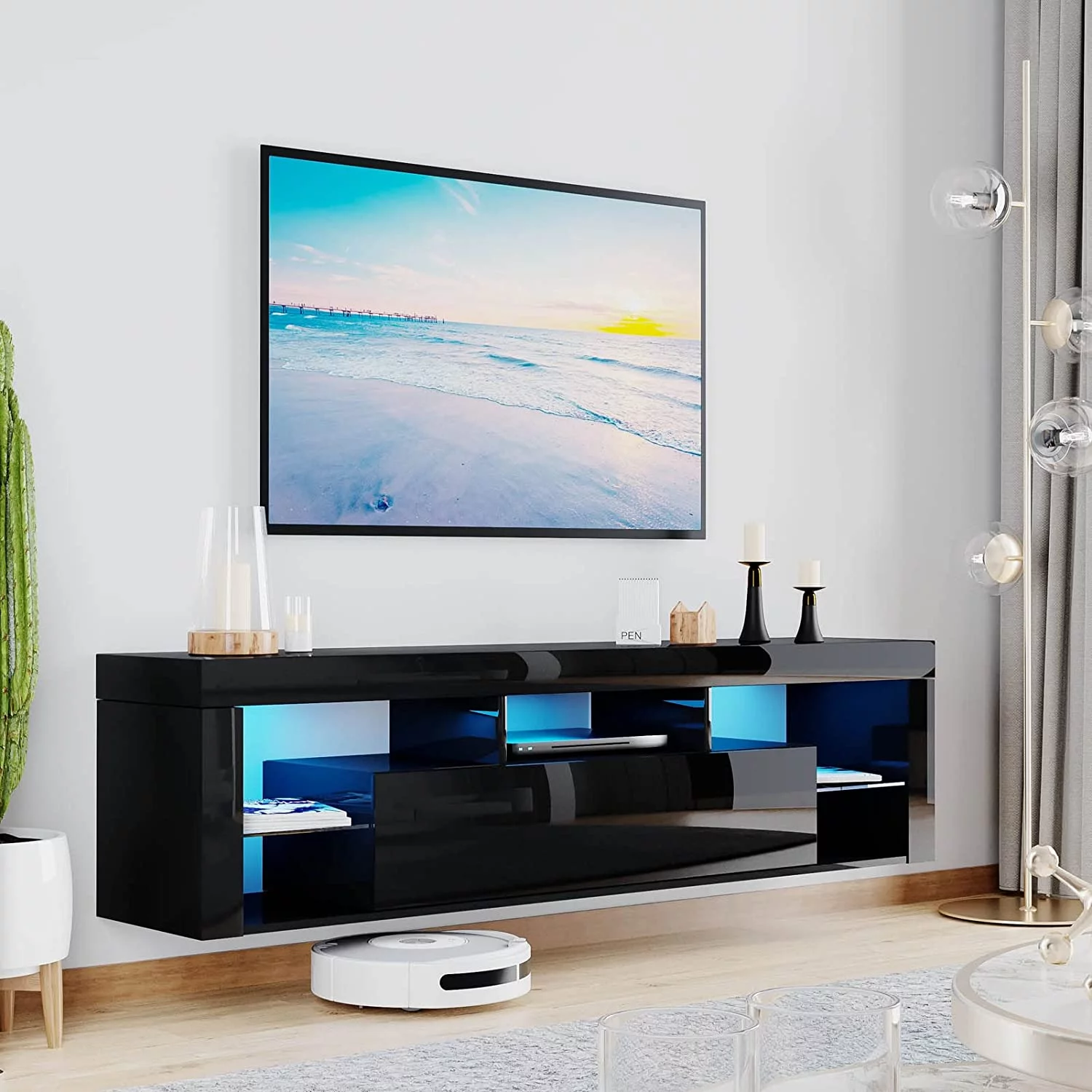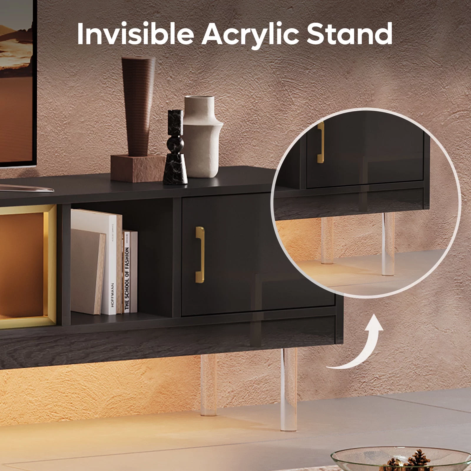 Bonzy Home High Glossy TV Stand for 70 Inch TVs with LED Light, Modern LED TV Unit Media Console with Storage, Black