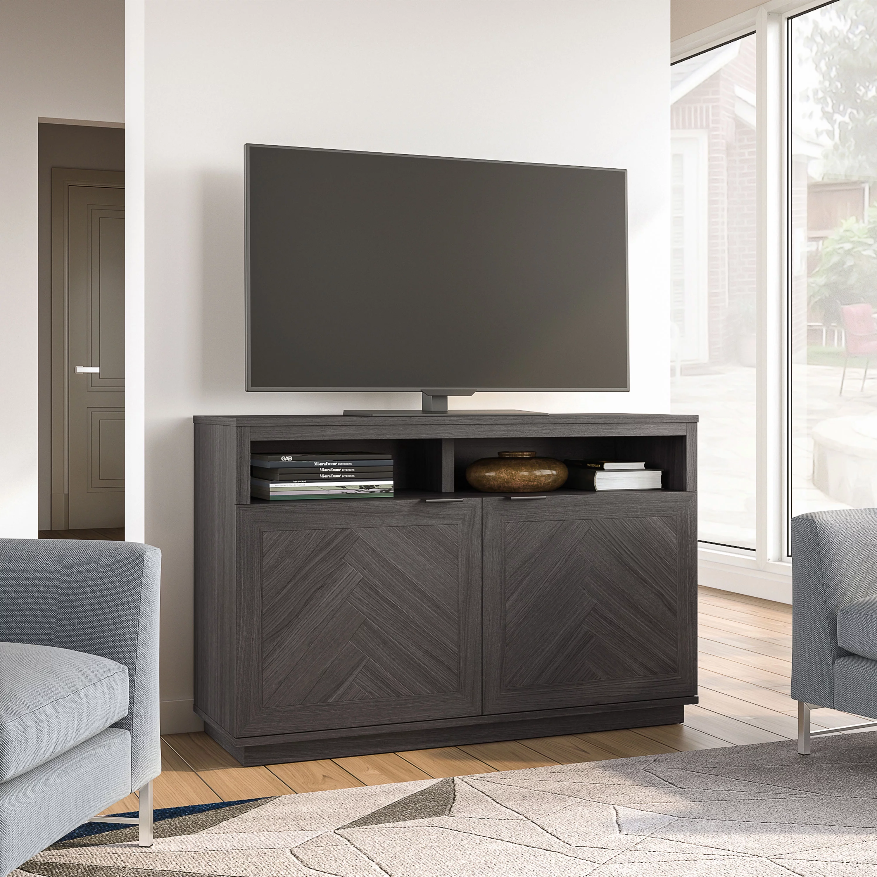 Evelyn&Zoe Hanson Rectangular TV Stand for TV's up to 75", Black Grain