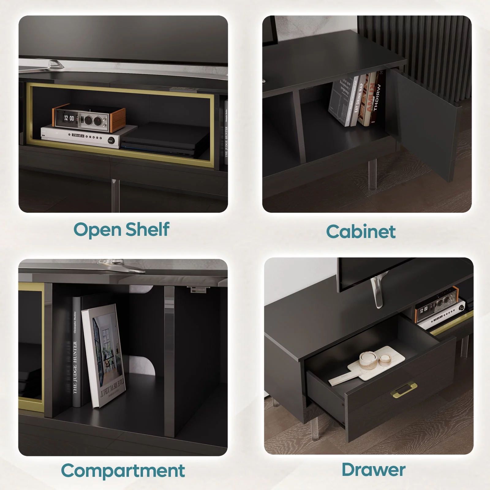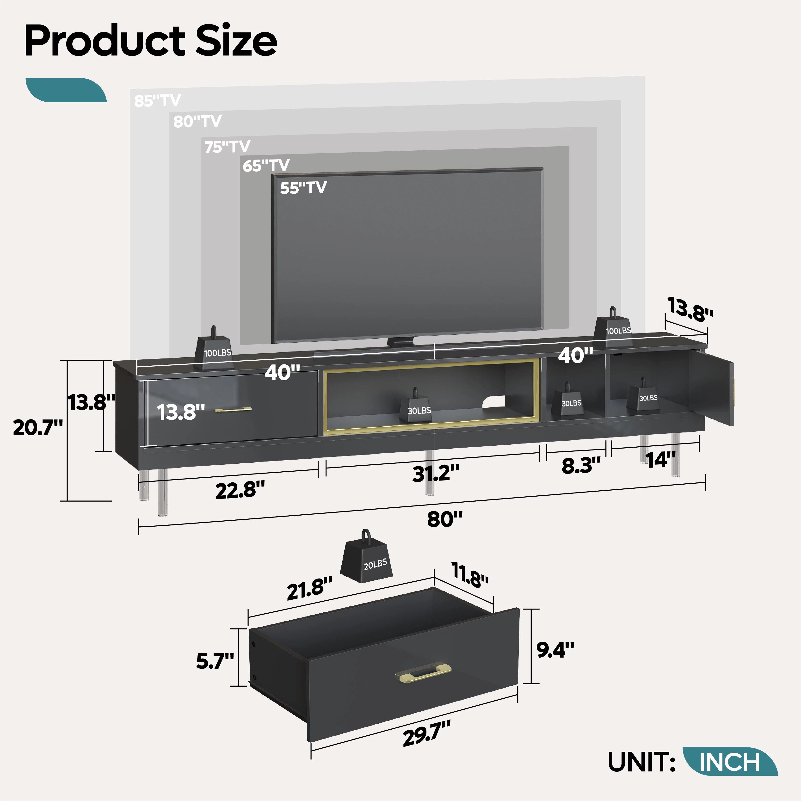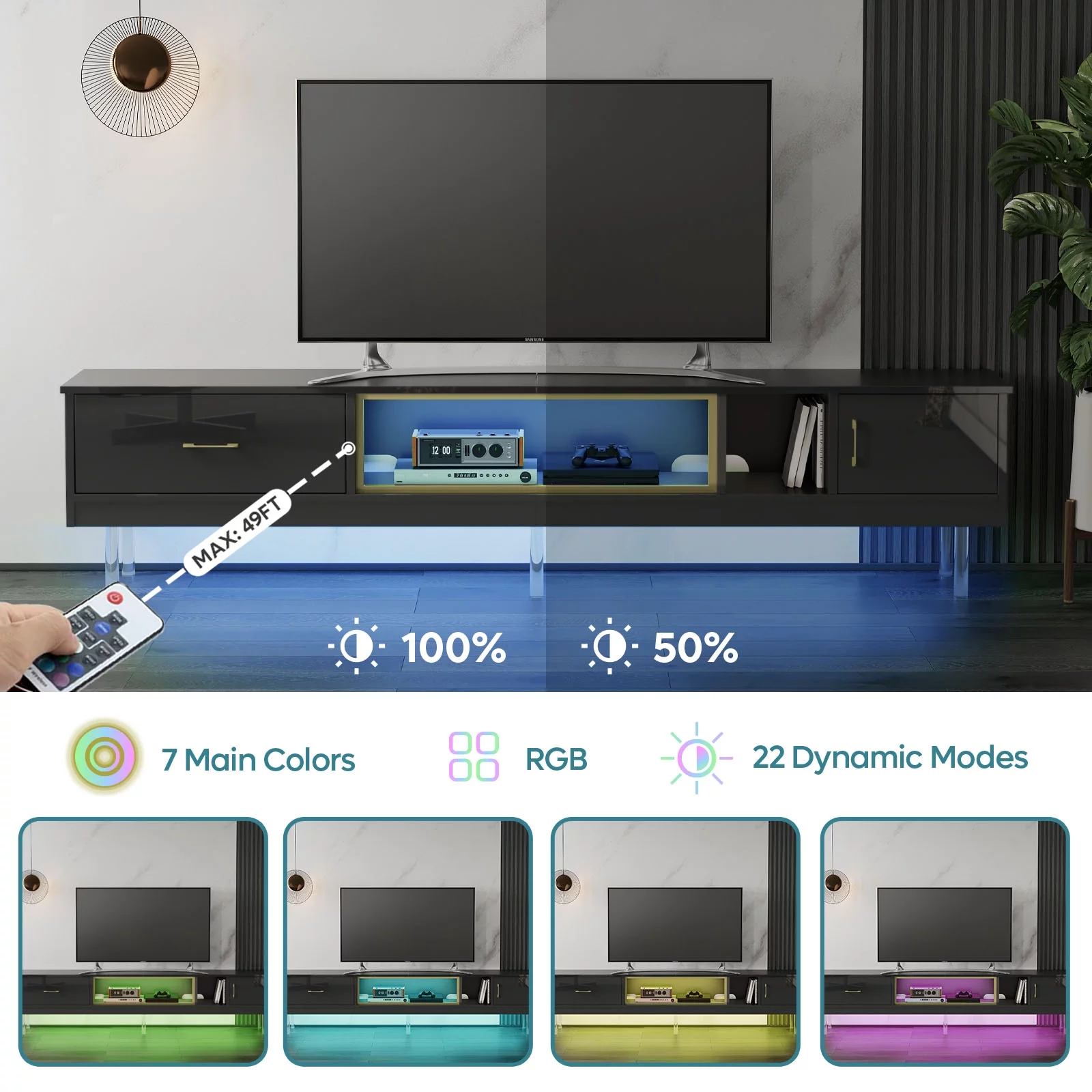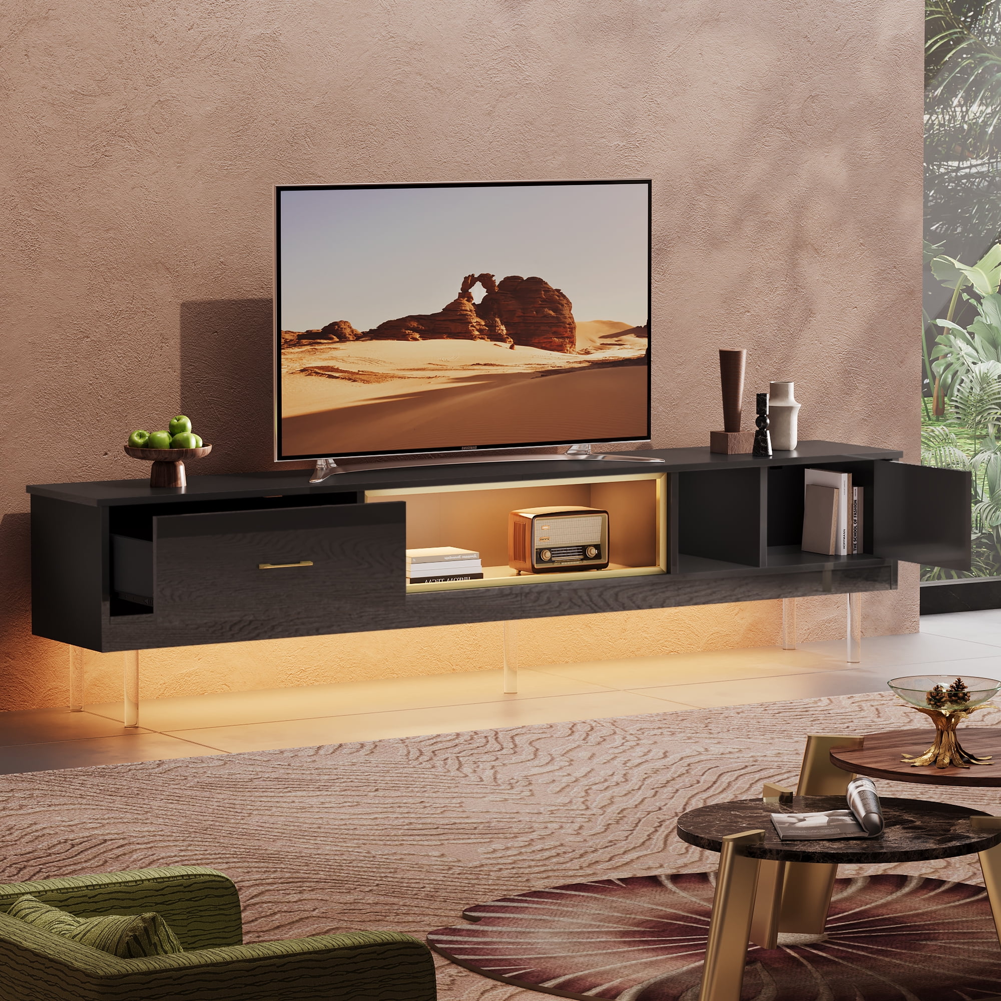 Bestier Modern TV Stand for TVs up to 85" High Gloss Entertainment Center with LED Lights & Drawer & Cabinet in Black