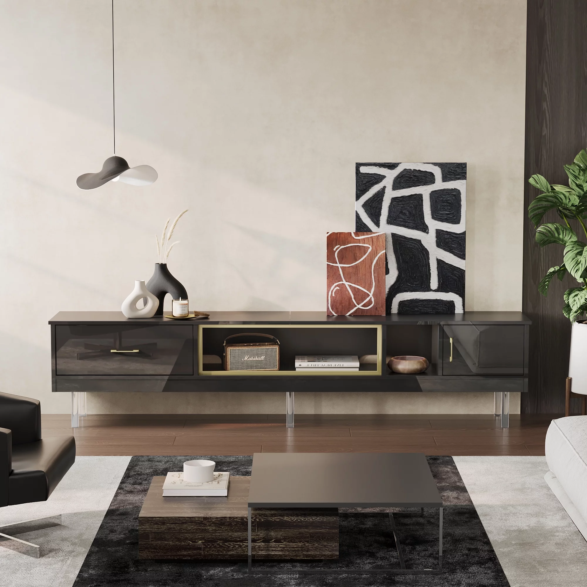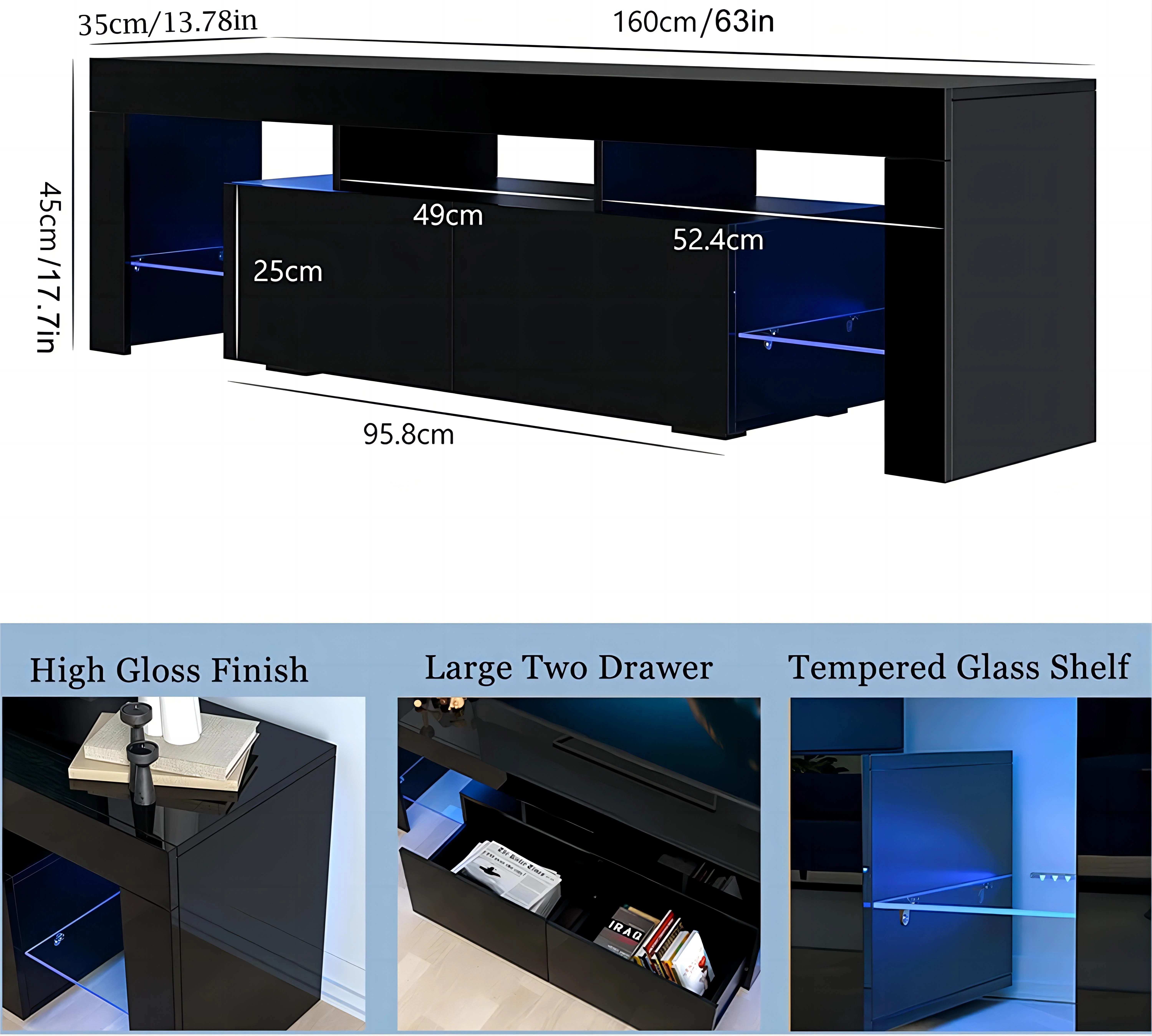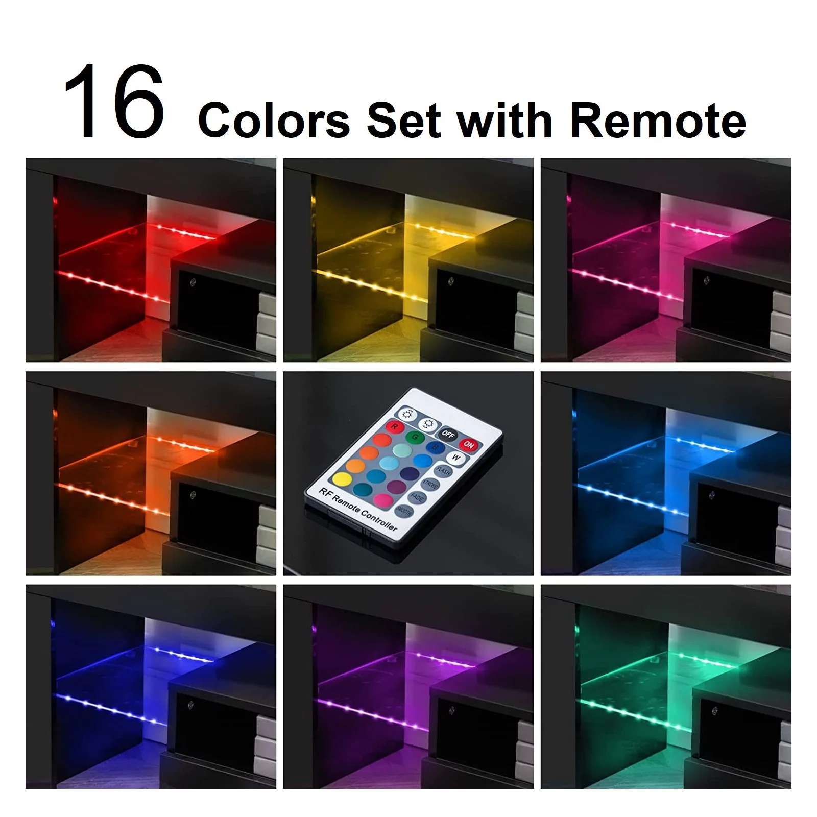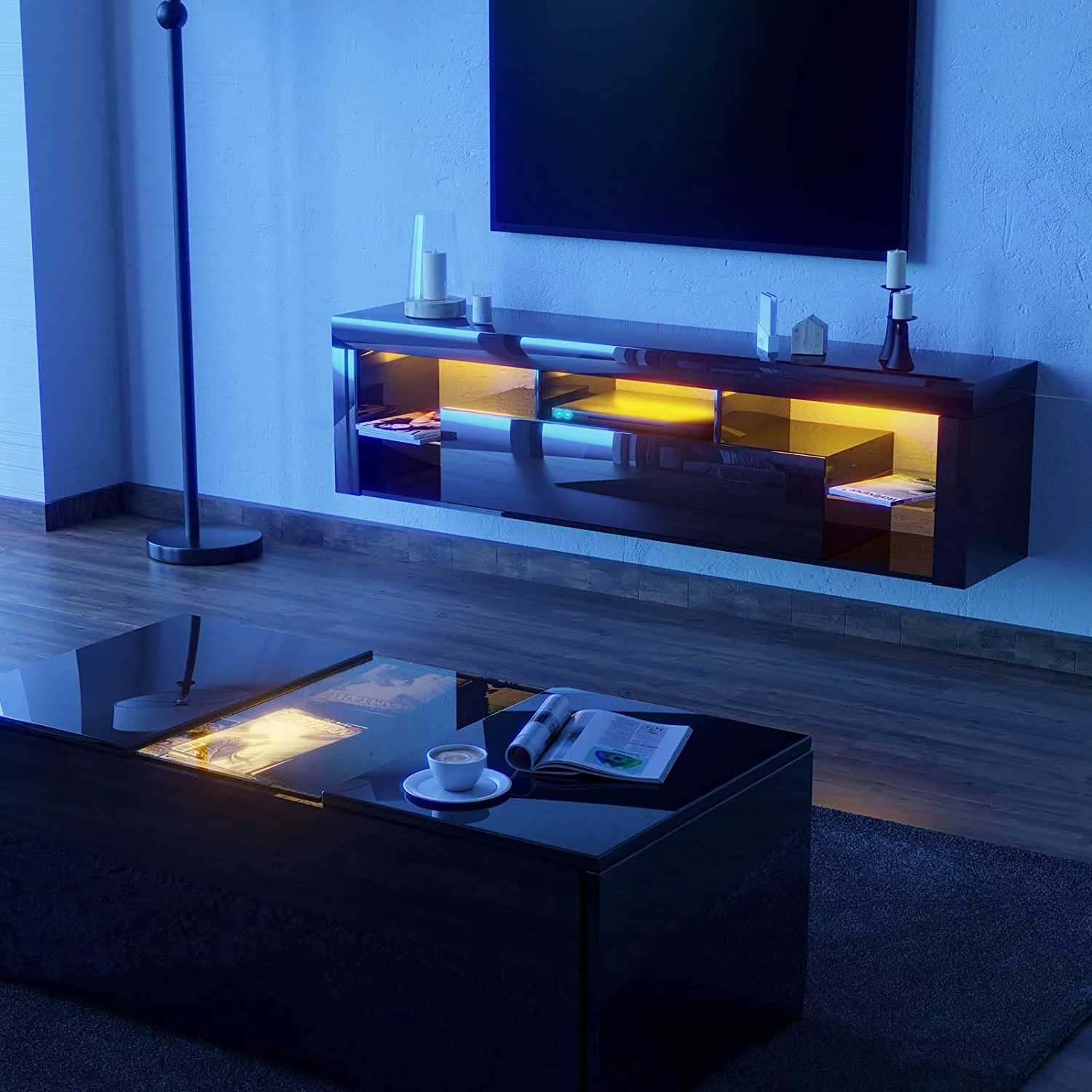 Bestier Modern TV Stand for TVs up to 85" High Gloss Entertainment Center with LED Lights & Drawer & Cabinet in Black