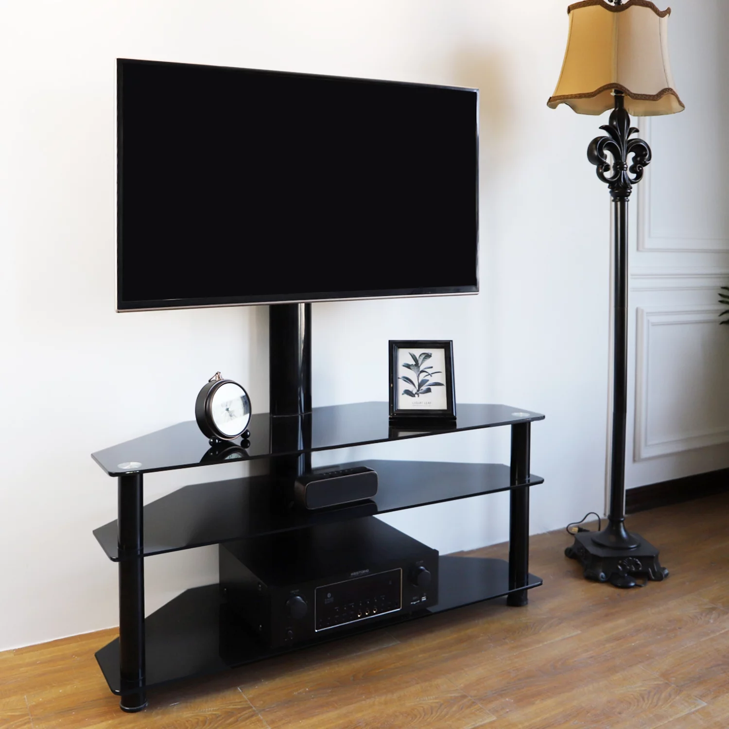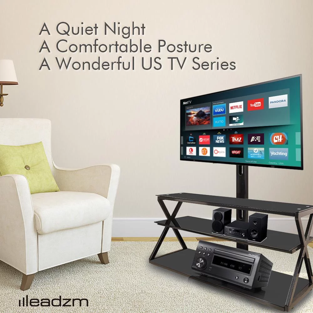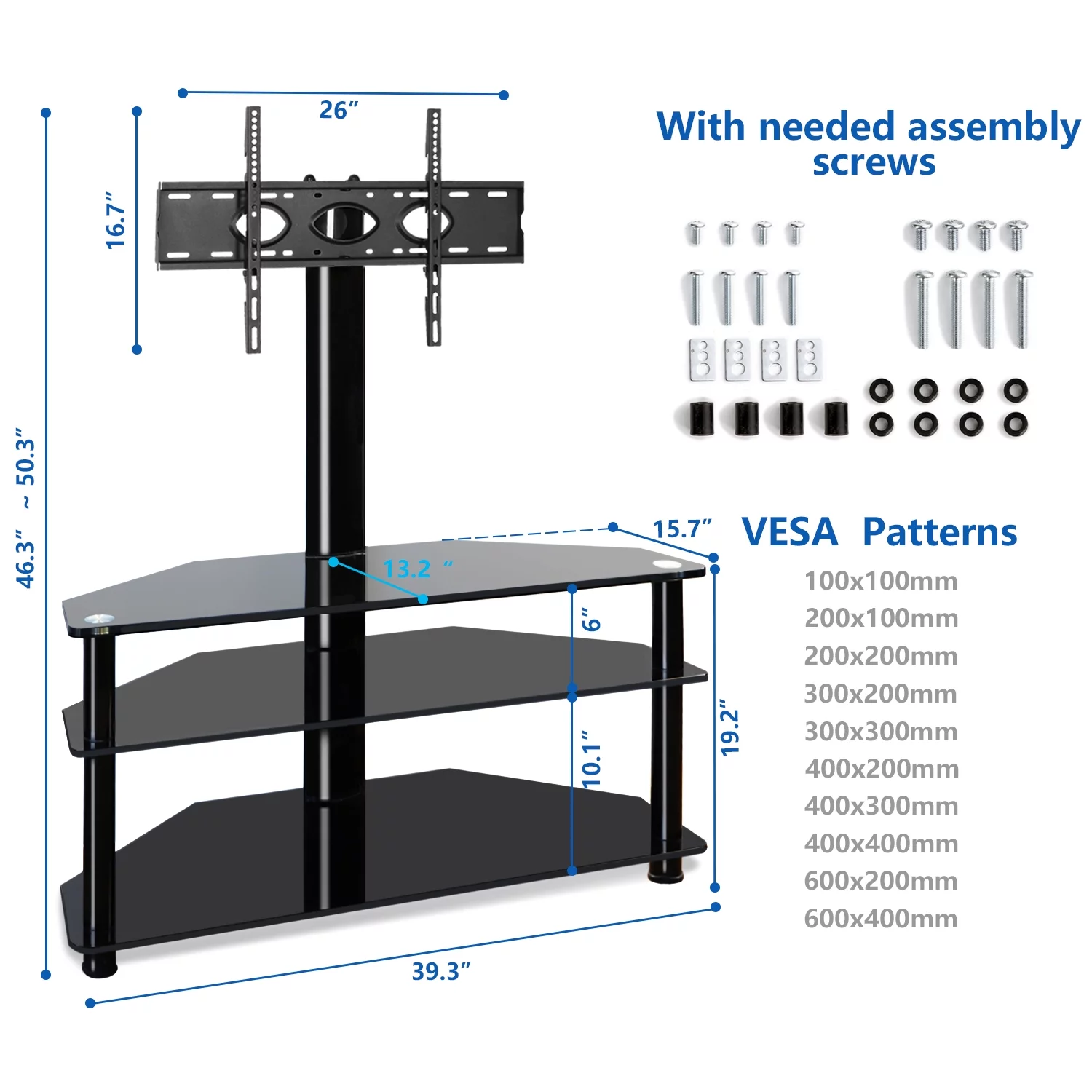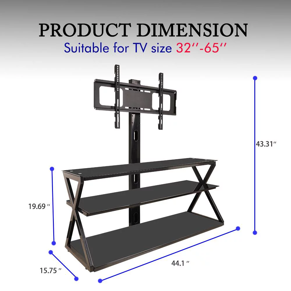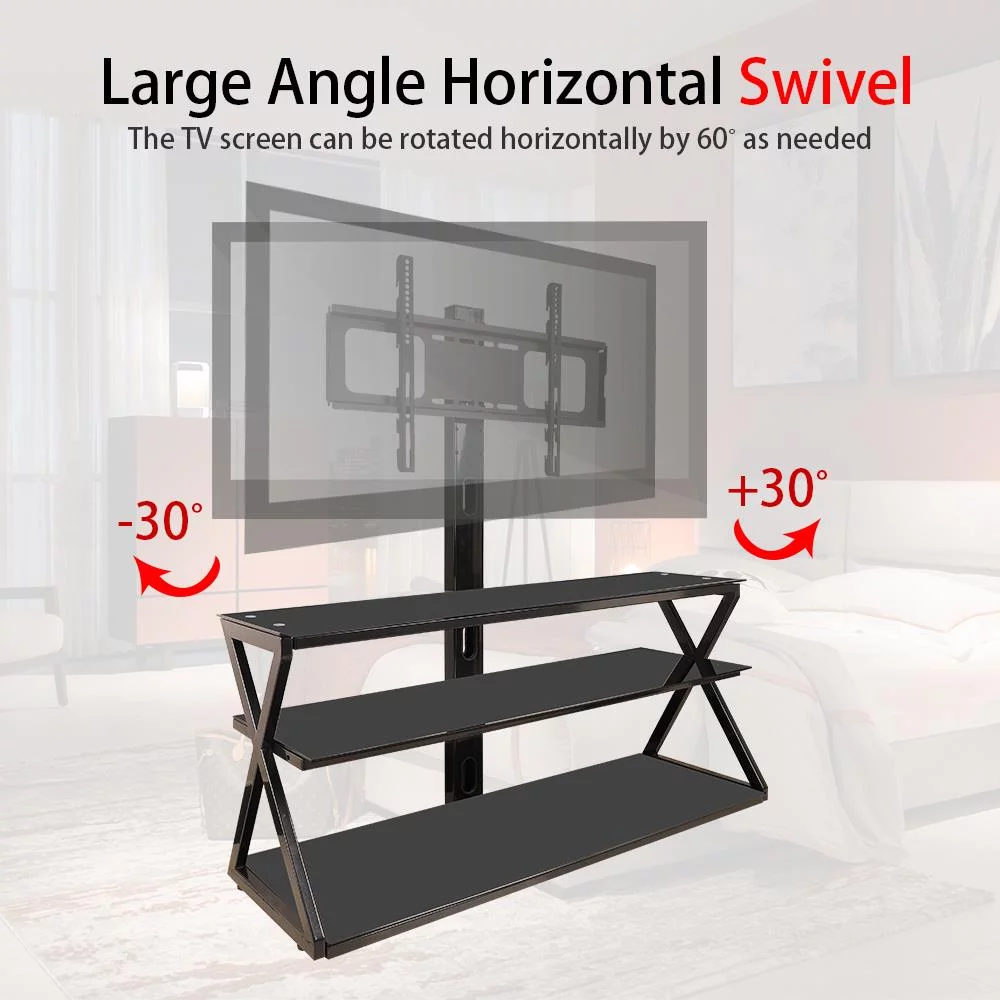 Ktaxon Swivel Floor TV Stand Mount 3 Tier Tempered Glass Shelf for 32 37 40 42 46 47 50 55 60 65"