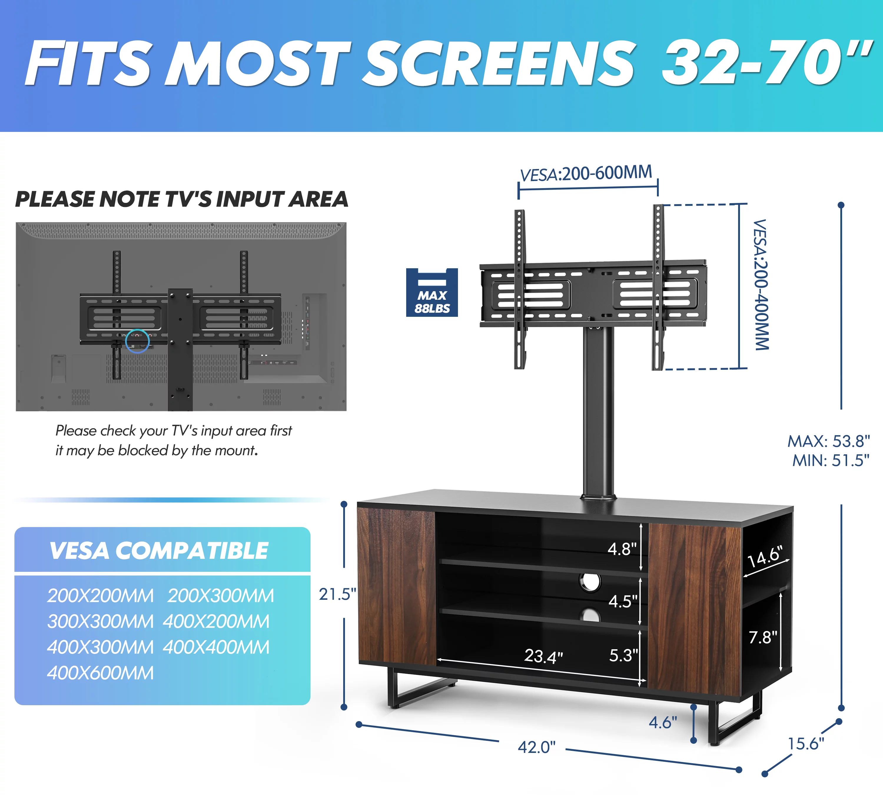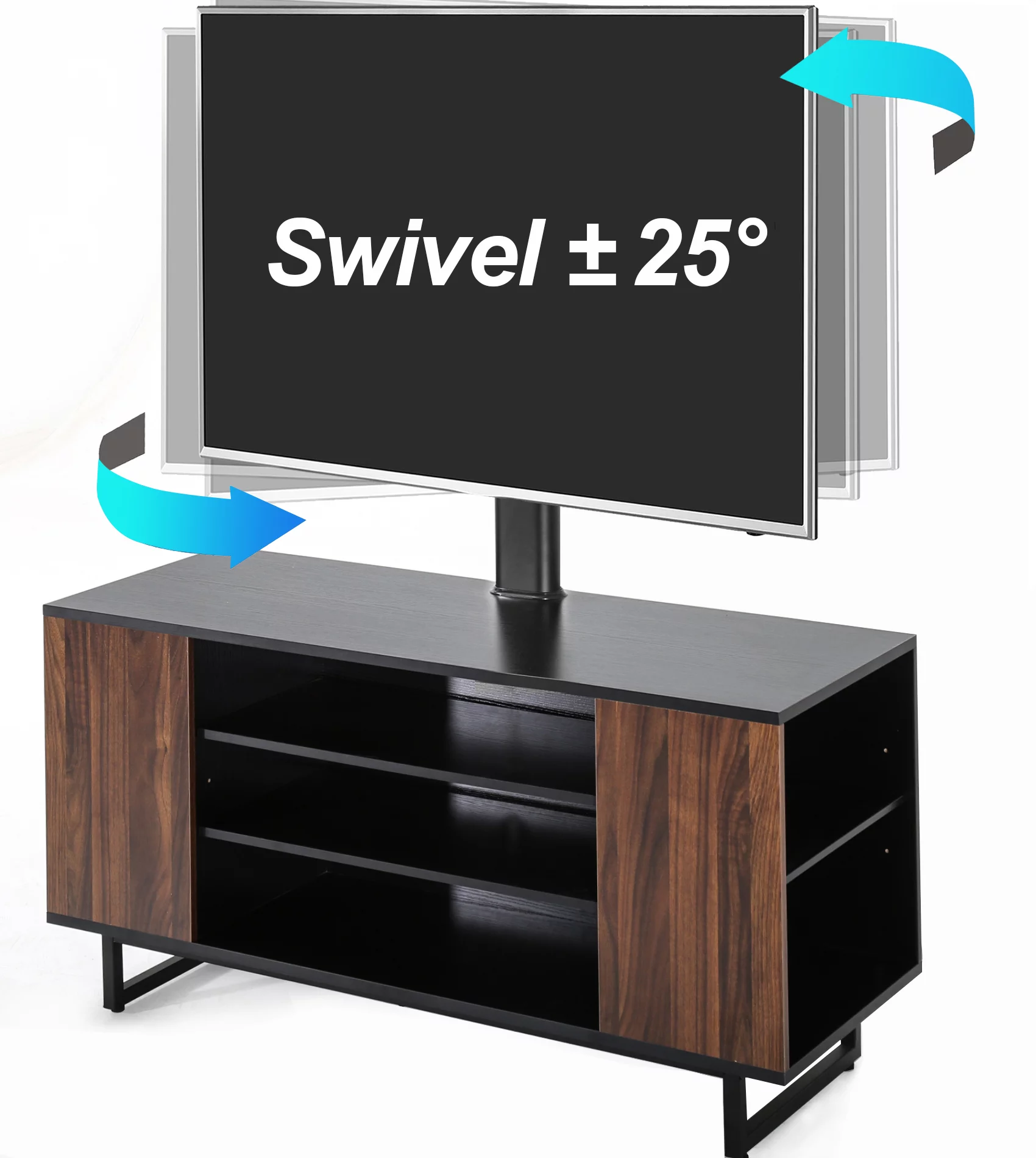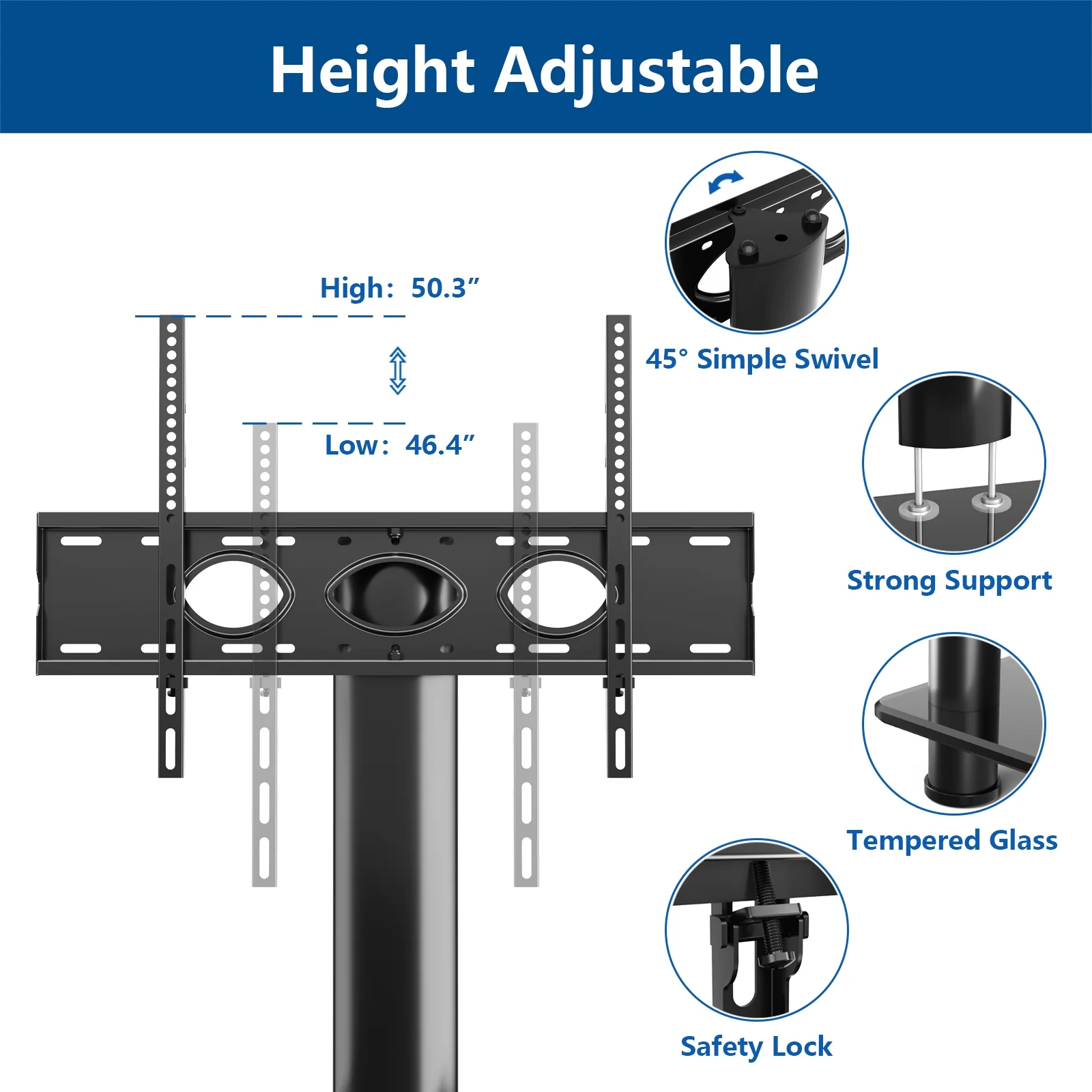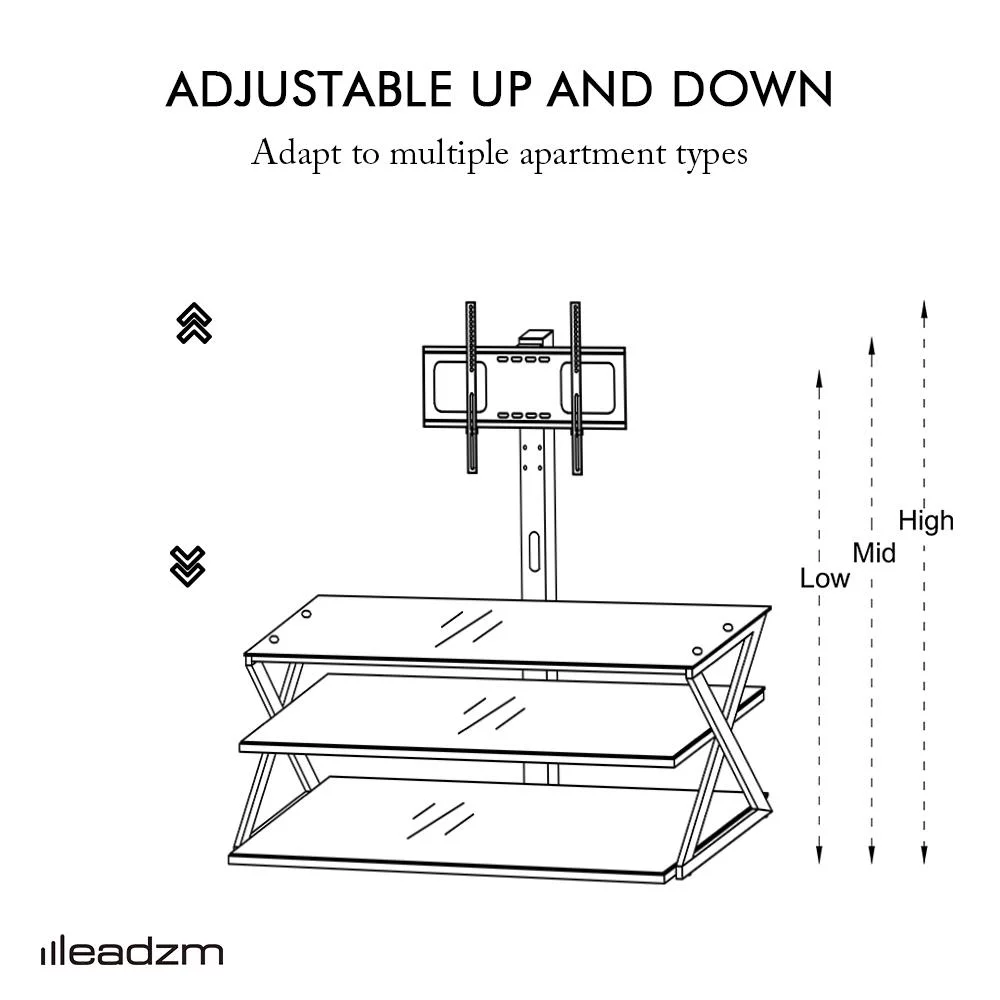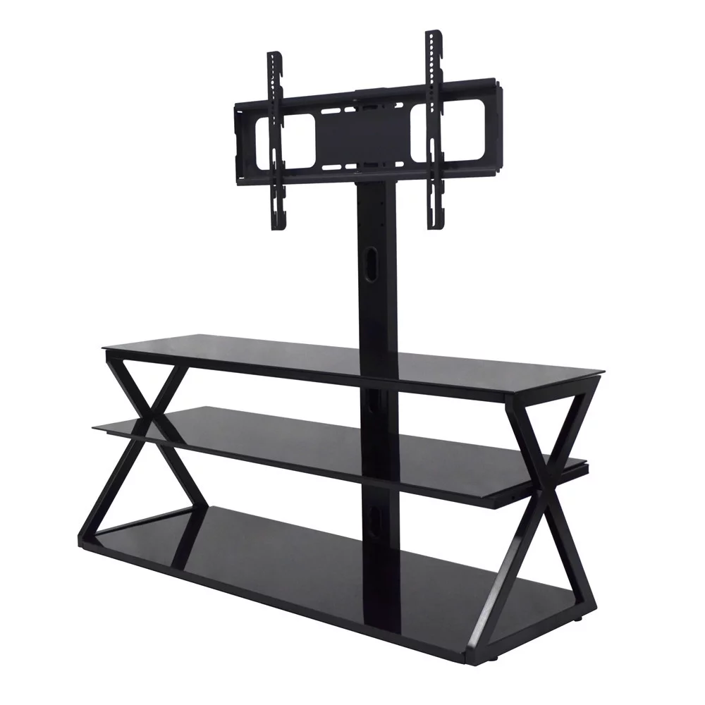 Ktaxon Swivel Floor TV Stand Mount 3 Tier Tempered Glass Shelf for 32 37 40 42 46 47 50 55 60 65"