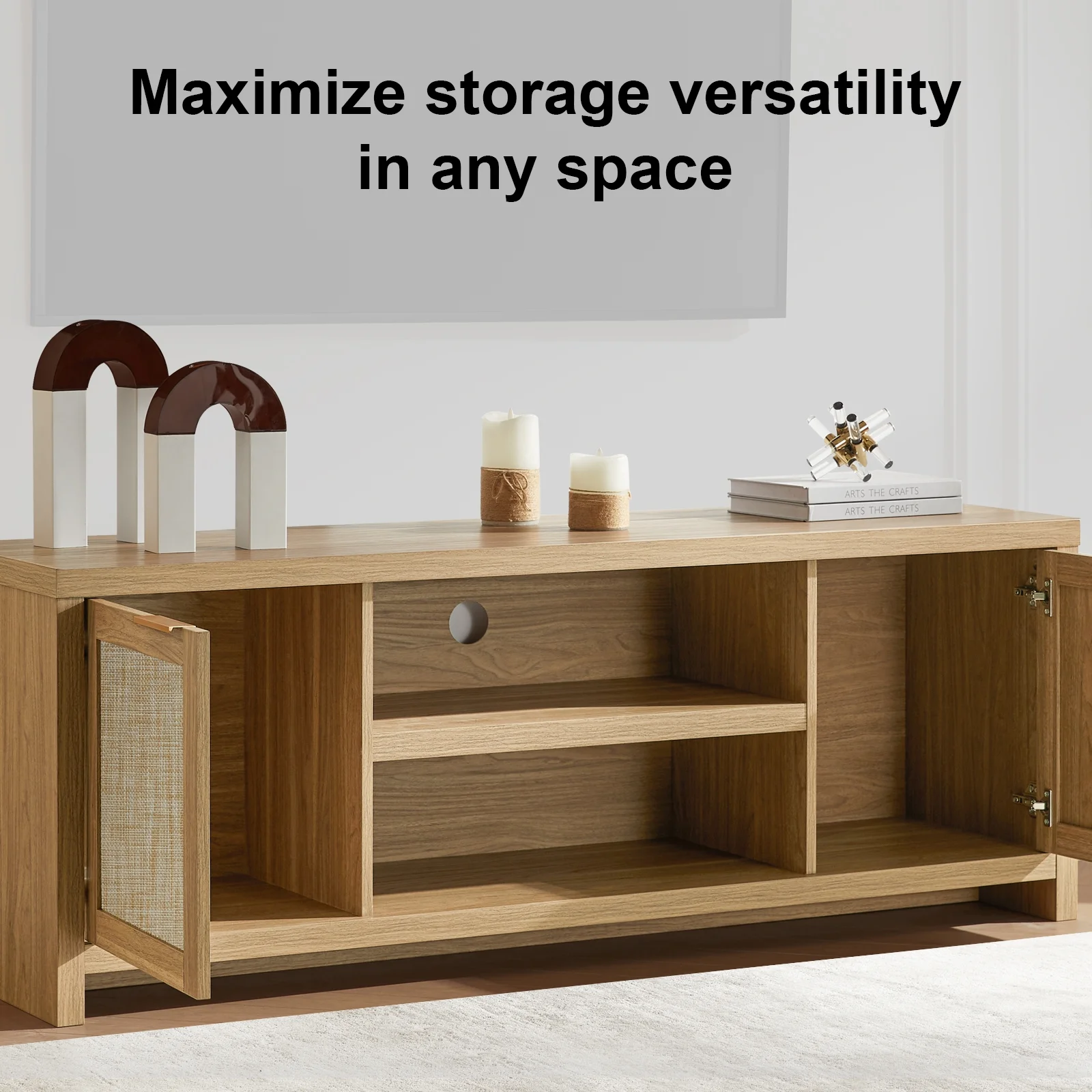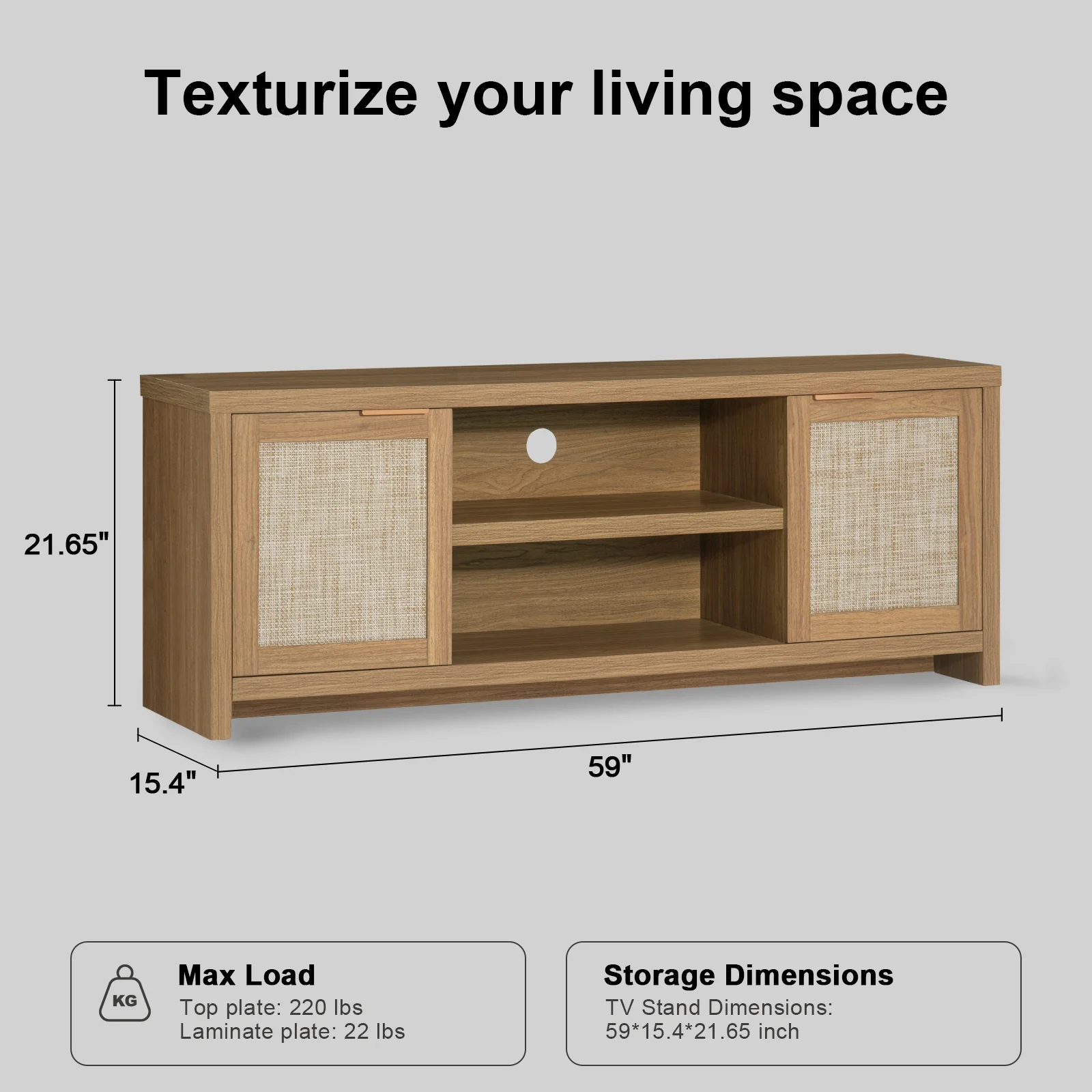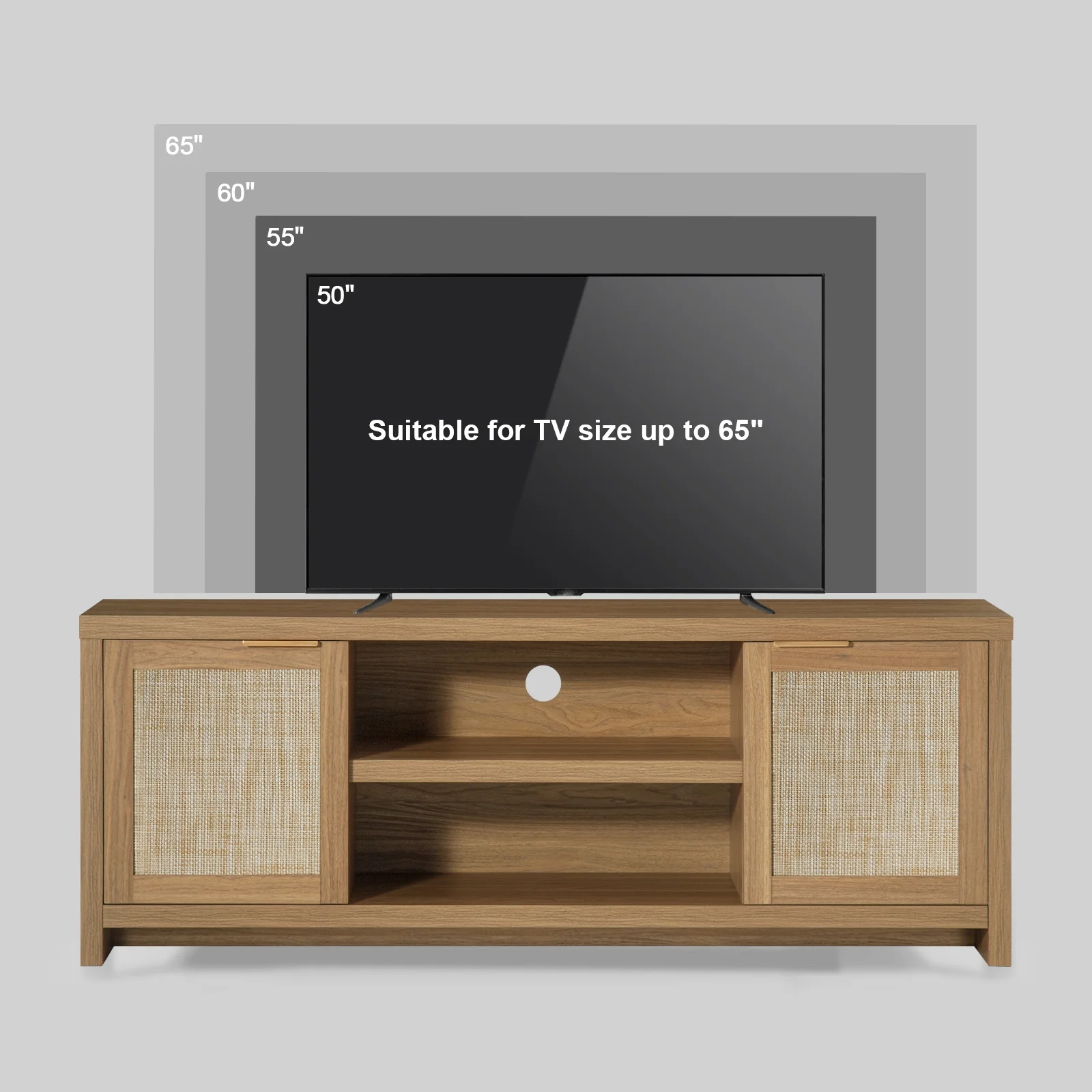 OAKHAM Farmhouse Rattan Tv Stands, Entertainment Center for TVs up to 65", Weathered Oak