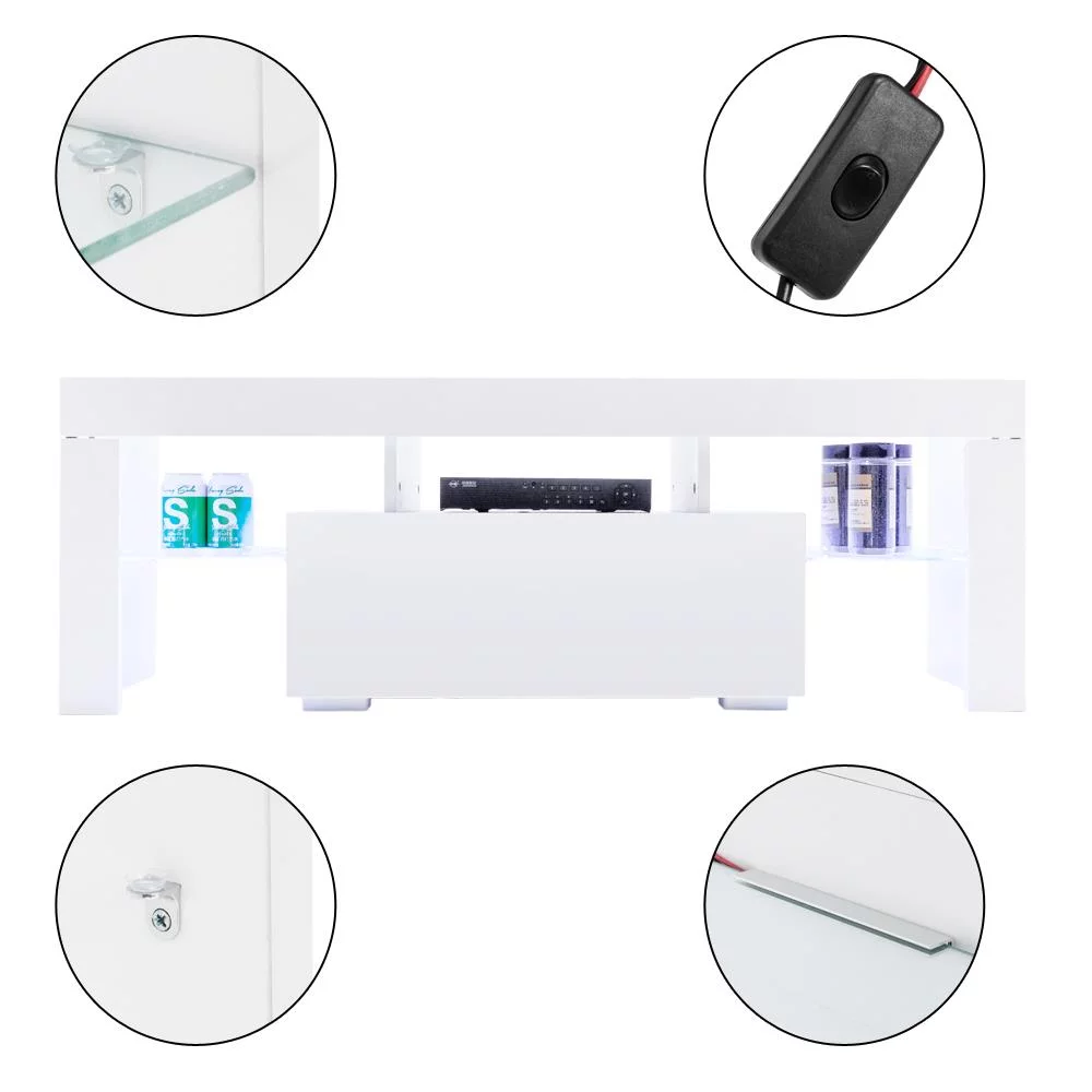 Zimtown Modern TV Stand High Gloss Media Console Cabinet Entertainment Center with LED Shelf and Drawers,White