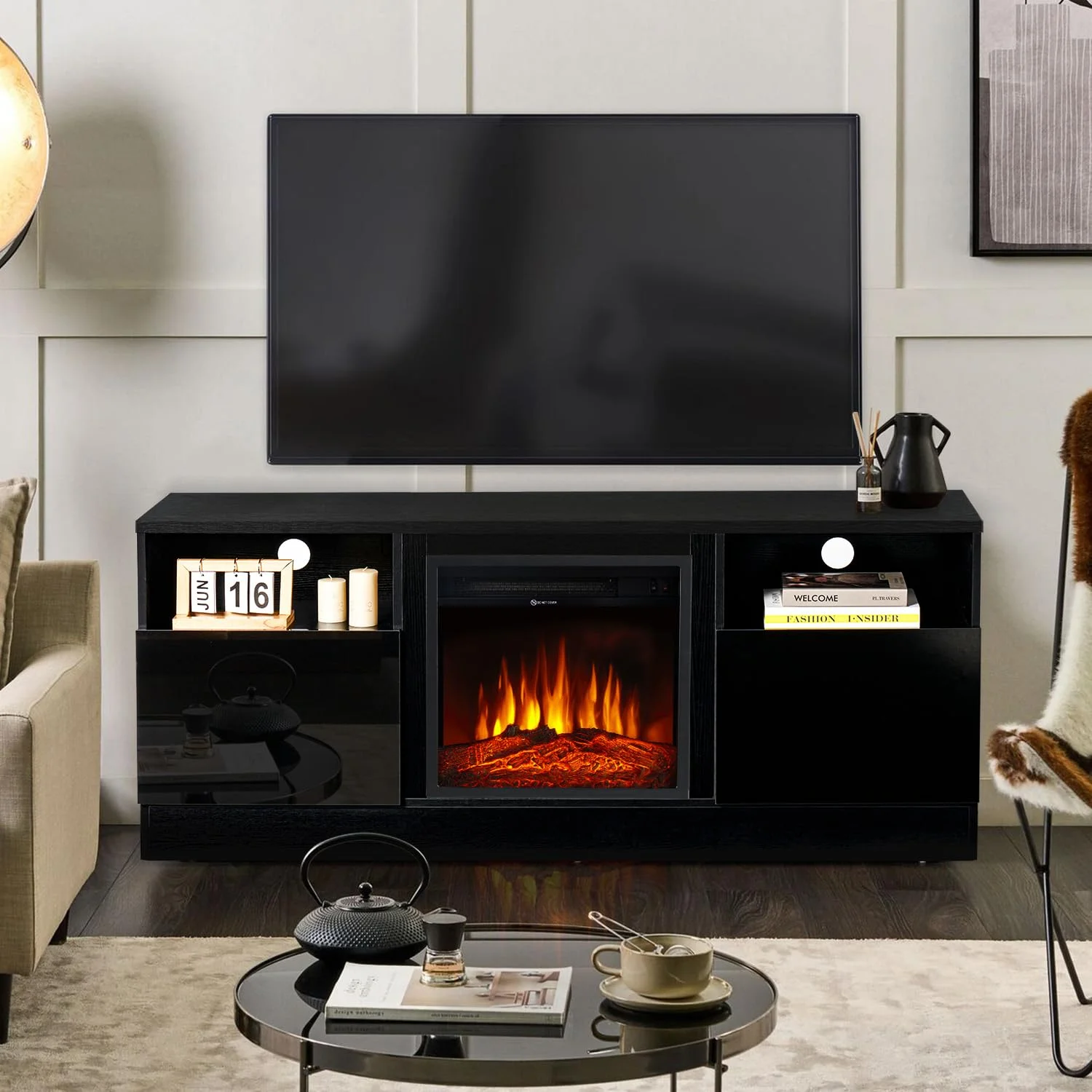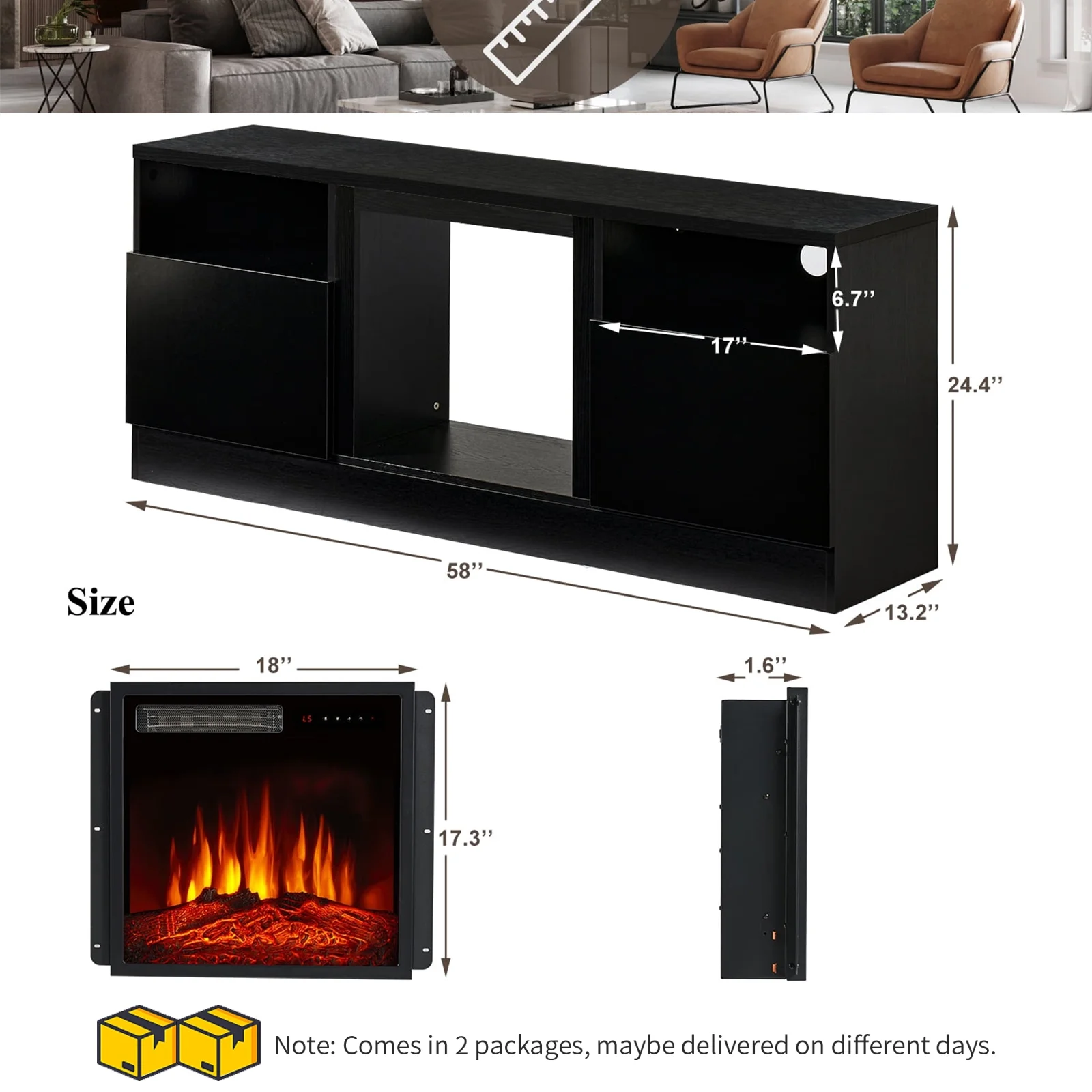 Oneinmil 65" Fireplace TV Stand for TVs up to 75", TV Stand with Electric Fireplace, Console Entertainment Center, Black