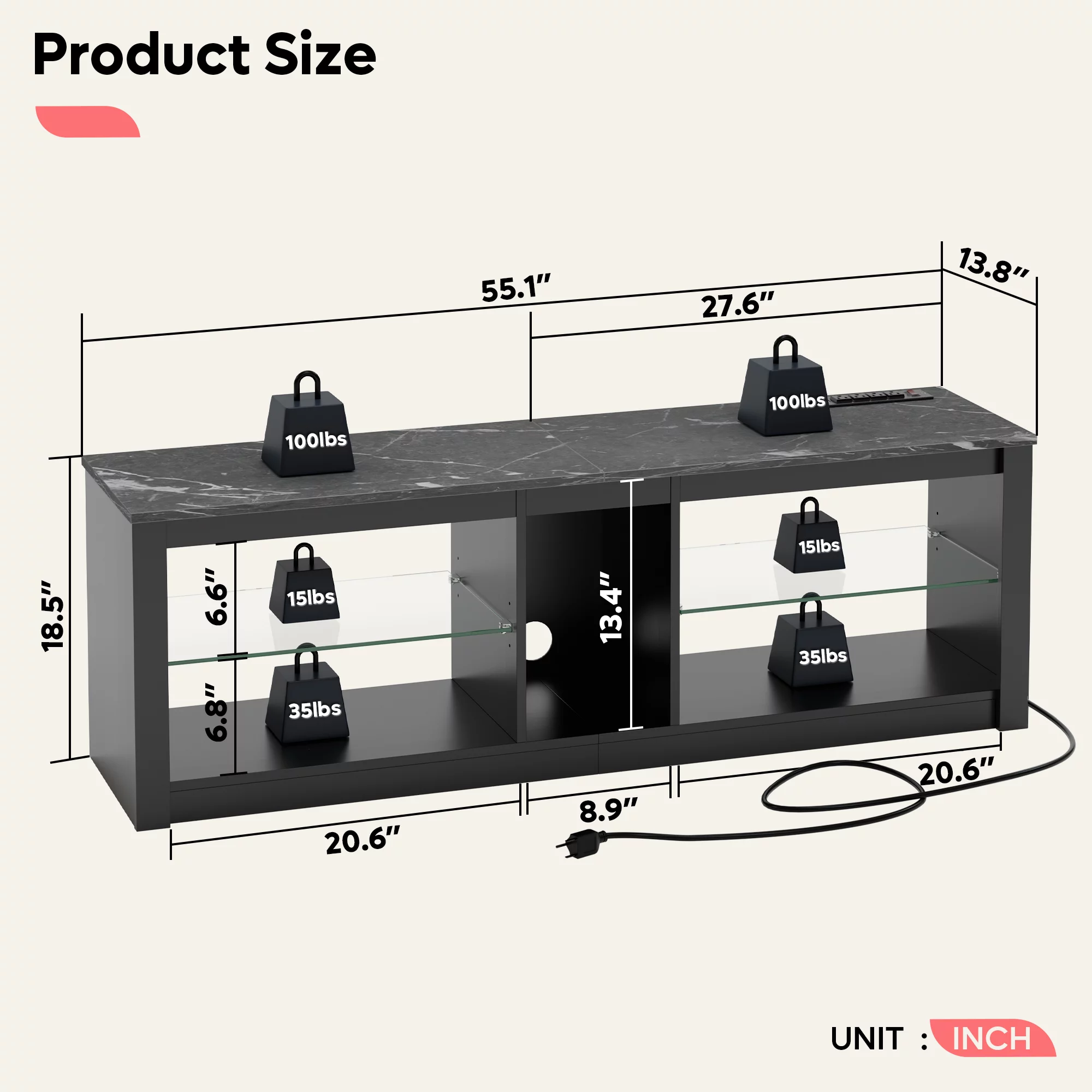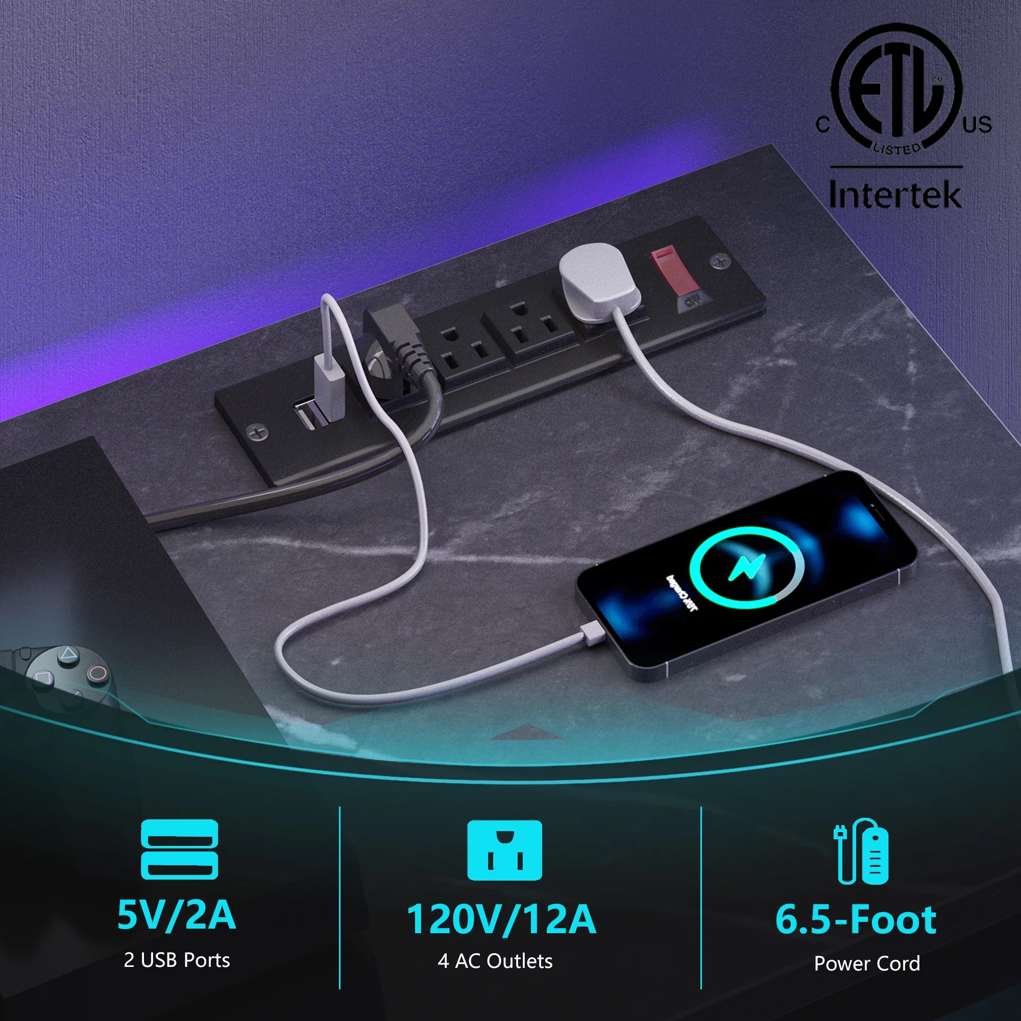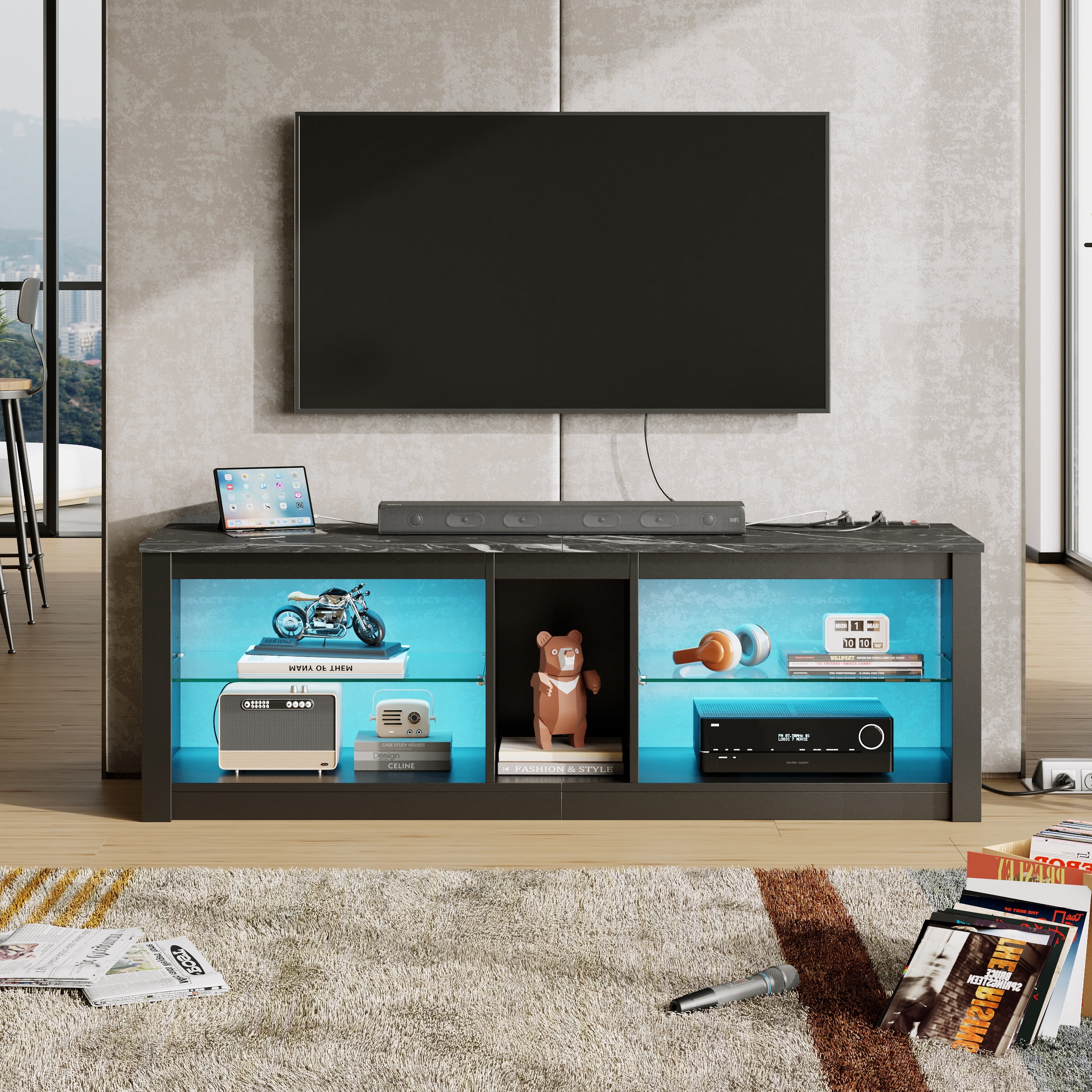 Bestier Gaming Entertainment Center TV Stand with LED Lights & Power Outlet for TVs up to 60", Black Marble