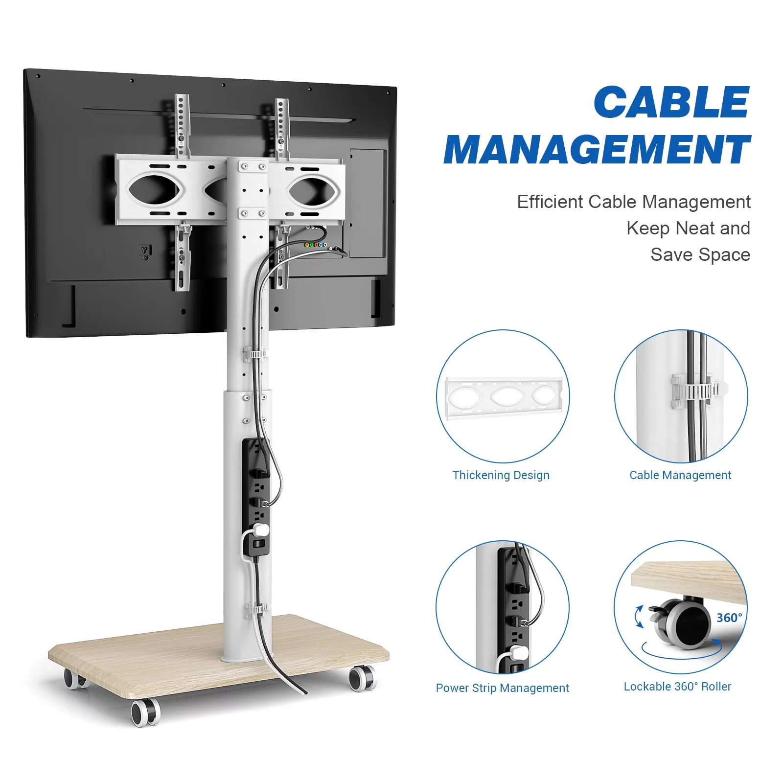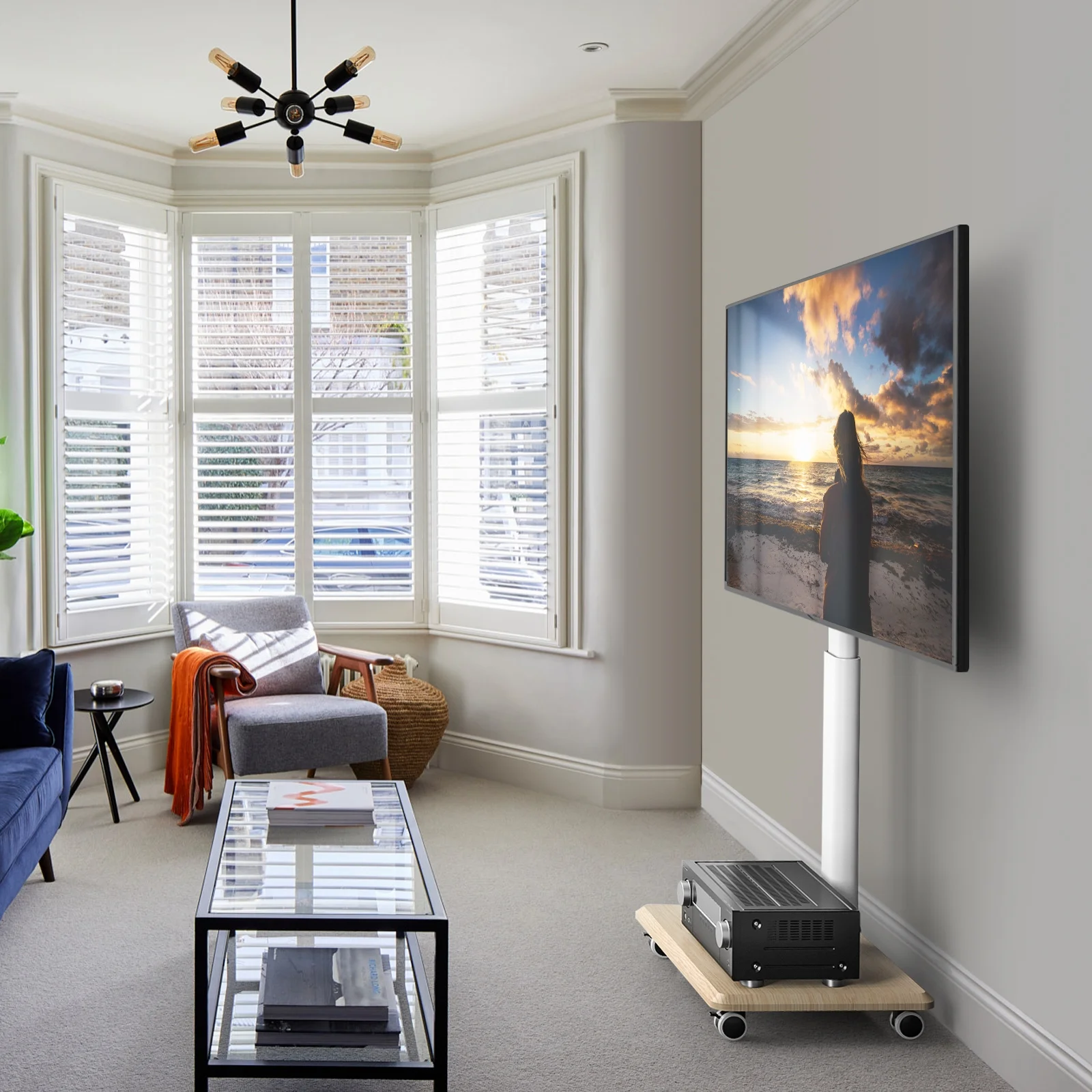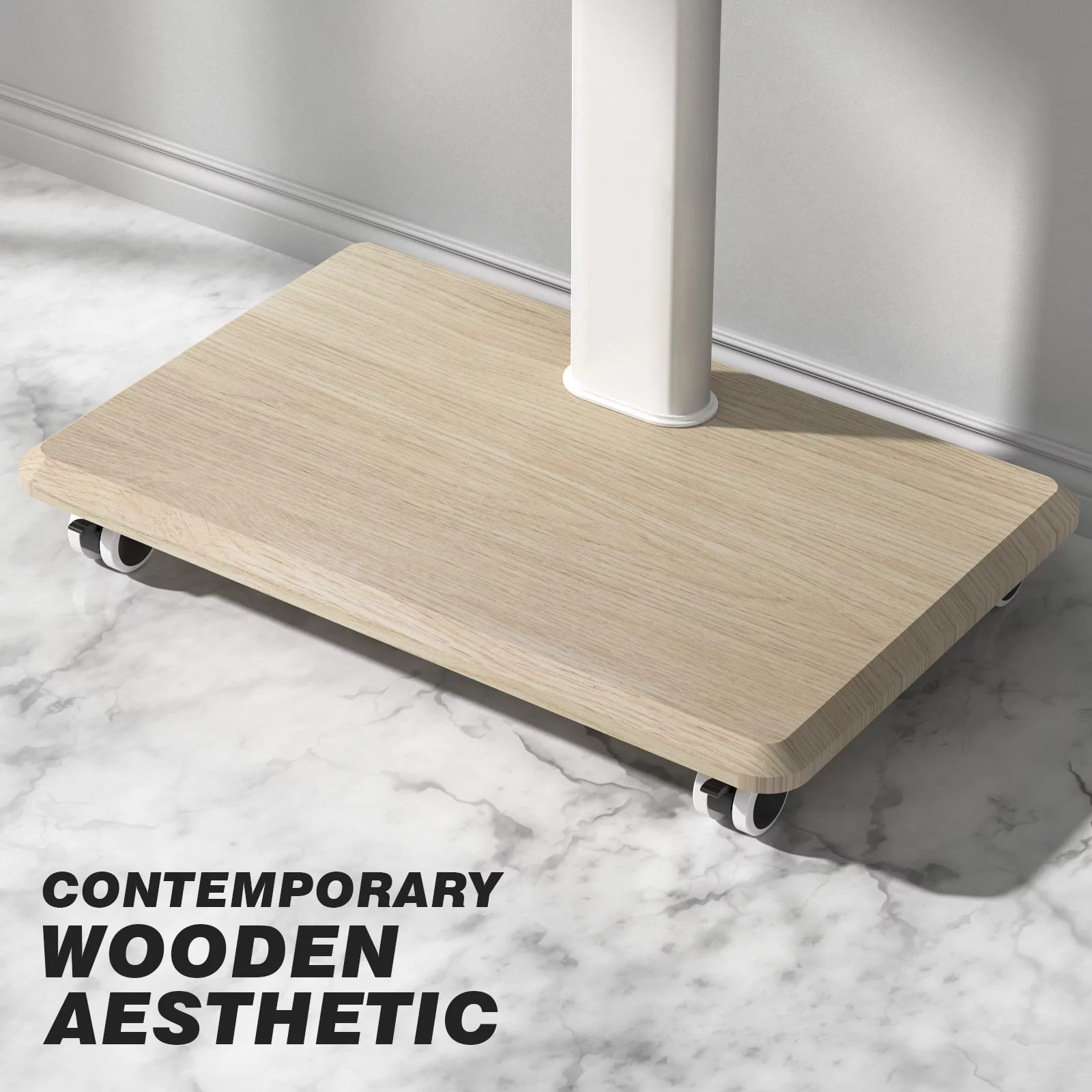 5Rcom Modern Floor Rolling TV Stand for TVs up to 65 inch, White, Wooden Base