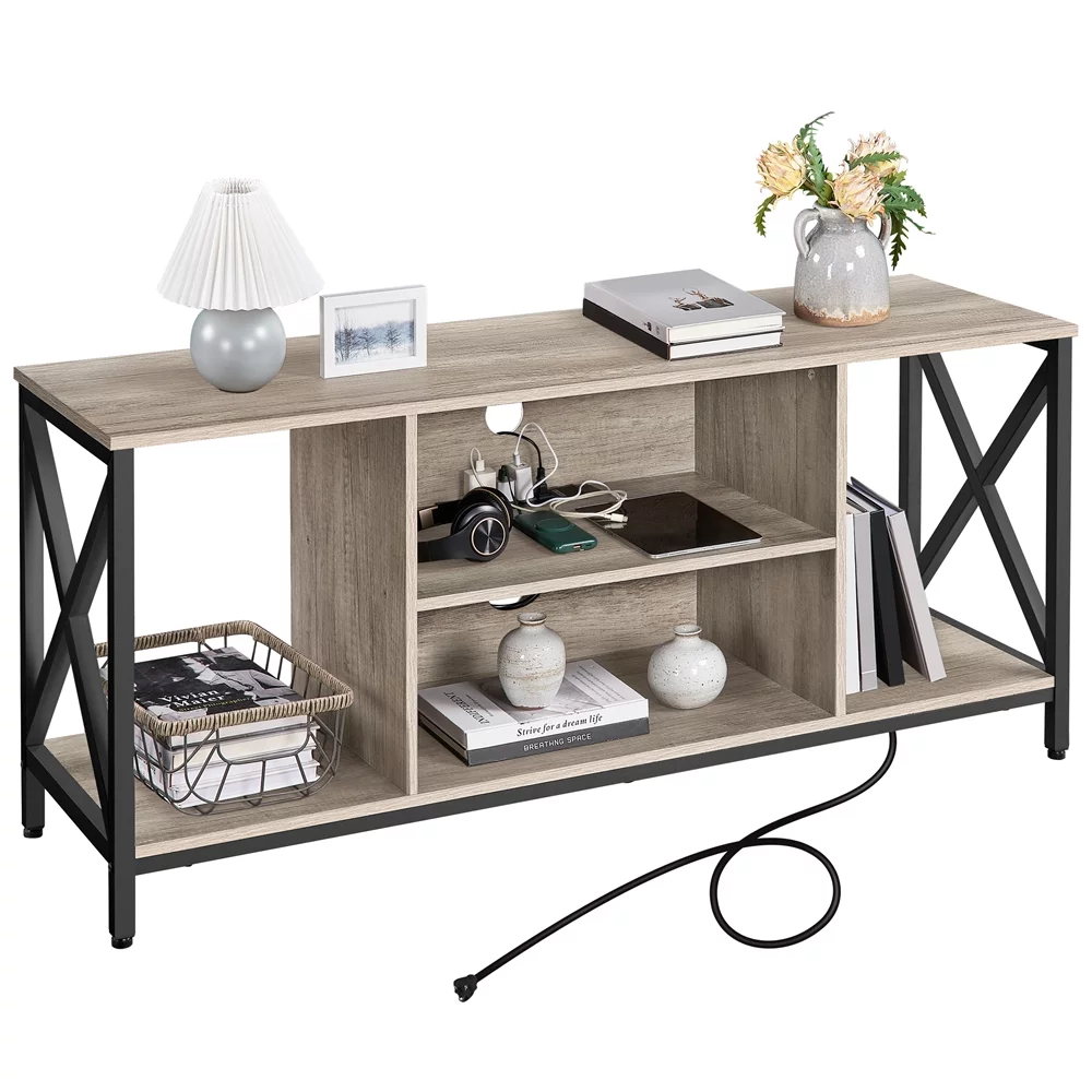 SmileMart Modern TV Stand for 60-Inch TV with with 4-AC Power Outlet, Gray