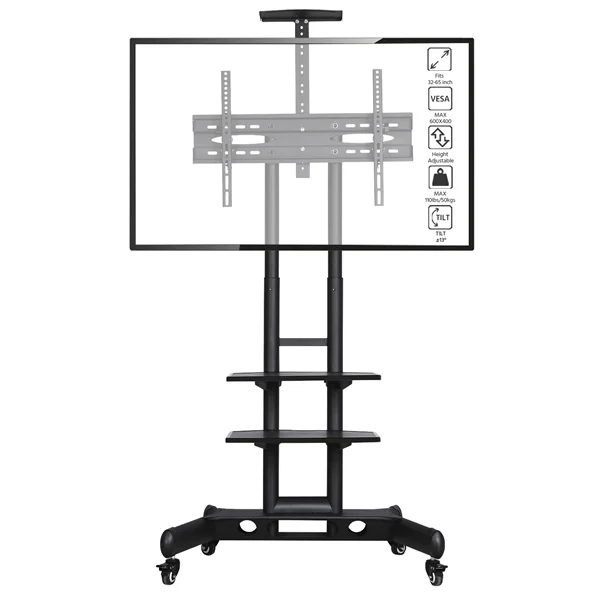 Easyfashion Adjustable 3 Tier Mobile TV Stand TV Cart for Flat Panel TVs up to 75'', Black