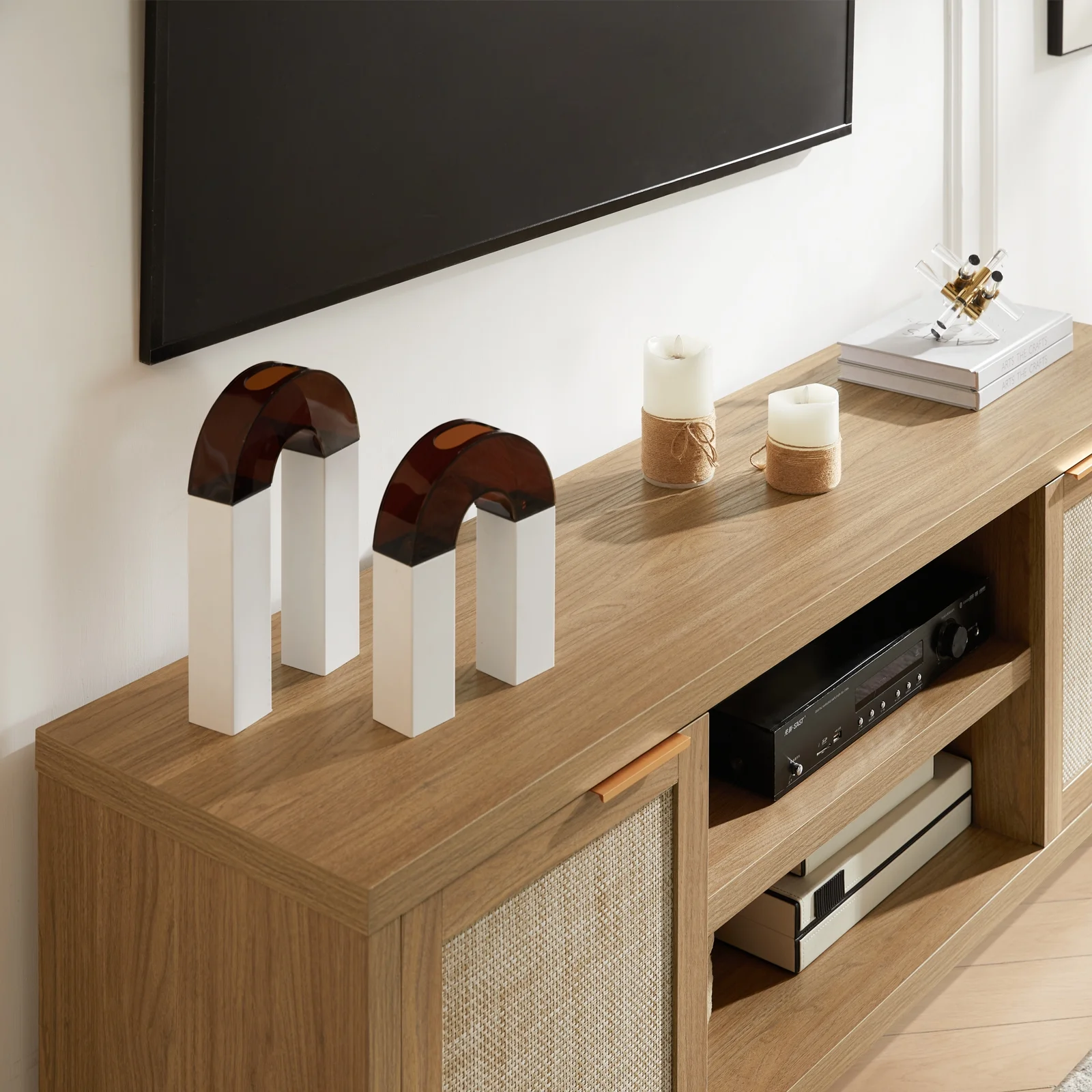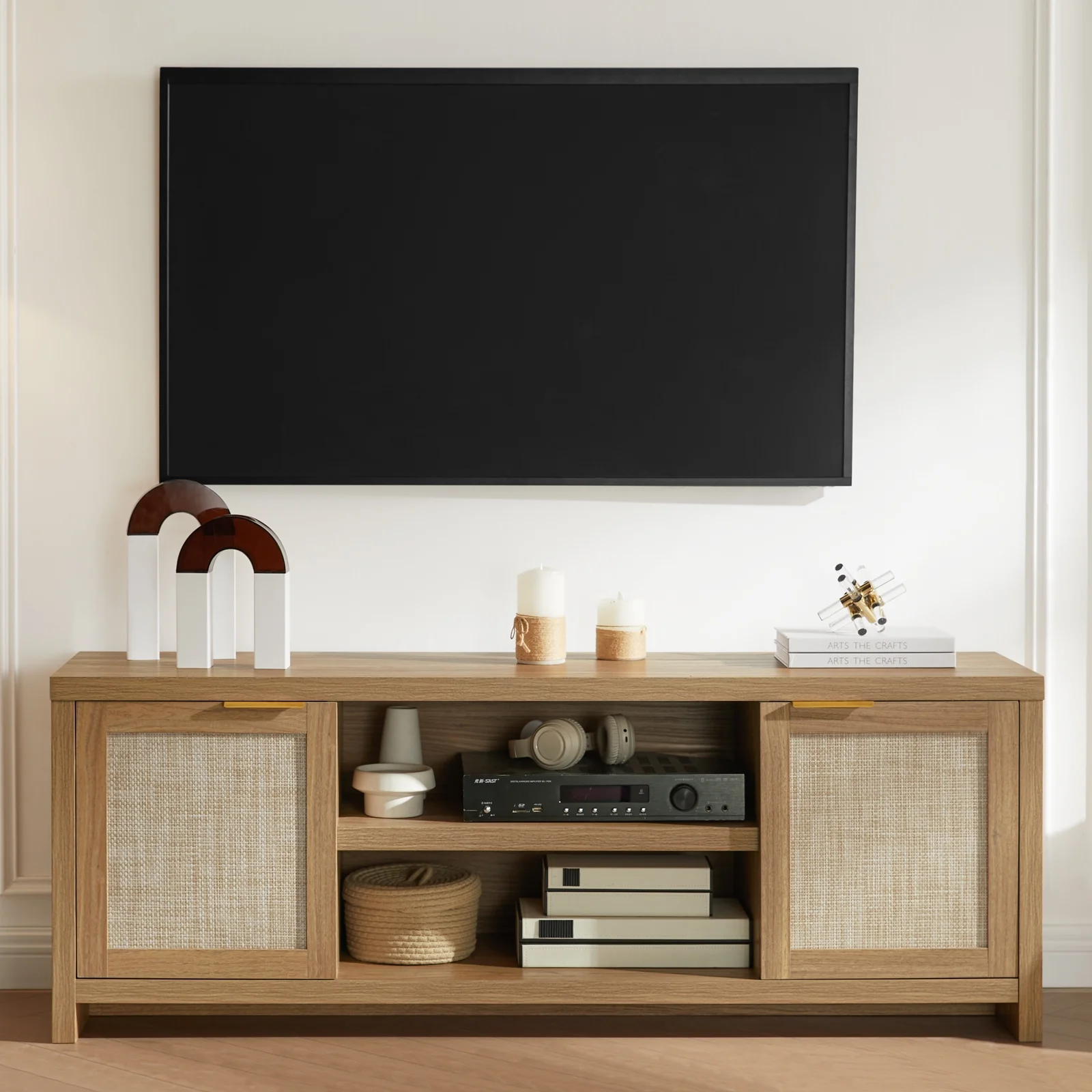 Walker Edison Boho 2-Door Rattan TV Stand for TVs up to 80”, Coastal Oak