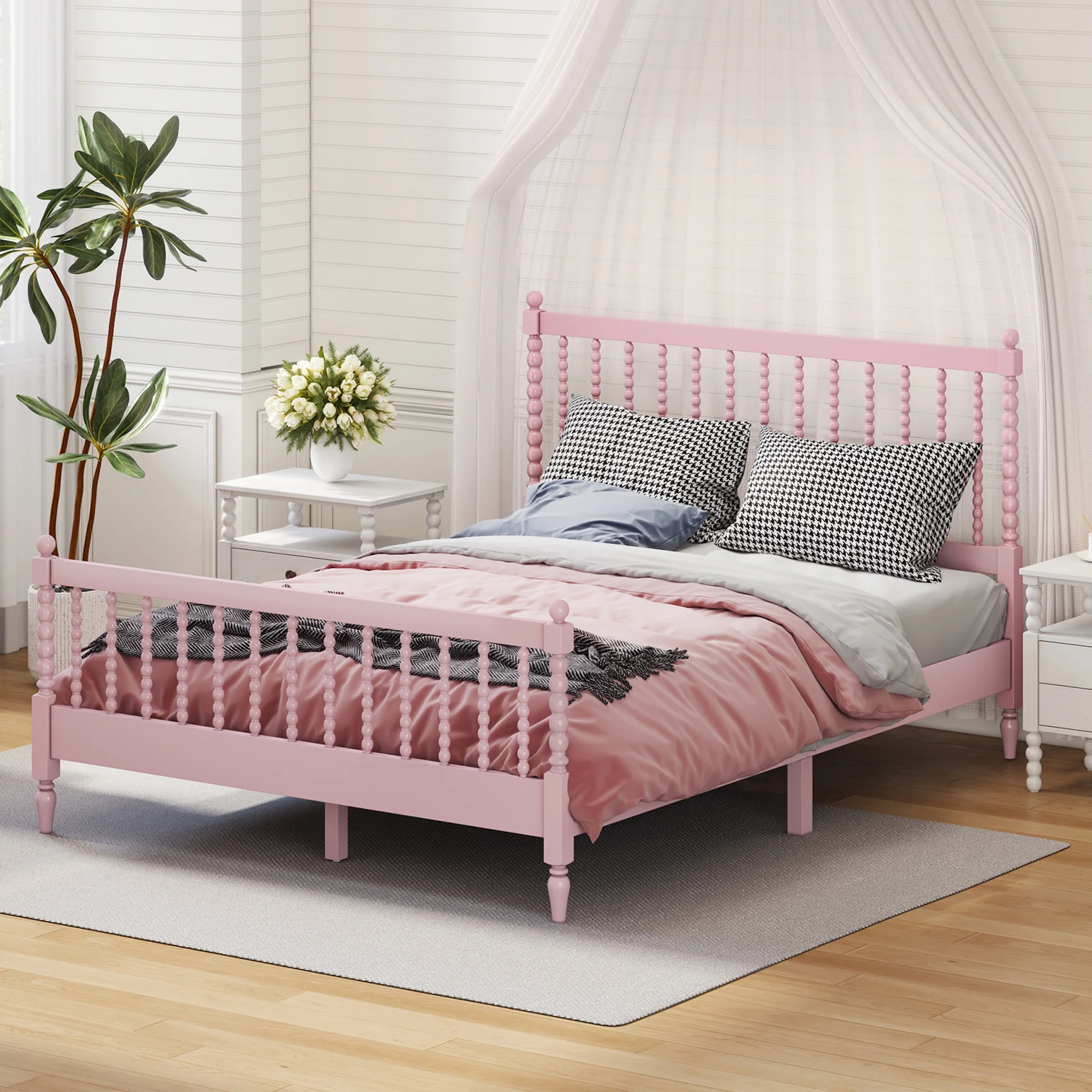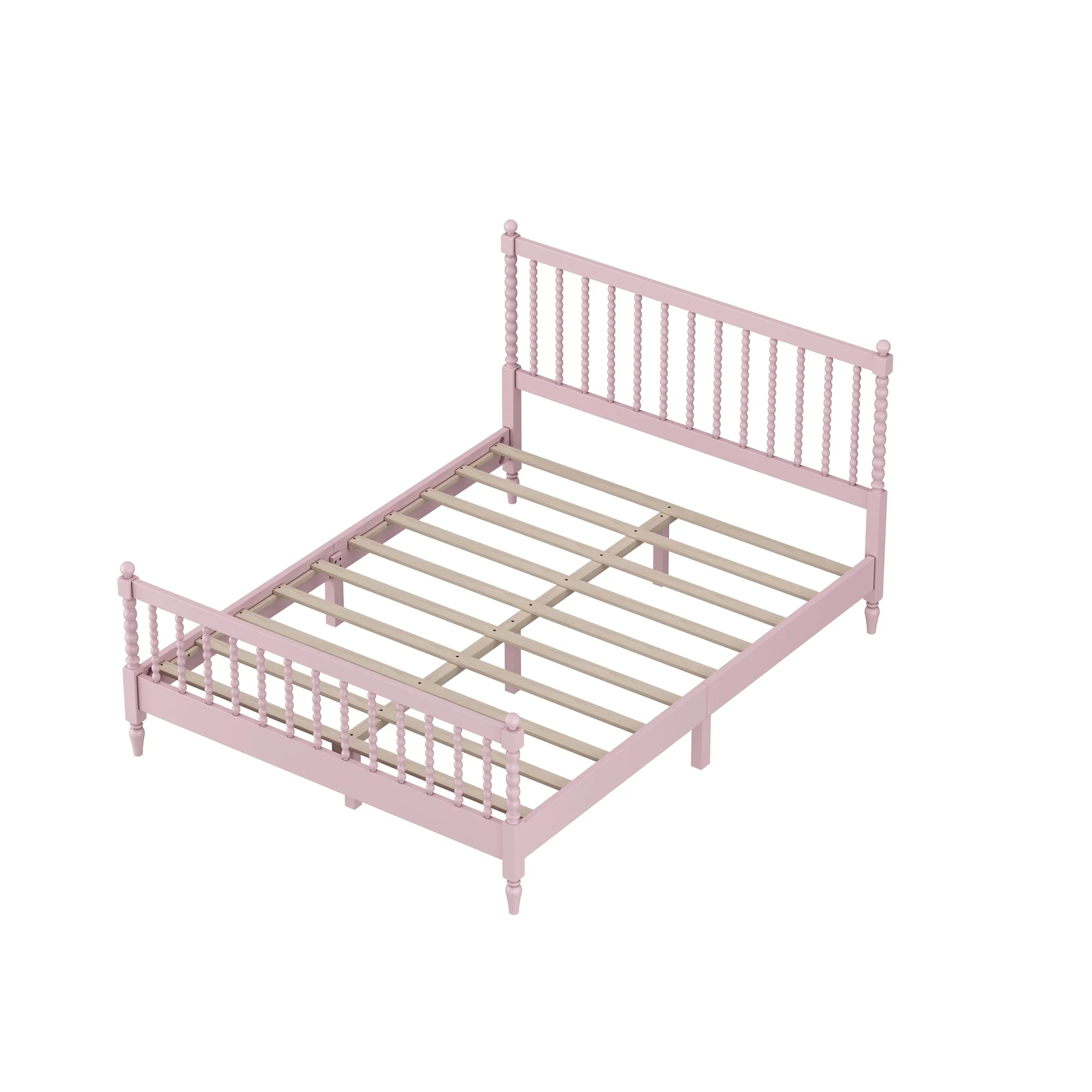 Queen Size Wood Platform Bed with Gourd Shaped Headboard and Footboard,Pink