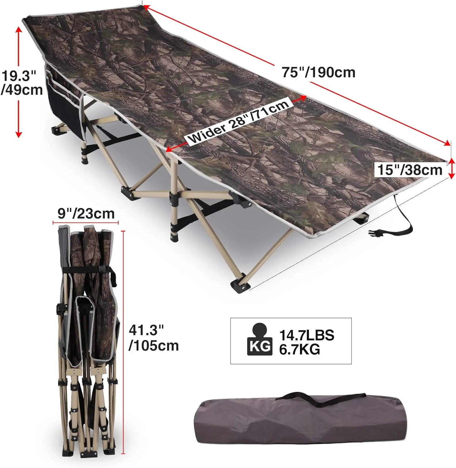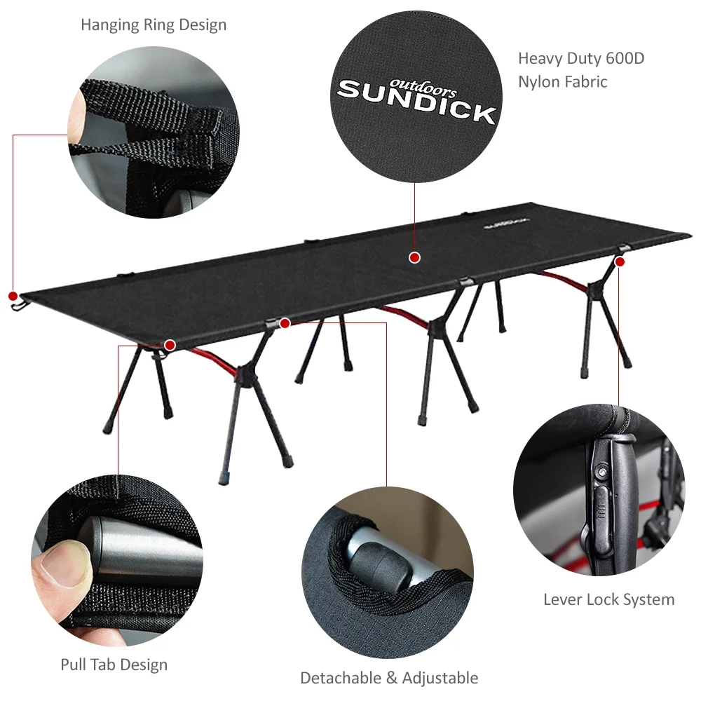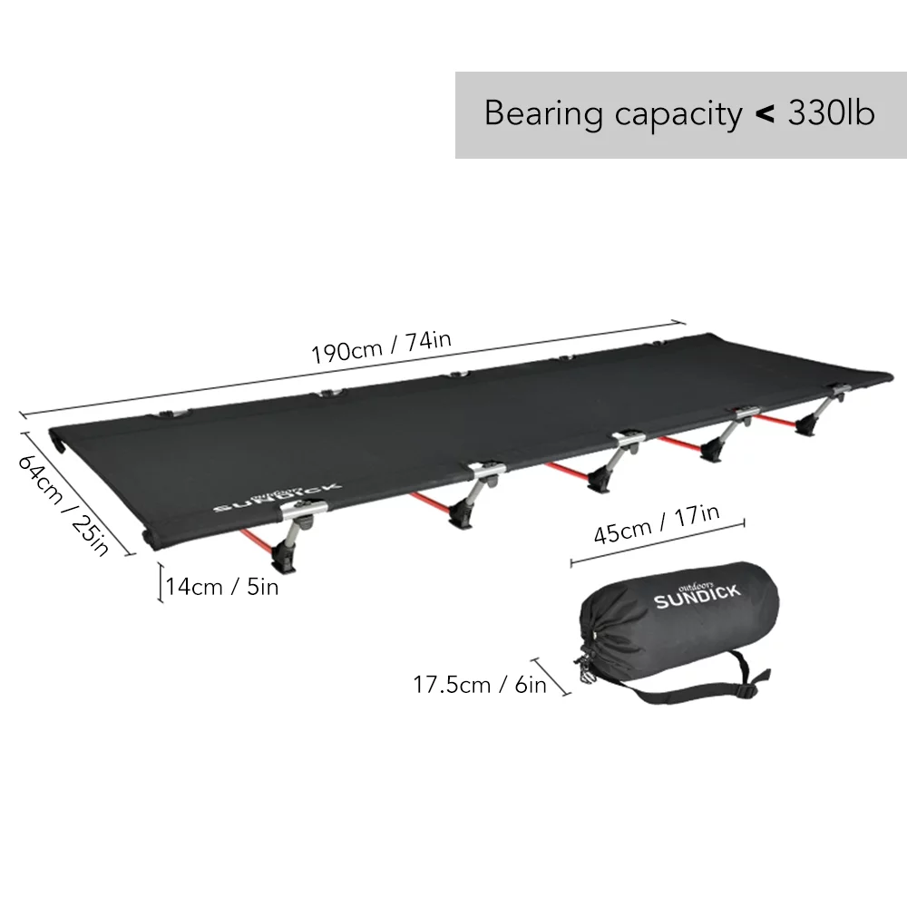 Sundick Foldable Camping Cot, Supports up to 330LB, Ideal for Hiking and Camping