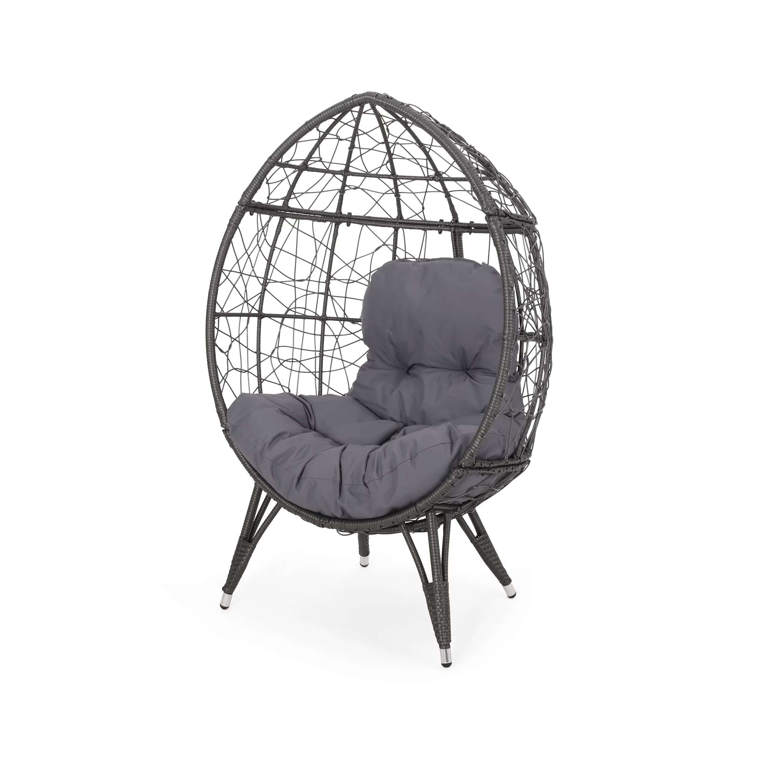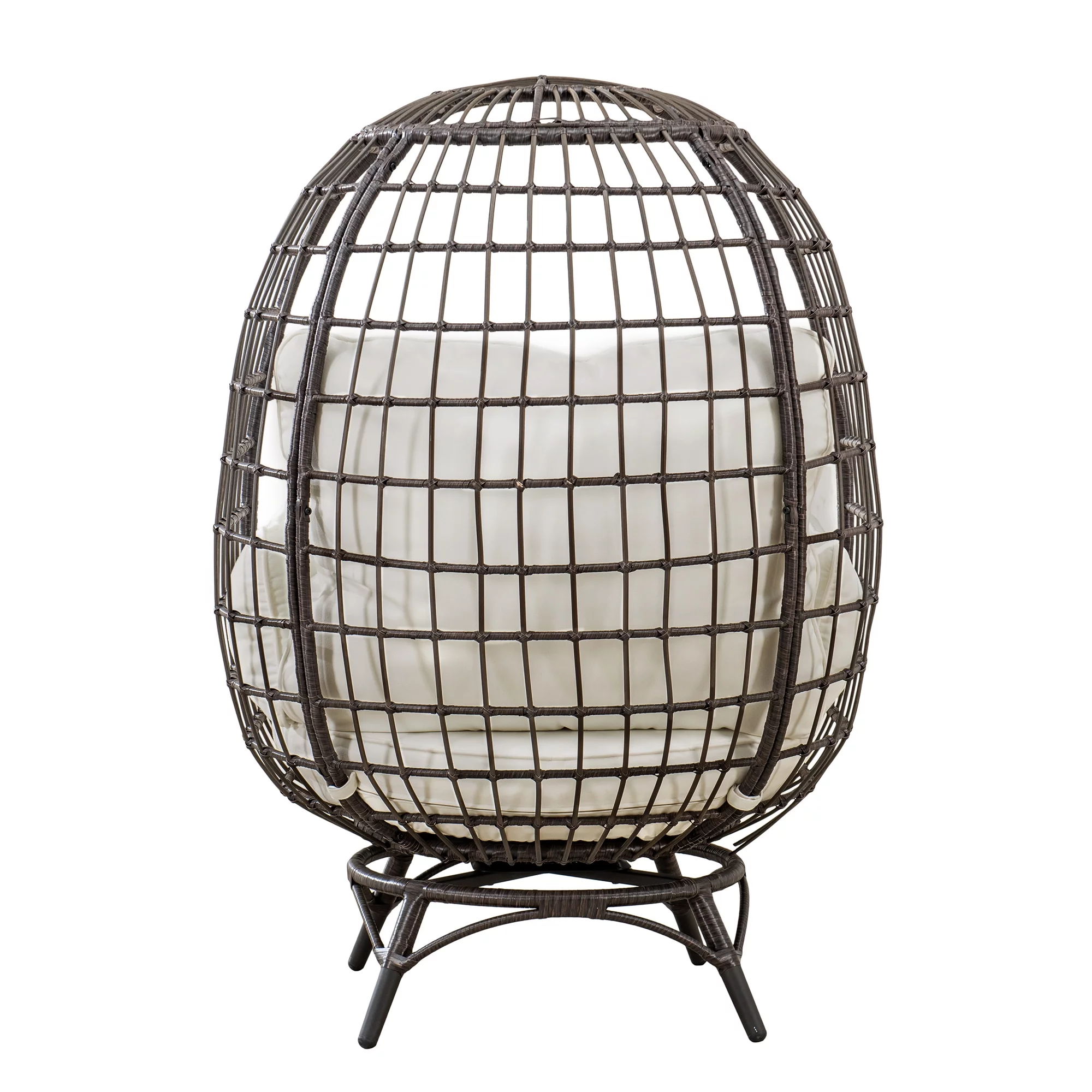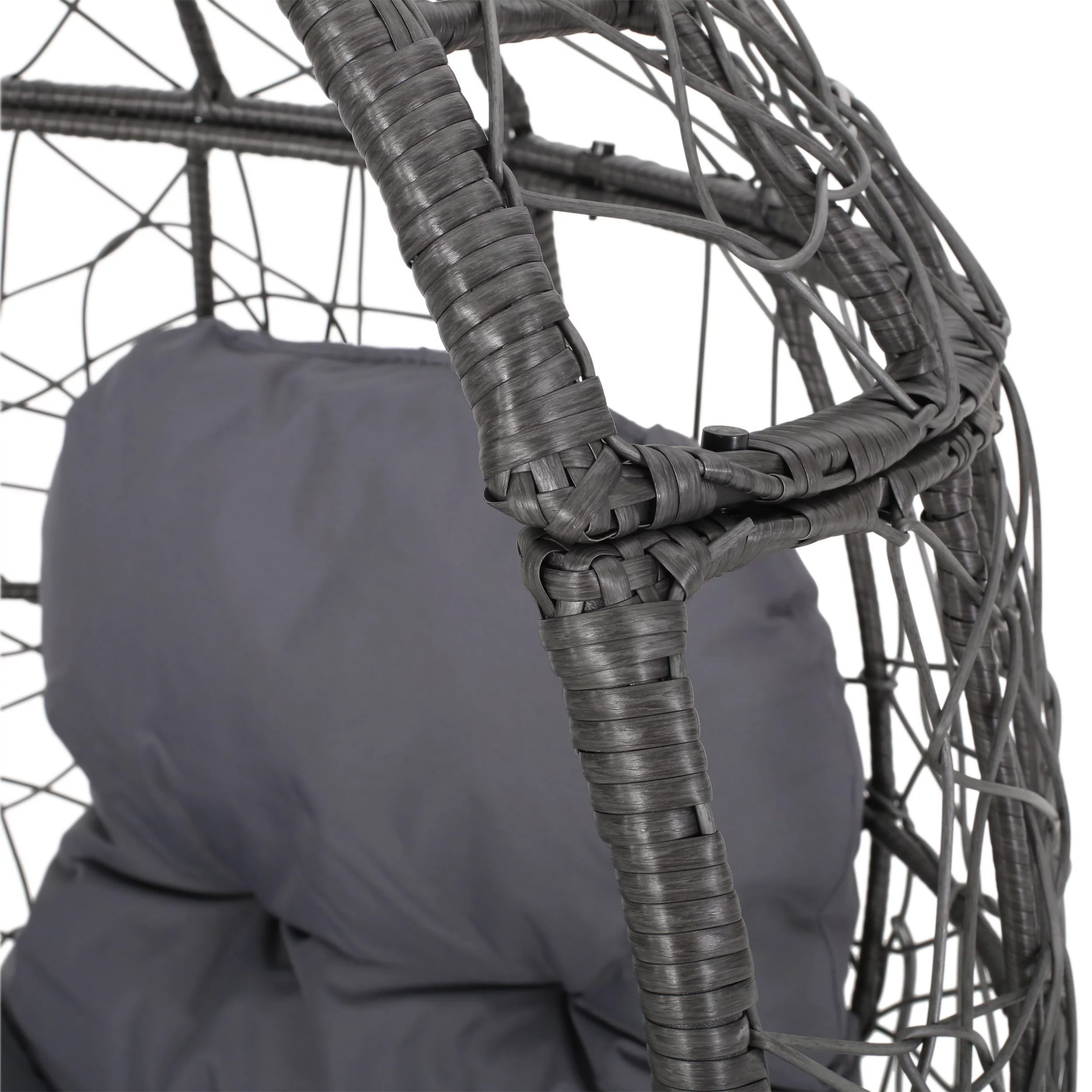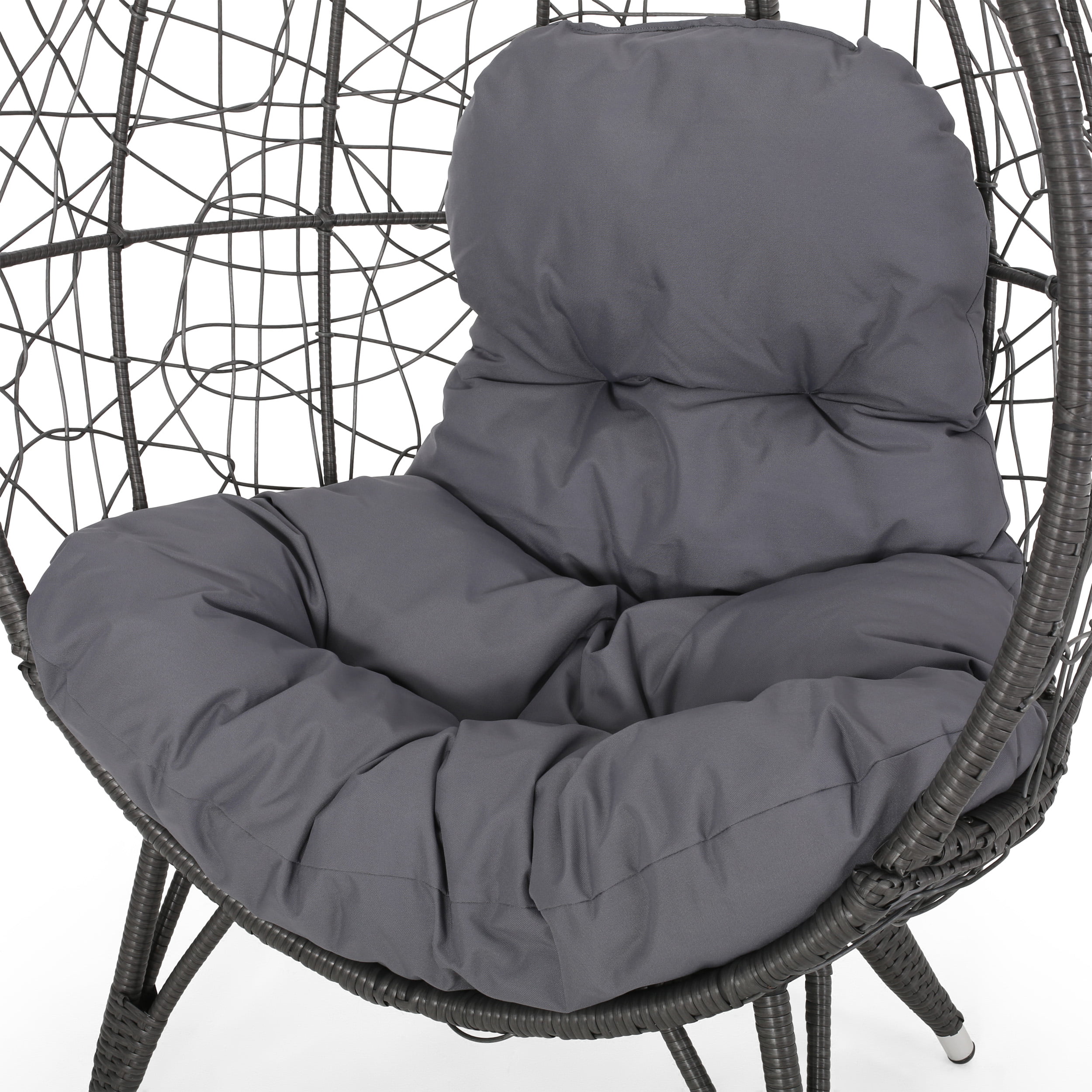 FKSLIFE Wicker Egg Chair Outdoor Indoor Swing Chair with Stand Cushion Pillow for Patio Garden Backyard Black and Gray