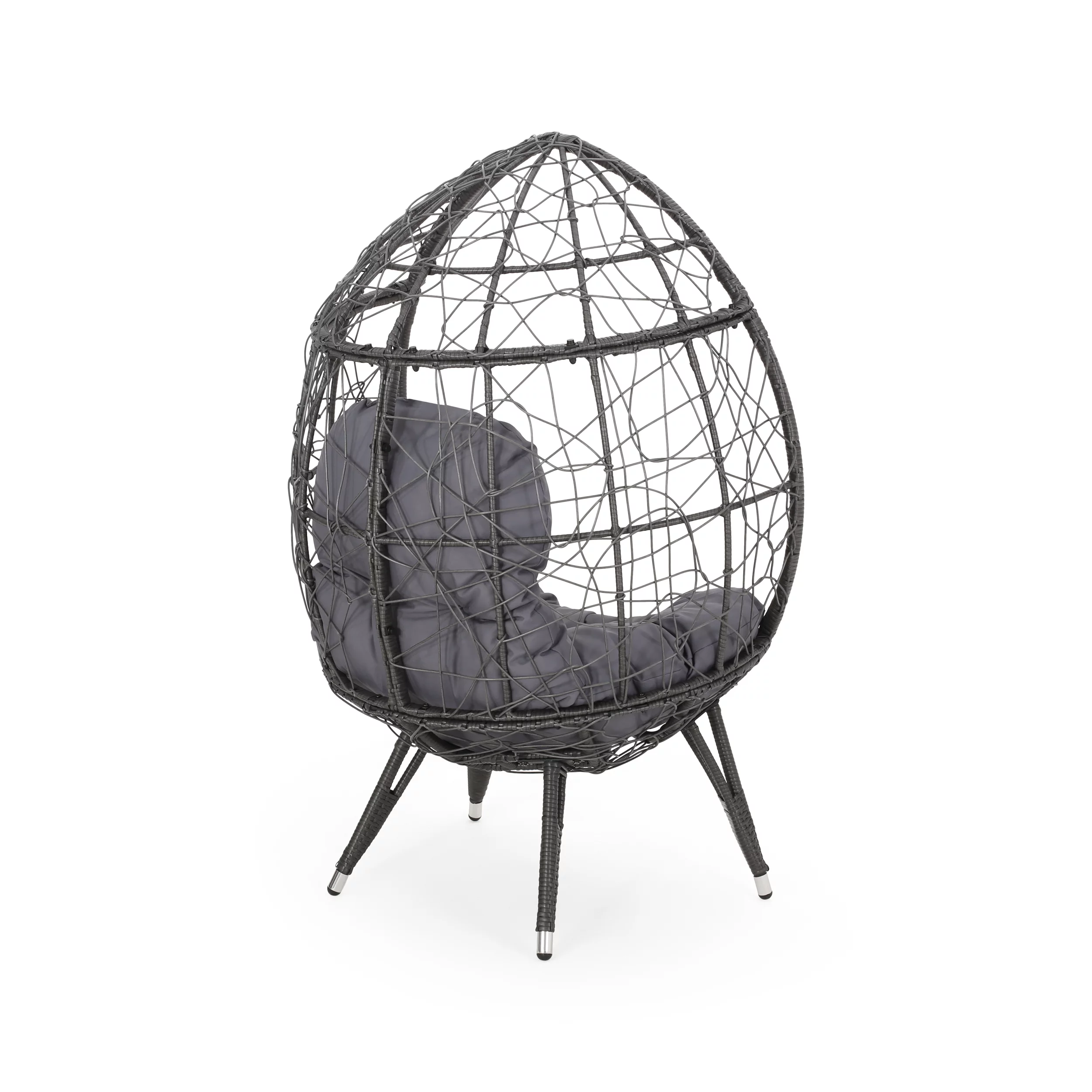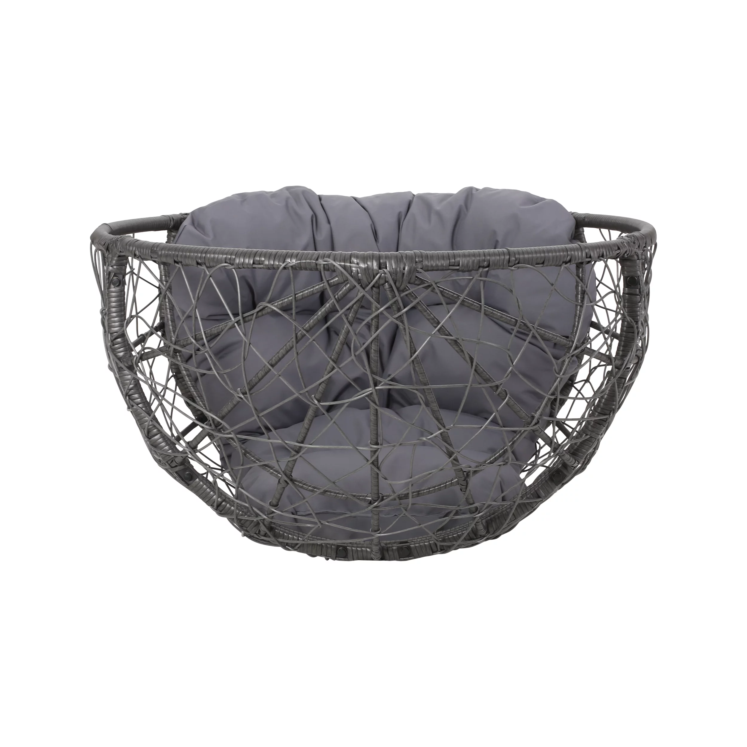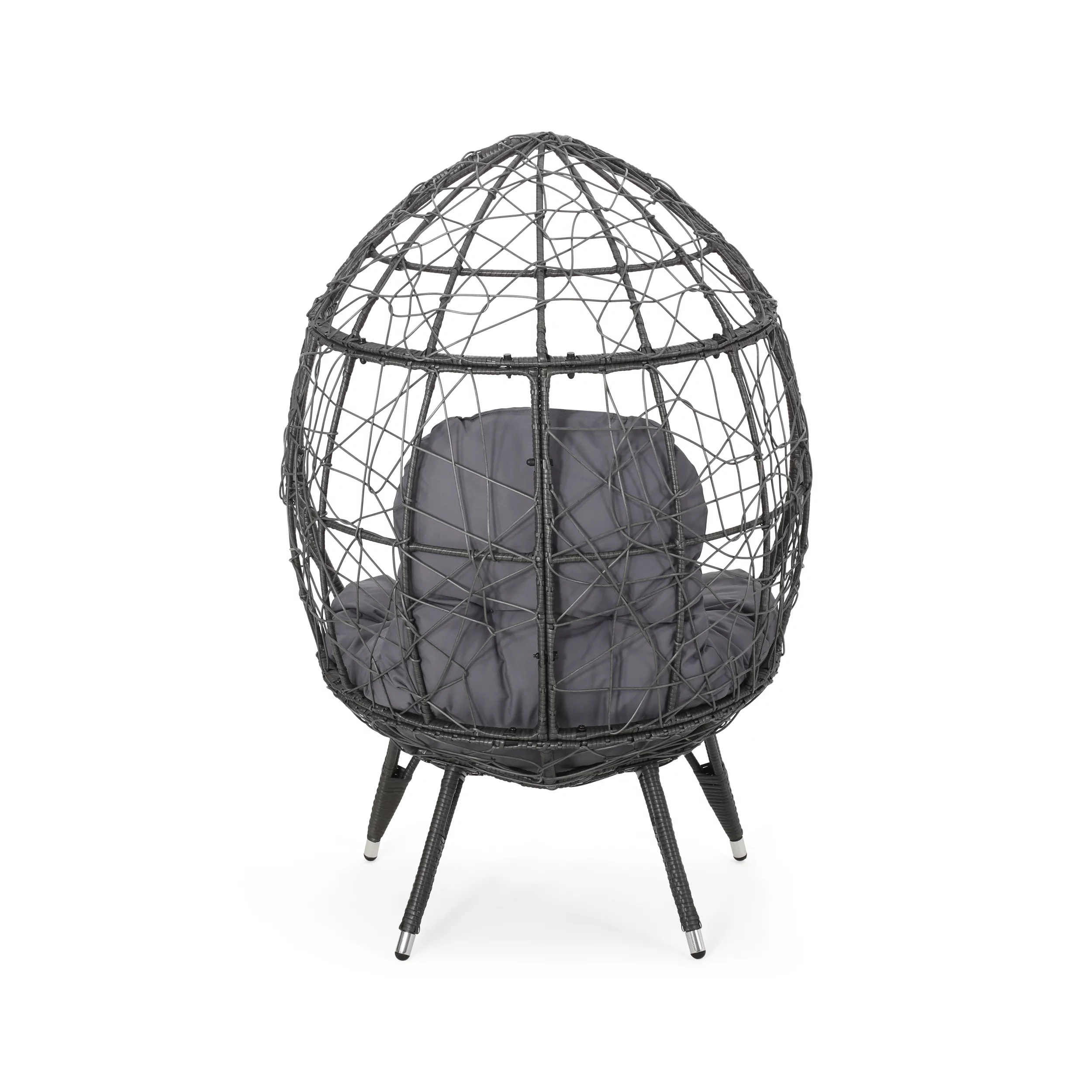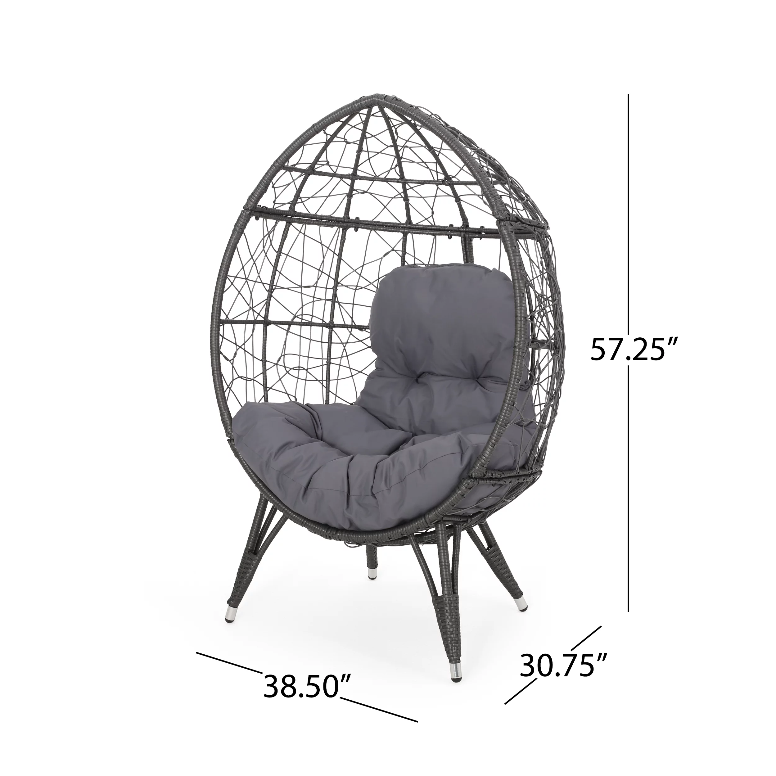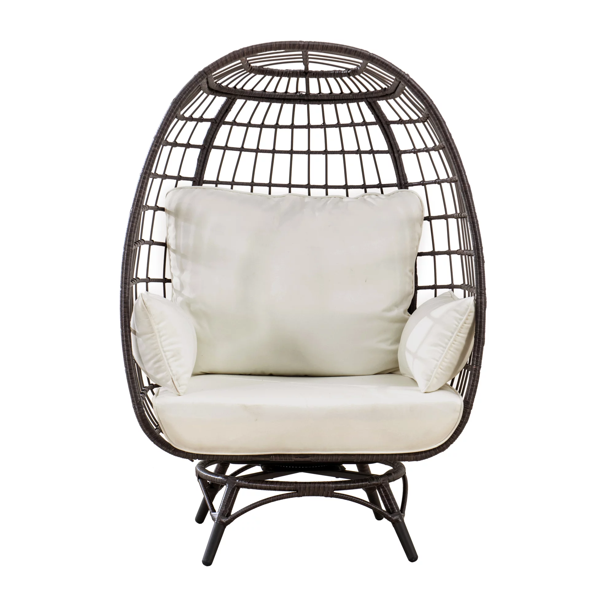 FKSLIFE Wicker Egg Chair Outdoor Indoor Swing Chair with Stand Cushion Pillow for Patio Garden Backyard Black and Gray