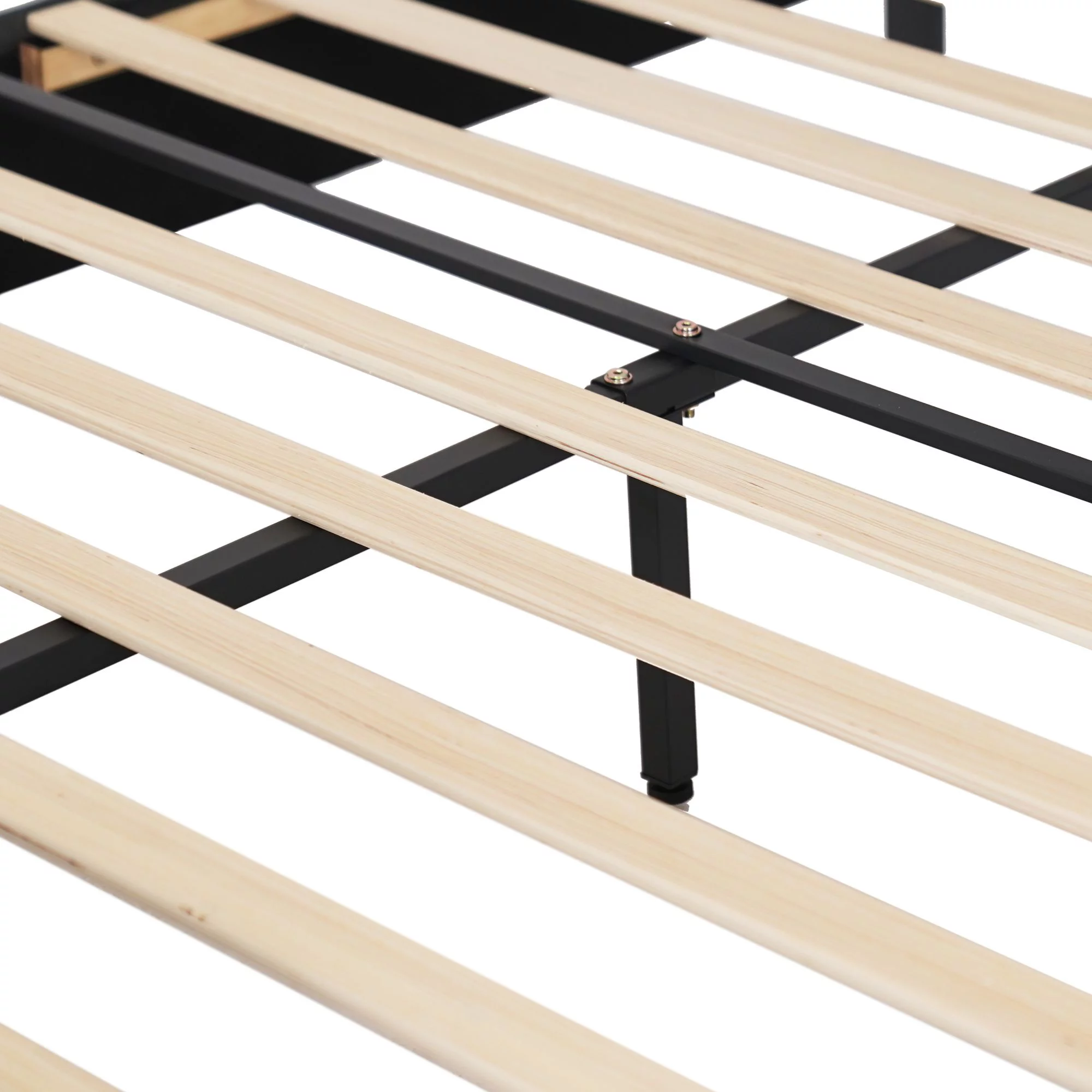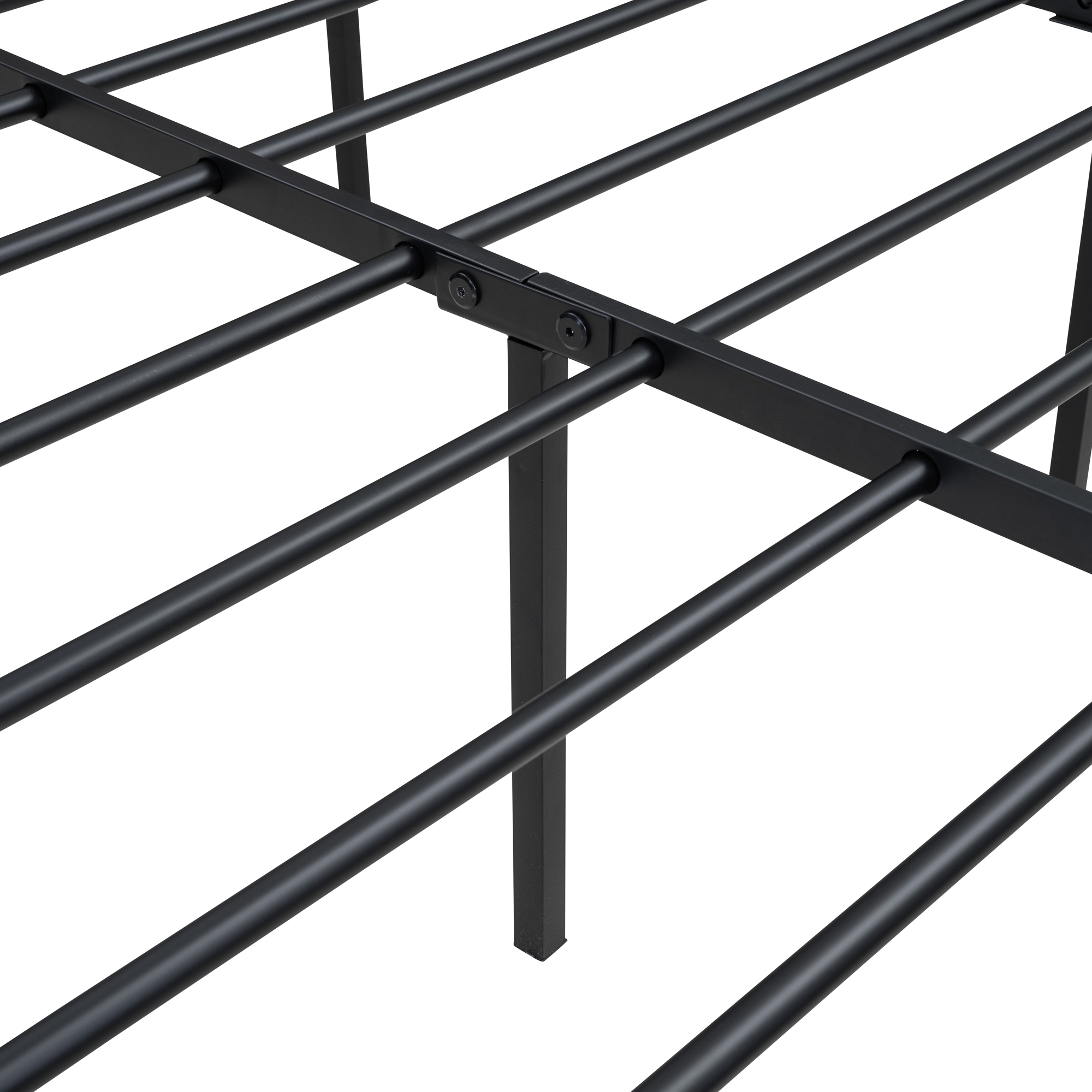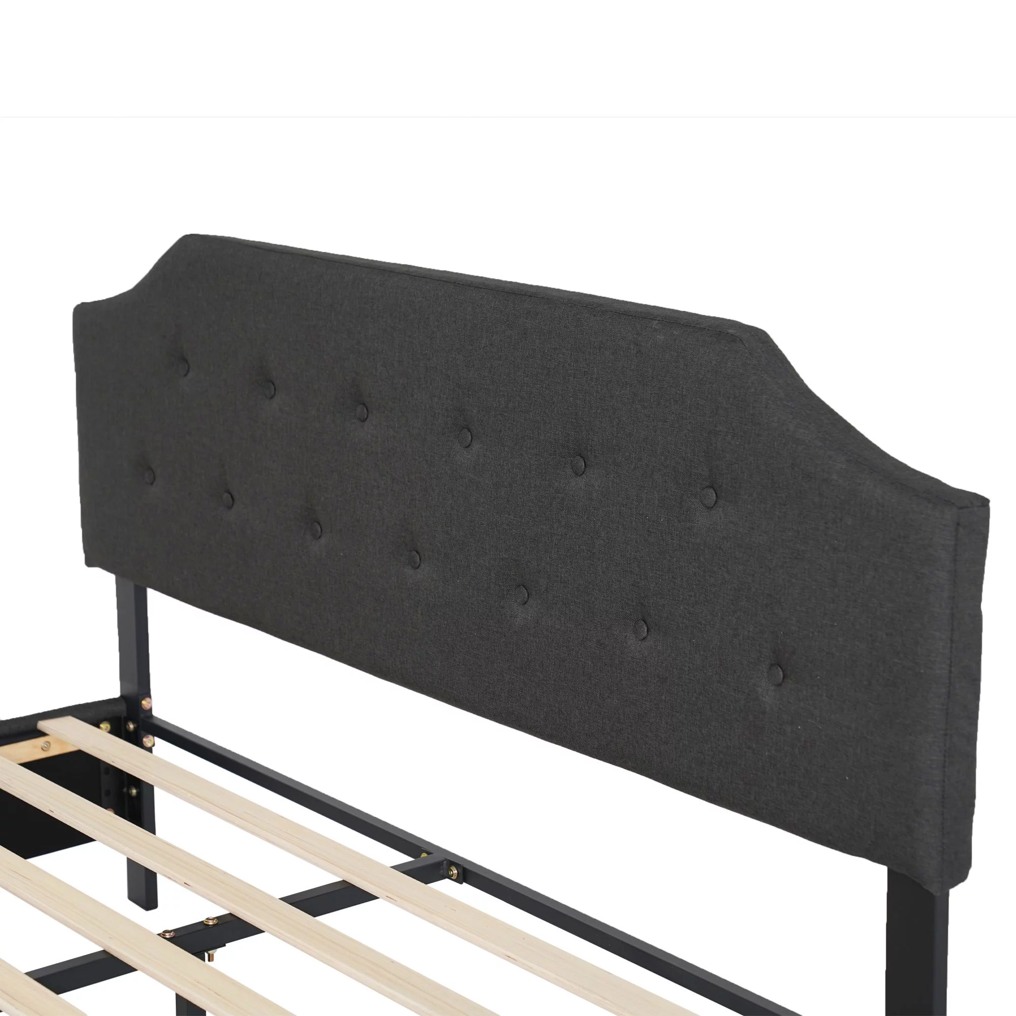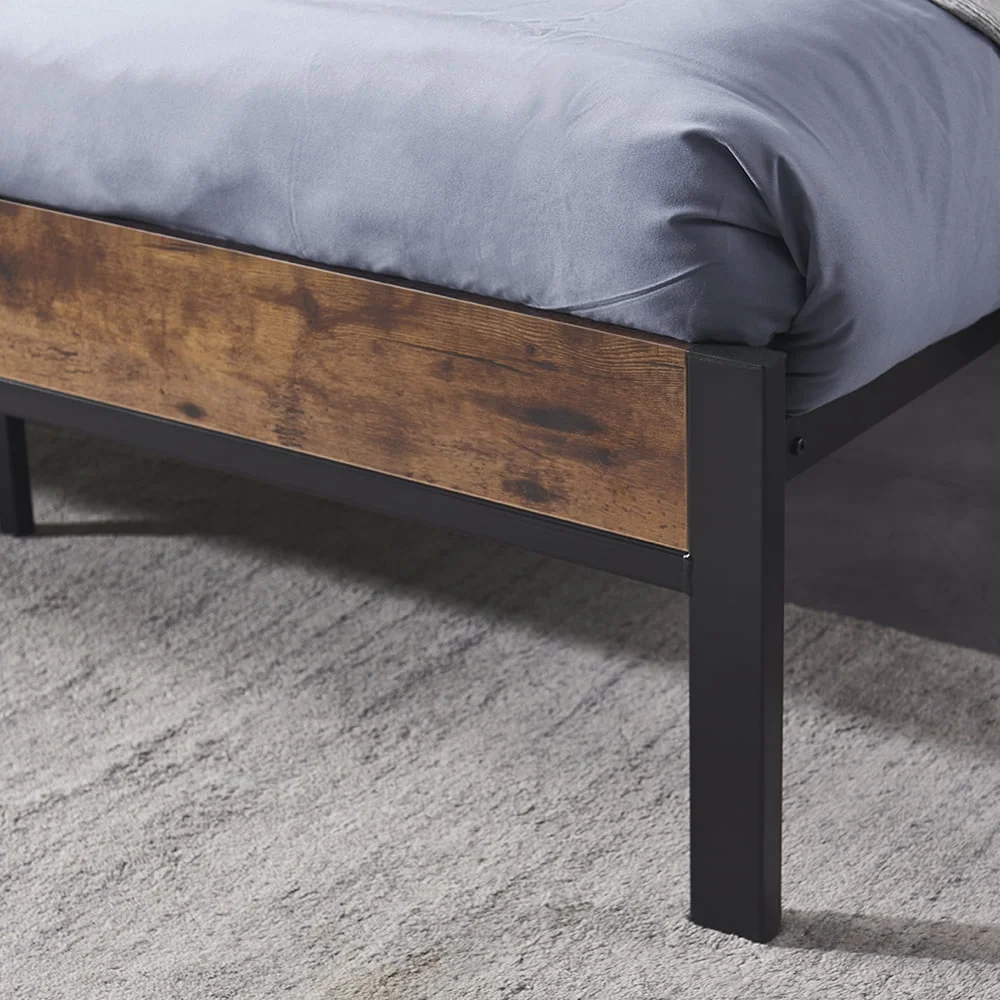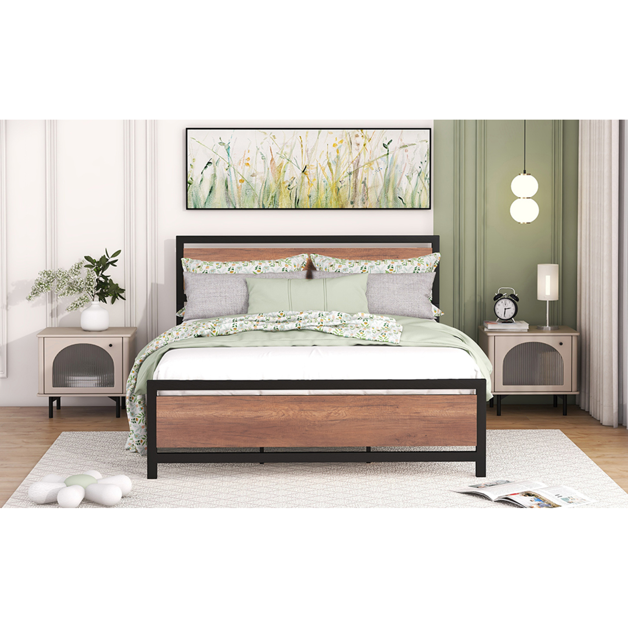 Queen Size Platform Bed, Metal and Wood Bed Frame with Headboard and Footboard , Black