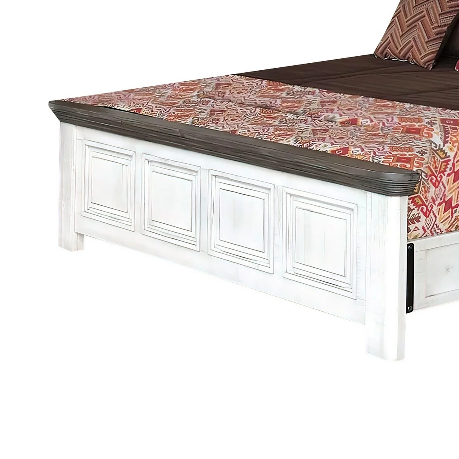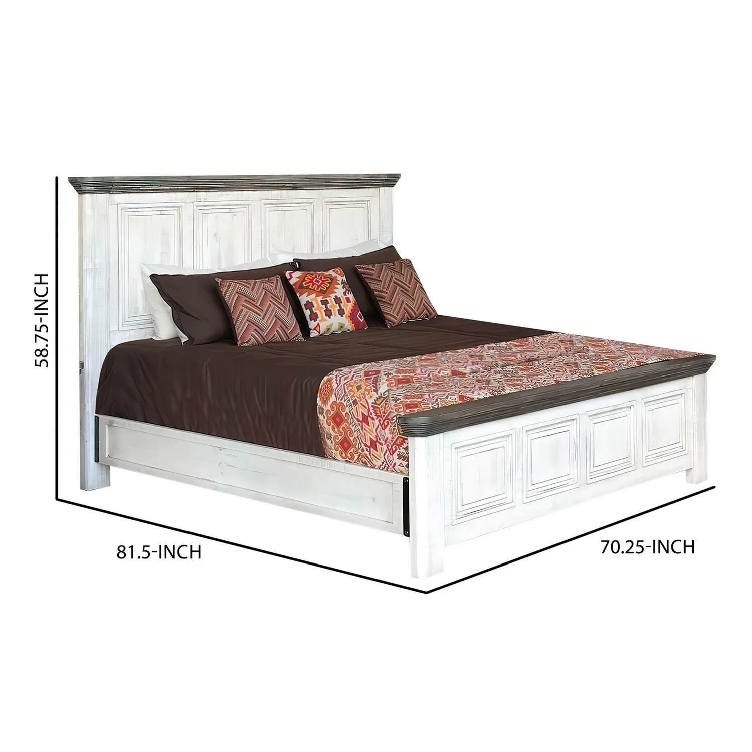 Benjara Feyi Queen Size Bed, Clean Rustic Headboard and Footboard, White, Gray